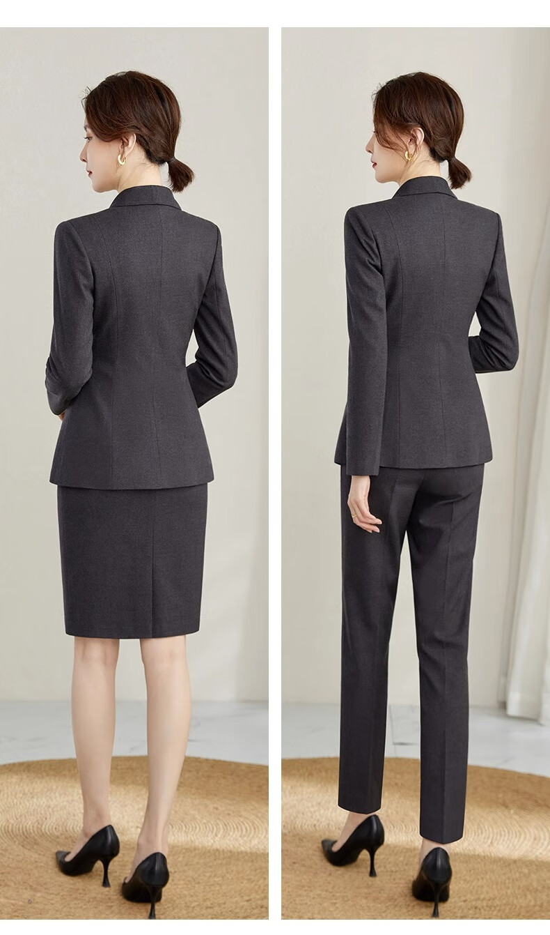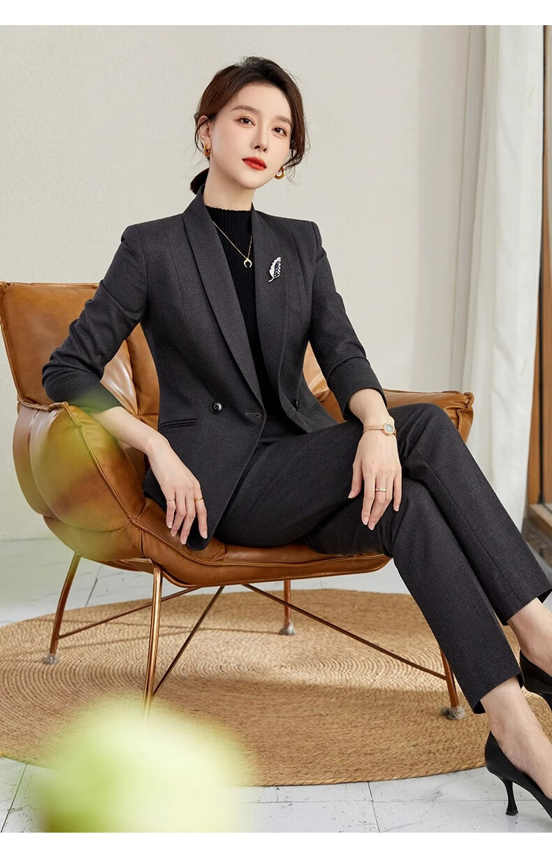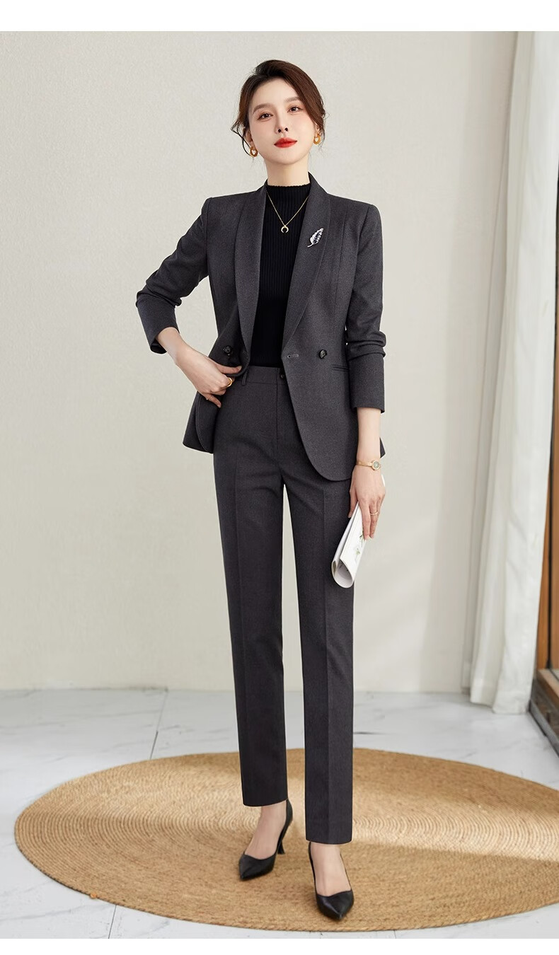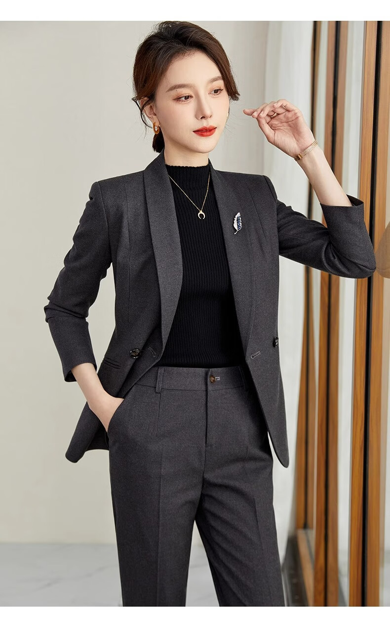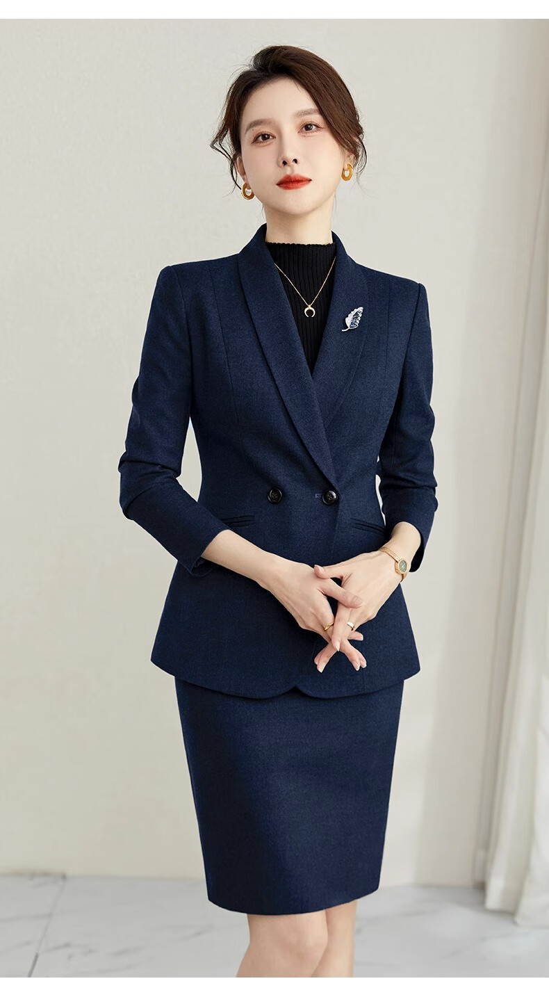 ROMON suit suit slim and fashionable high-end autumn and winter gold store shopping guide suit women's formal jacket professional work clothes navy blue suit jacket + pants S