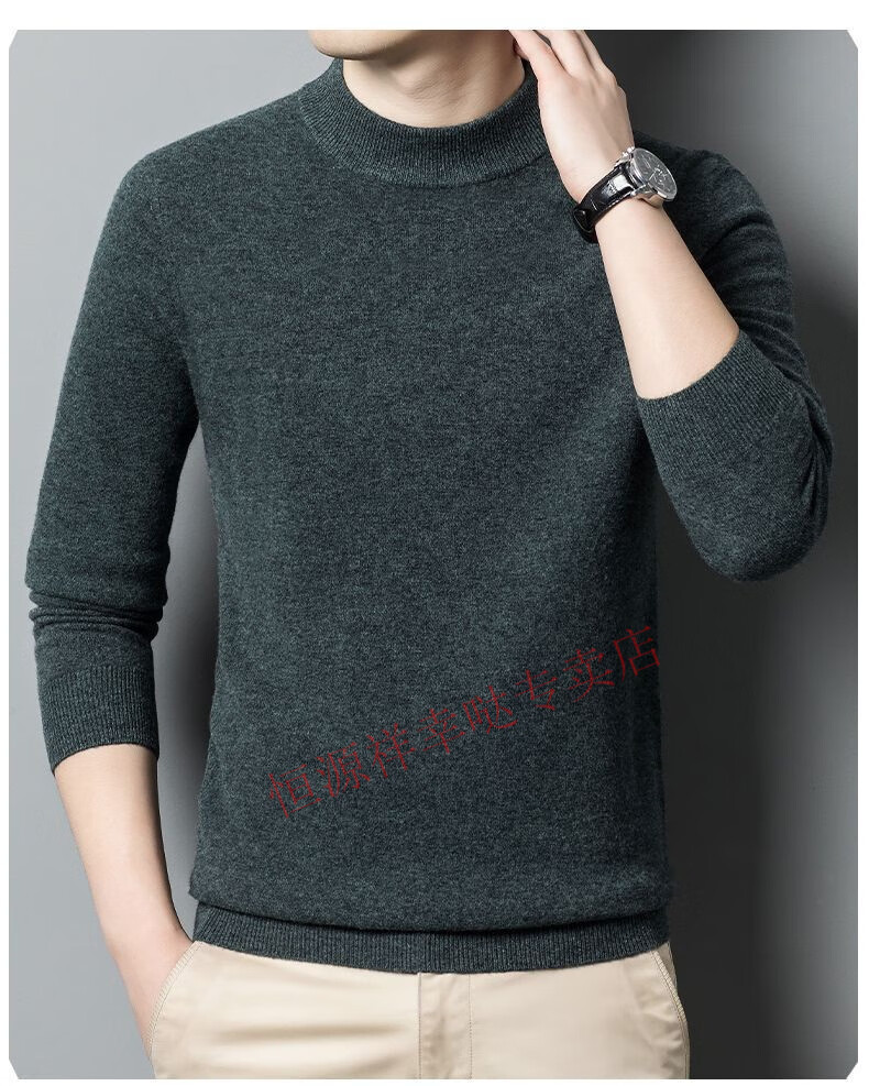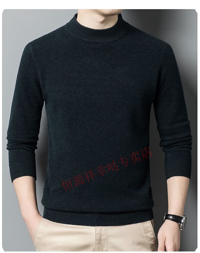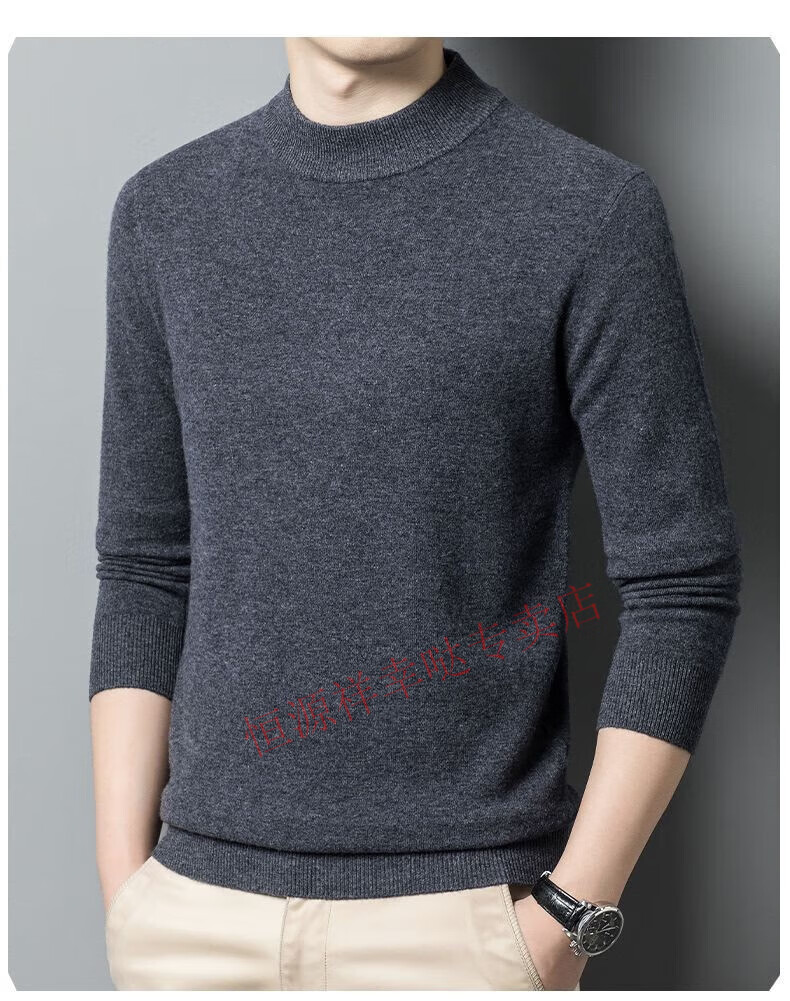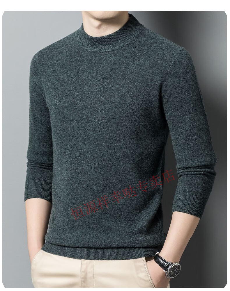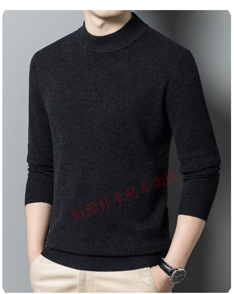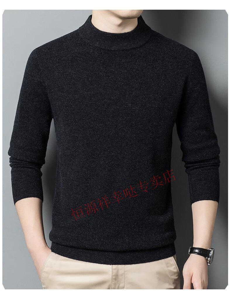 Hengyuanxiang 100% pure wool fleece sweater autumn and winter men's thickened large size half turtleneck sweater base sweater versatile middle-aged men's wear dark gray - half turtleneck 2XL 180/96A recommended 150-170 Jin Jin equals 0.5 kg