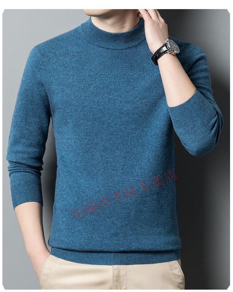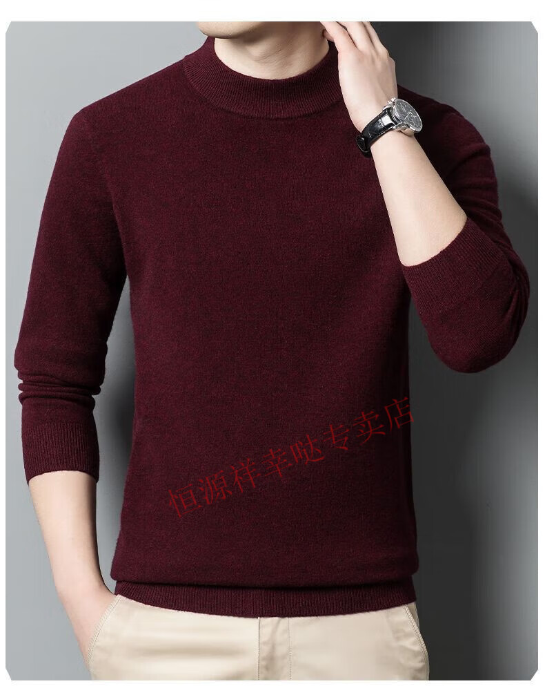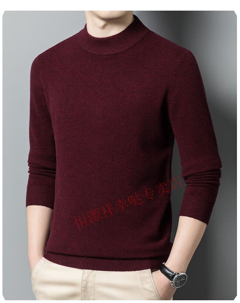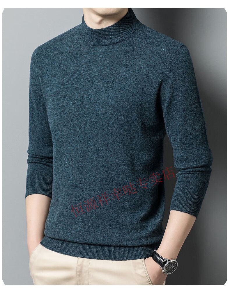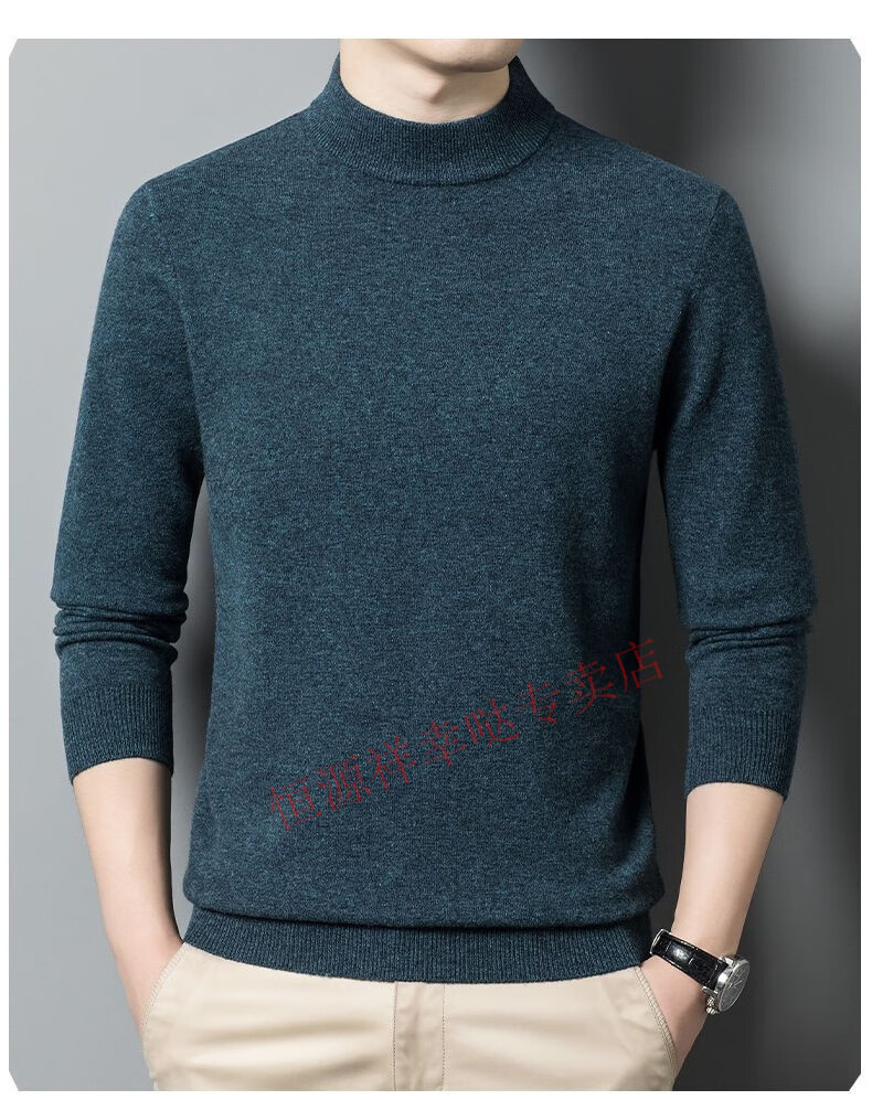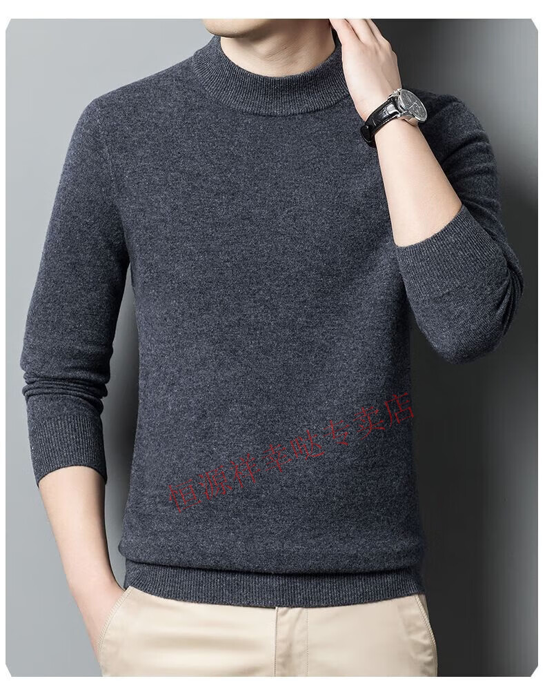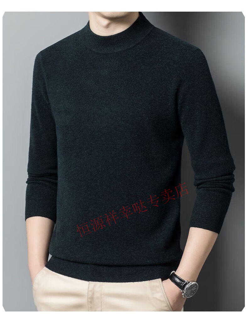 Hengyuanxiang 100% pure wool fleece sweater autumn and winter men's thickened large size half turtleneck sweater base sweater versatile middle-aged men's wear dark gray - half turtleneck 2XL 180/96A recommended 150-170 Jin Jin equals 0.5 kg