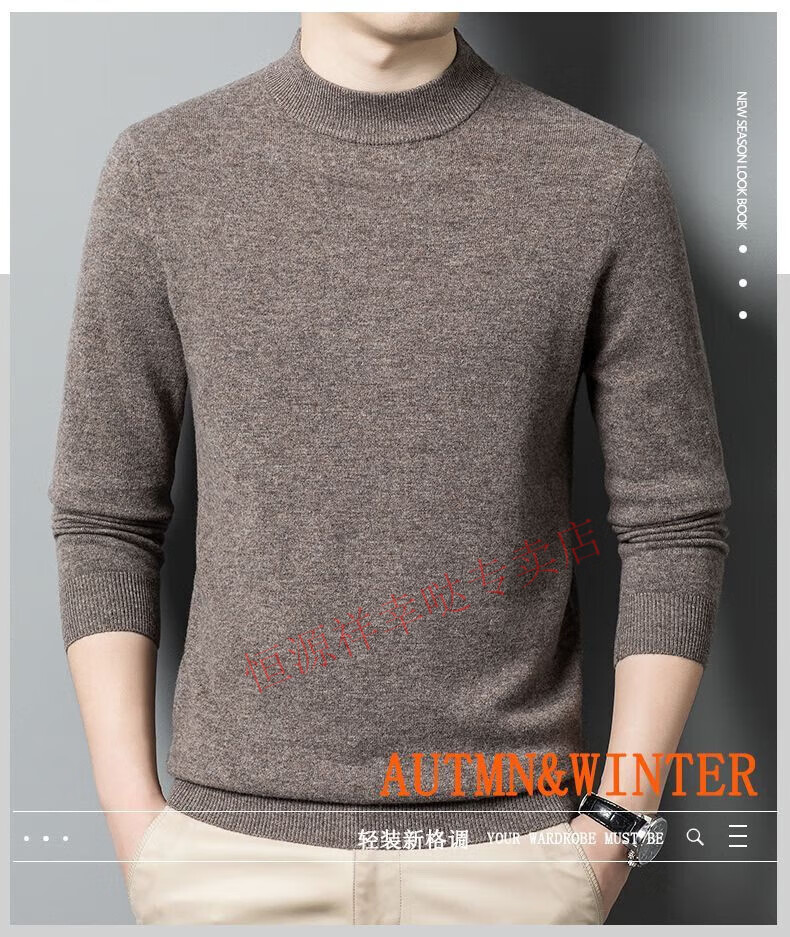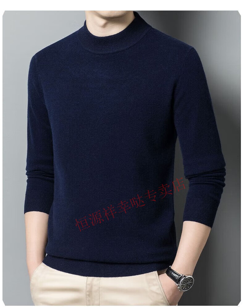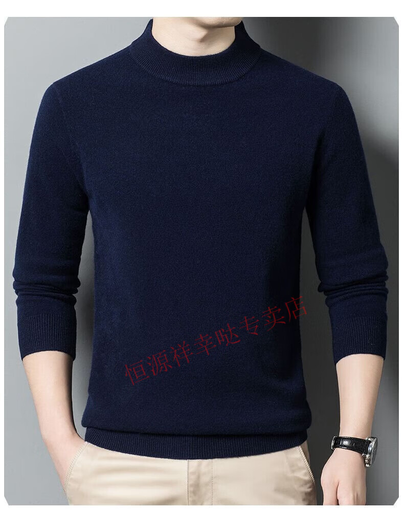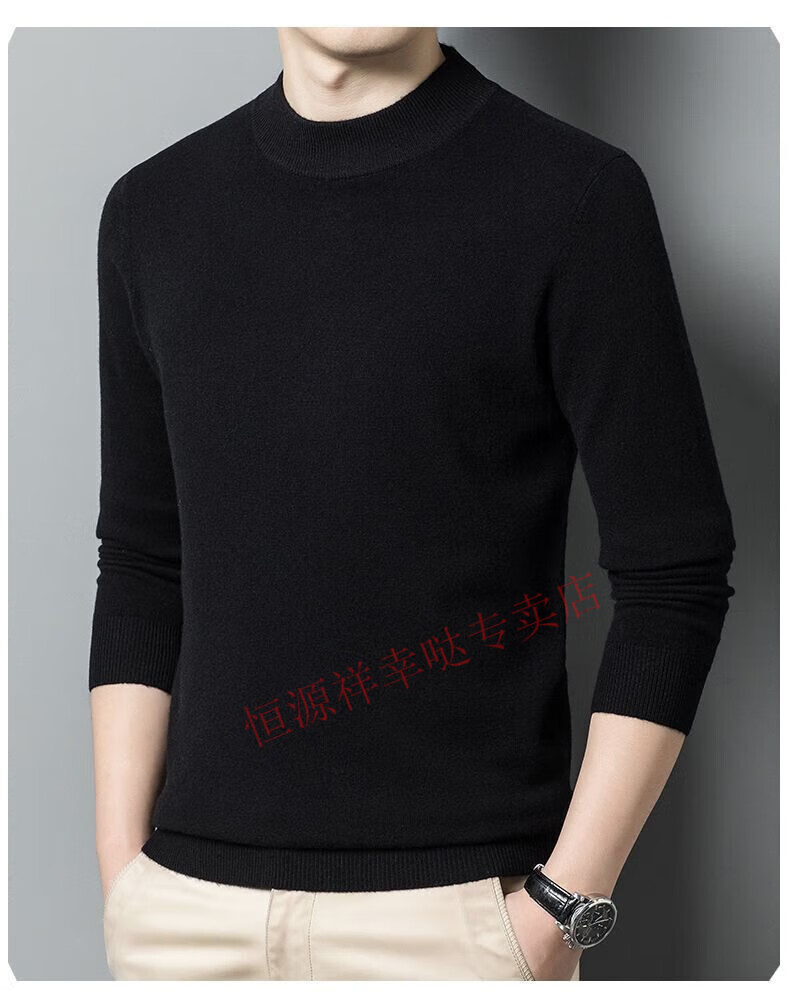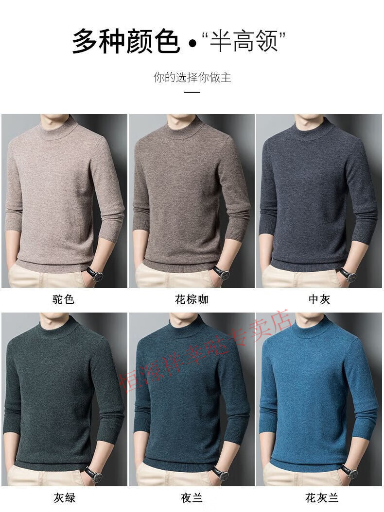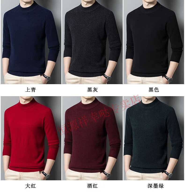 Hengyuanxiang 100% pure wool fleece sweater autumn and winter men's thickened large size half turtleneck sweater base sweater versatile middle-aged men's wear dark gray - half turtleneck 2XL 180/96A recommended 150-170 Jin Jin equals 0.5 kg