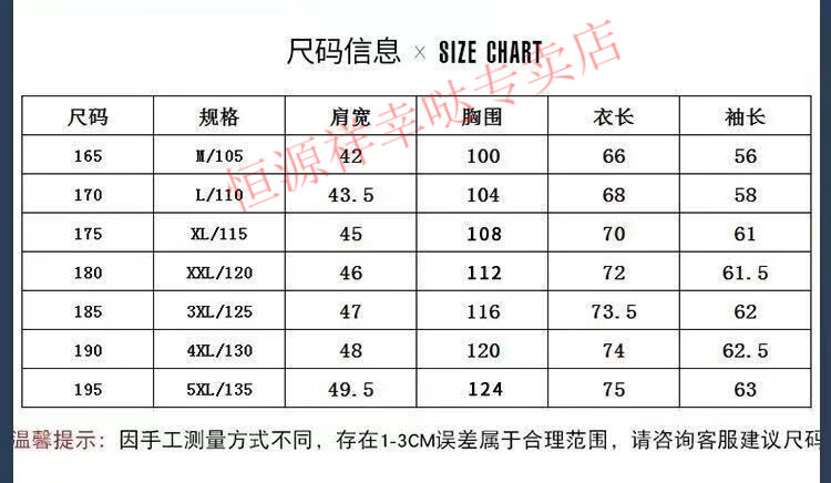 China (cm) 165 / 88-90 170 / 96-98 175 / 108-110 180 / 118-122 185 / 126-130
