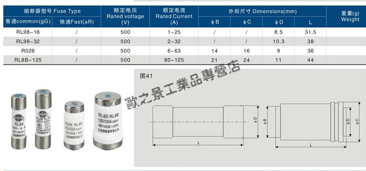 RL98 RL8B-16 8.5x31.5mm ceramic fuse tube fuse 3A4A5A6A8A10A1 6A 20 pieces/box
