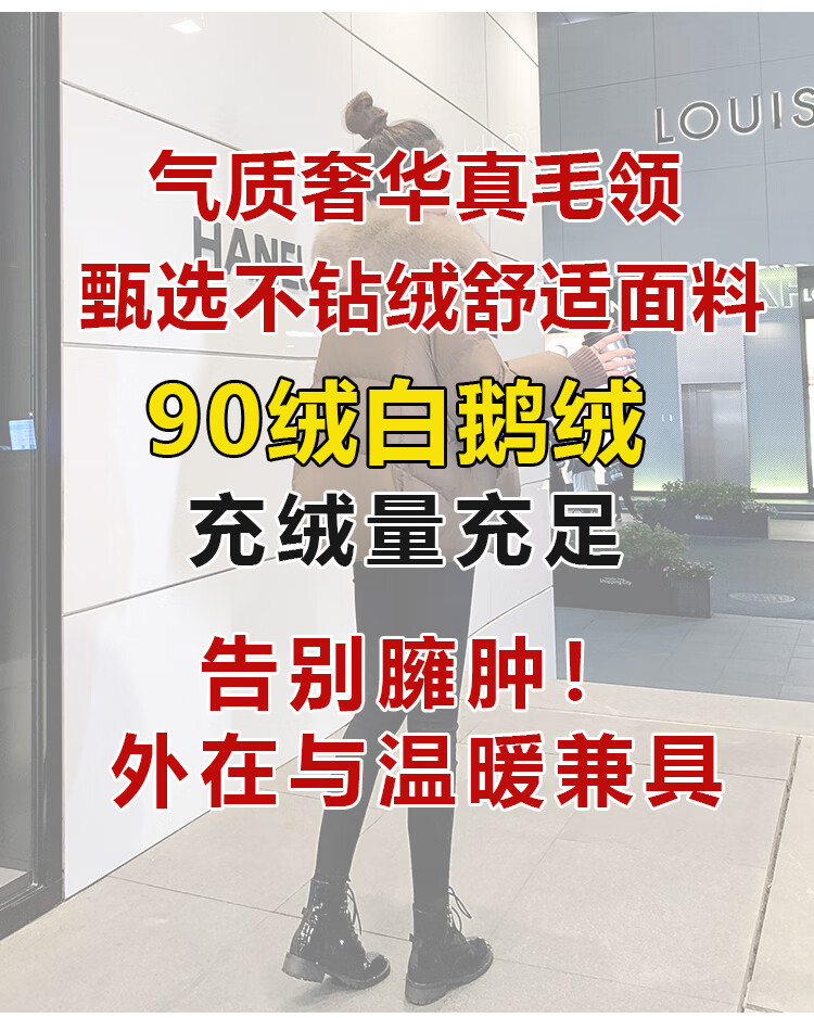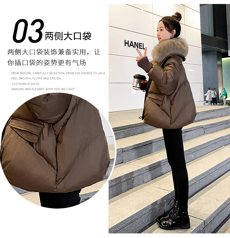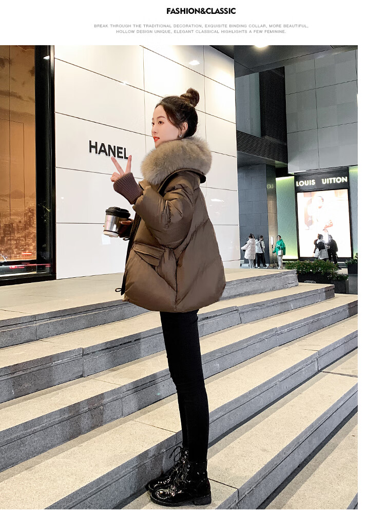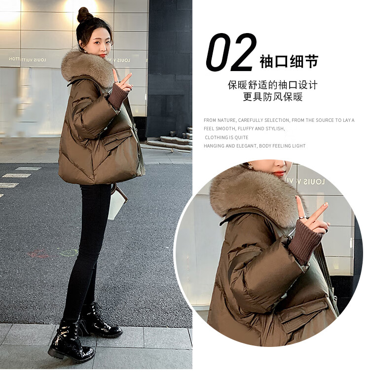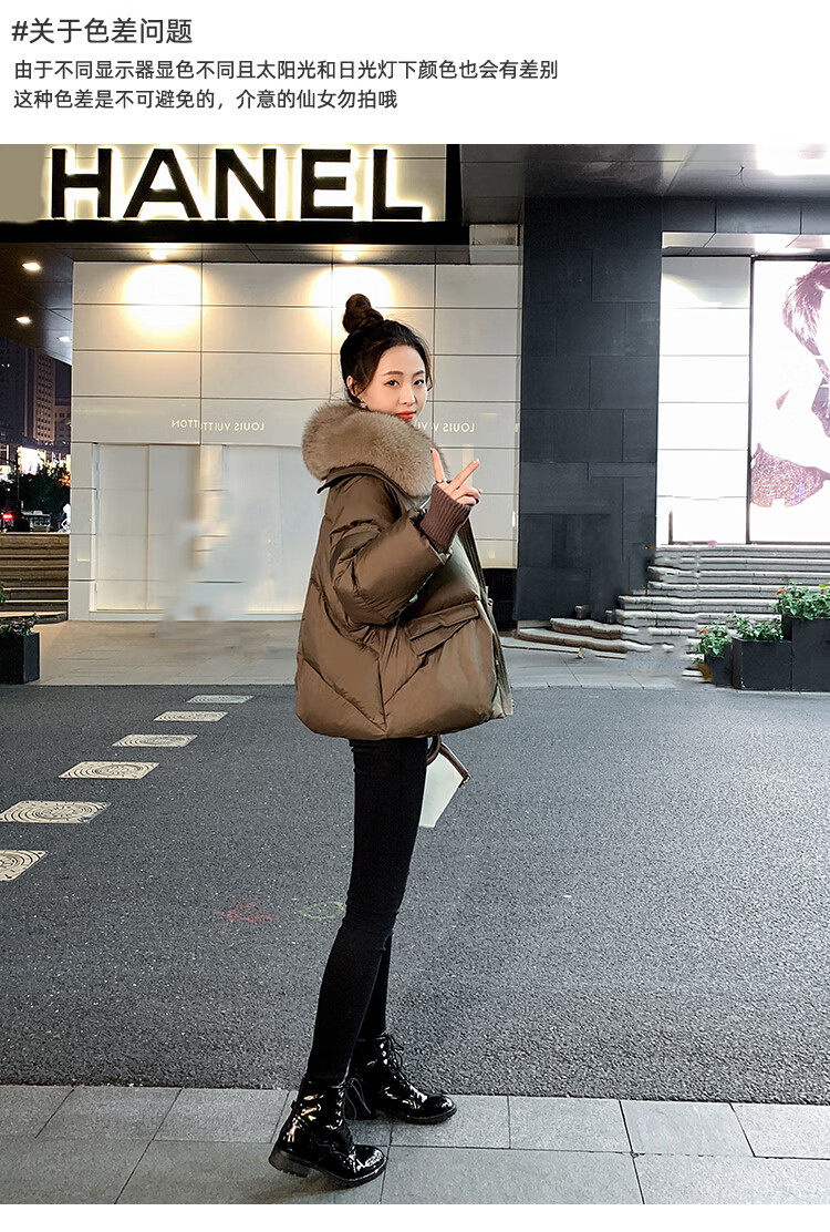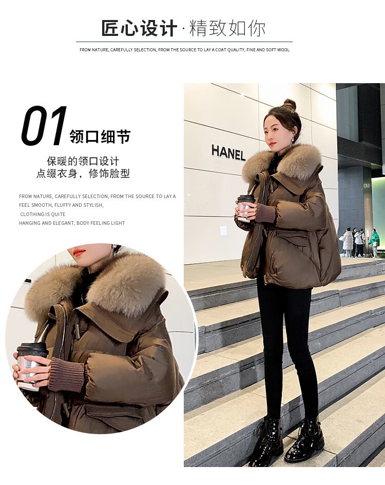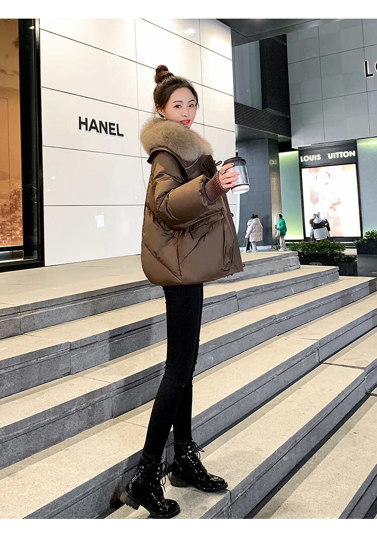 RLAS Chaqueta Corta De Plumas Mujer 2026 Invierno Nuevo Estilo Moda Y Versátil Chaqueta con Cuello De Piel Grande De Plumas De Ganso Blanco para Personas Pequeñas Marrón Lujosa Piel De Zorro S 160