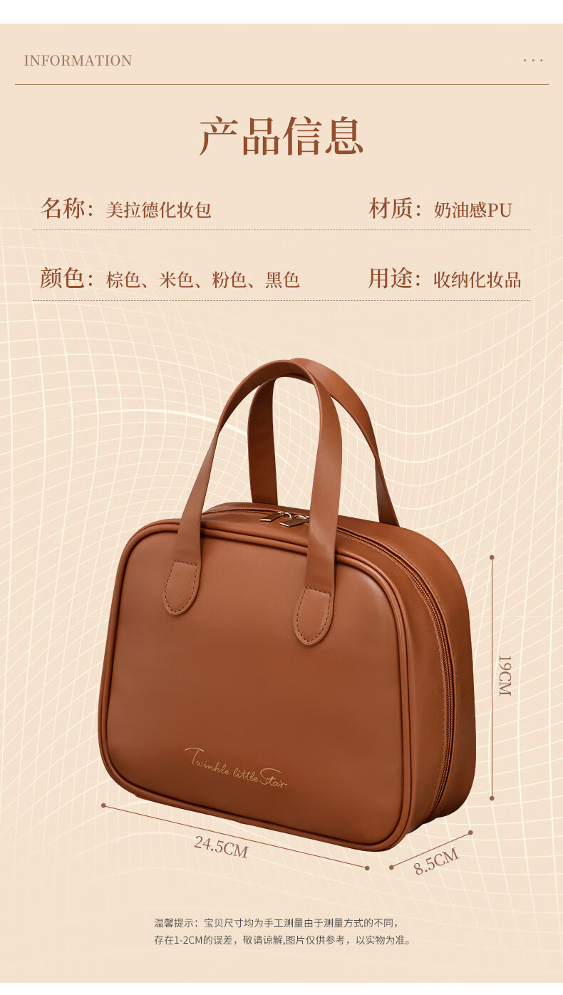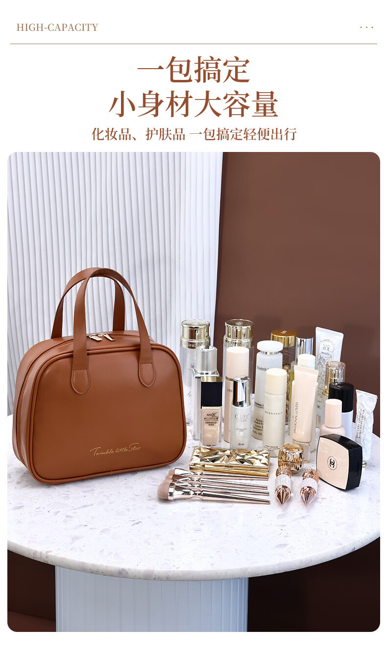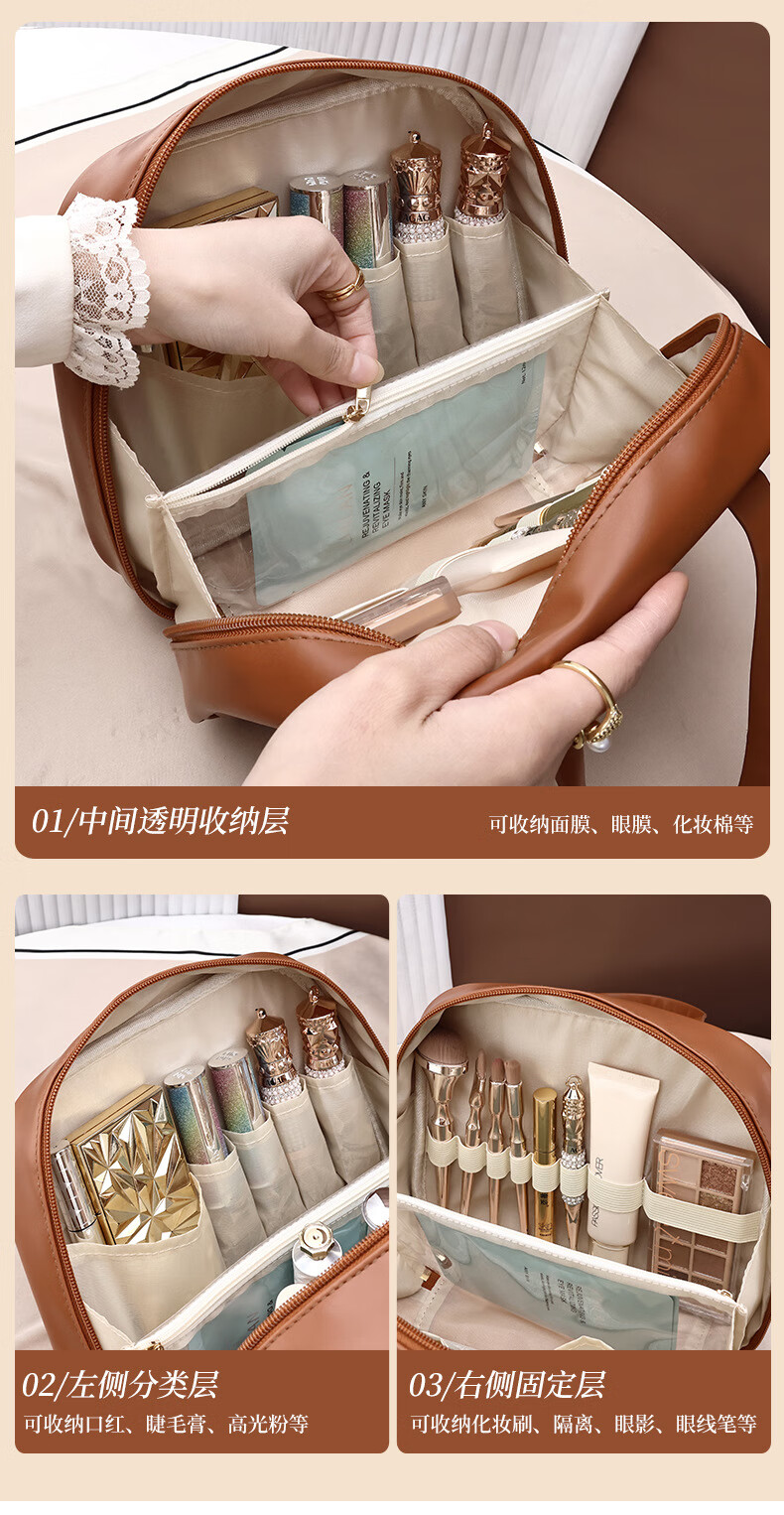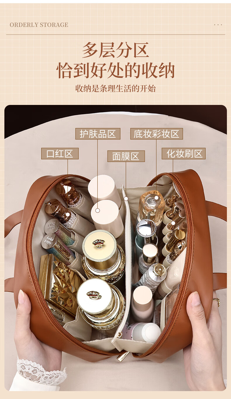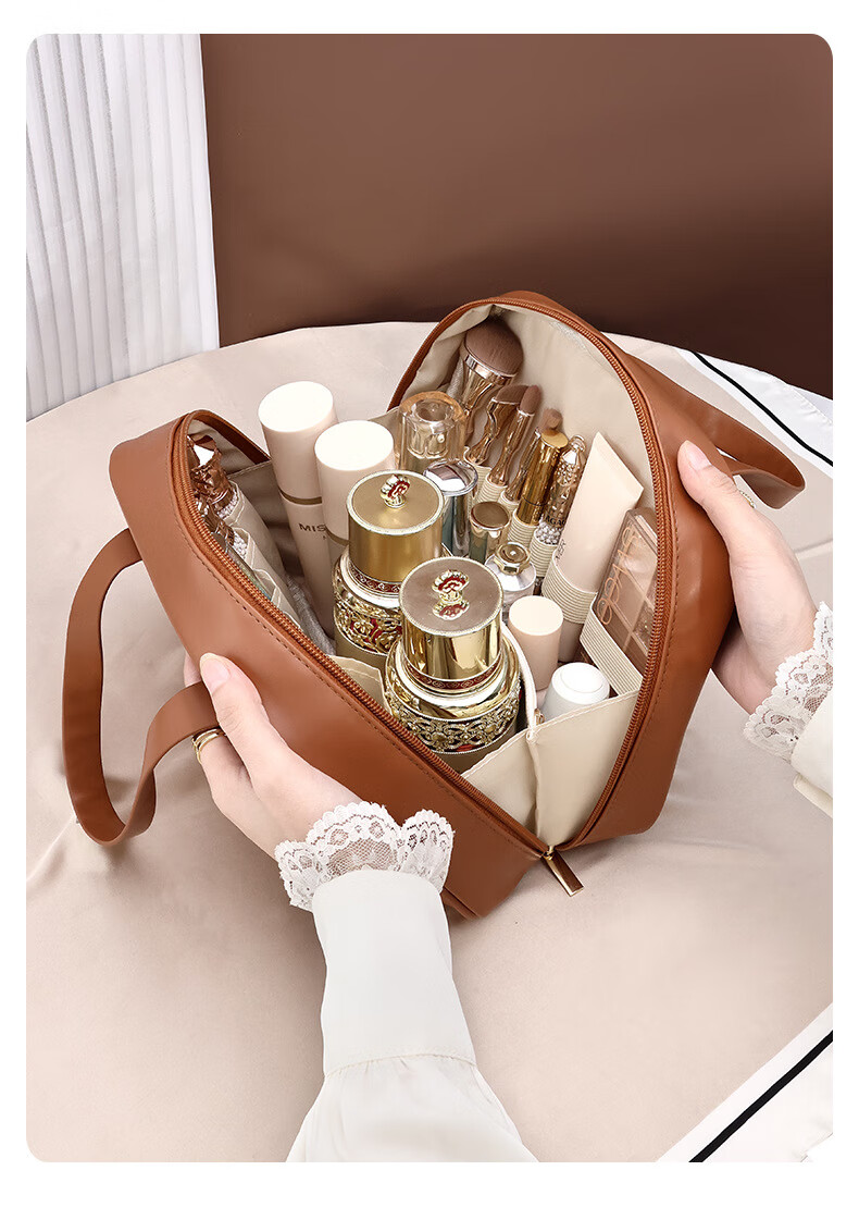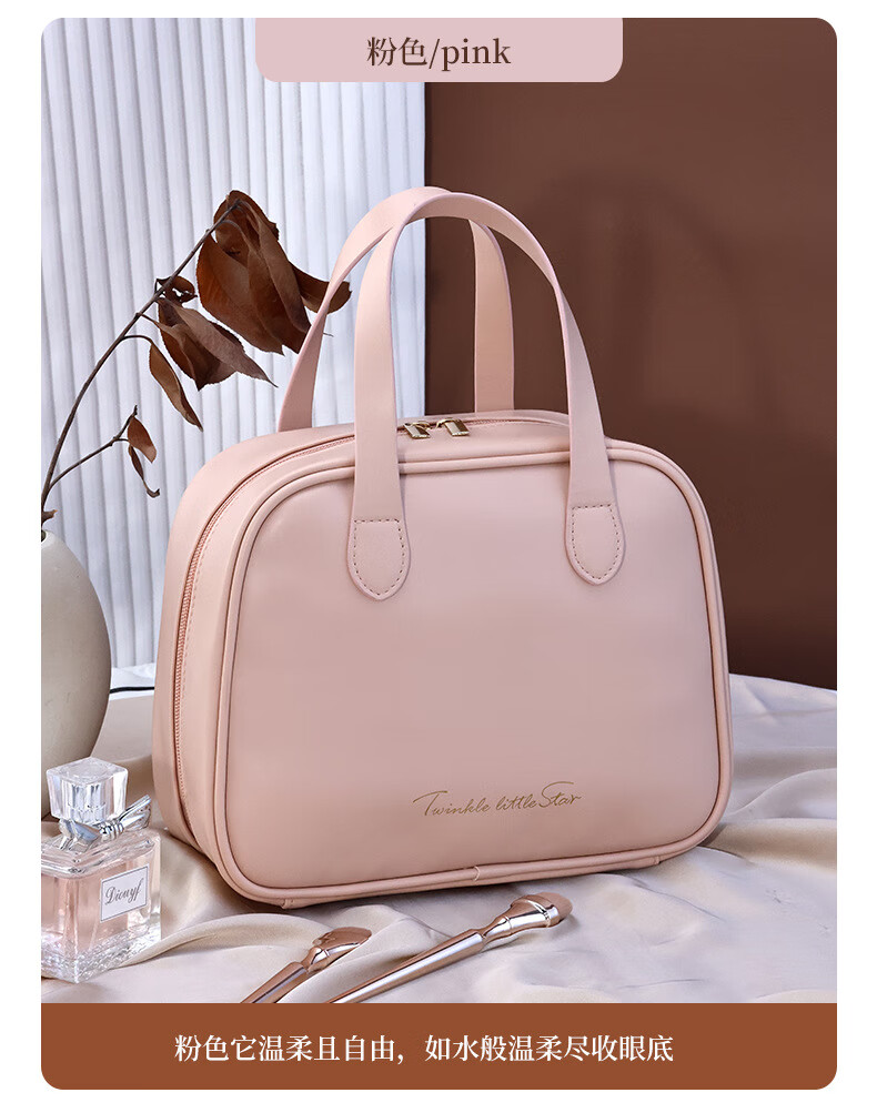 Yinuo Cosmetic Storage Bag Portable Large Capacity Cosmetic Bag Travel Portable Waterproof Toiletries Bag High-Value Cosmetic Bag Thickened French Large Rose Pink