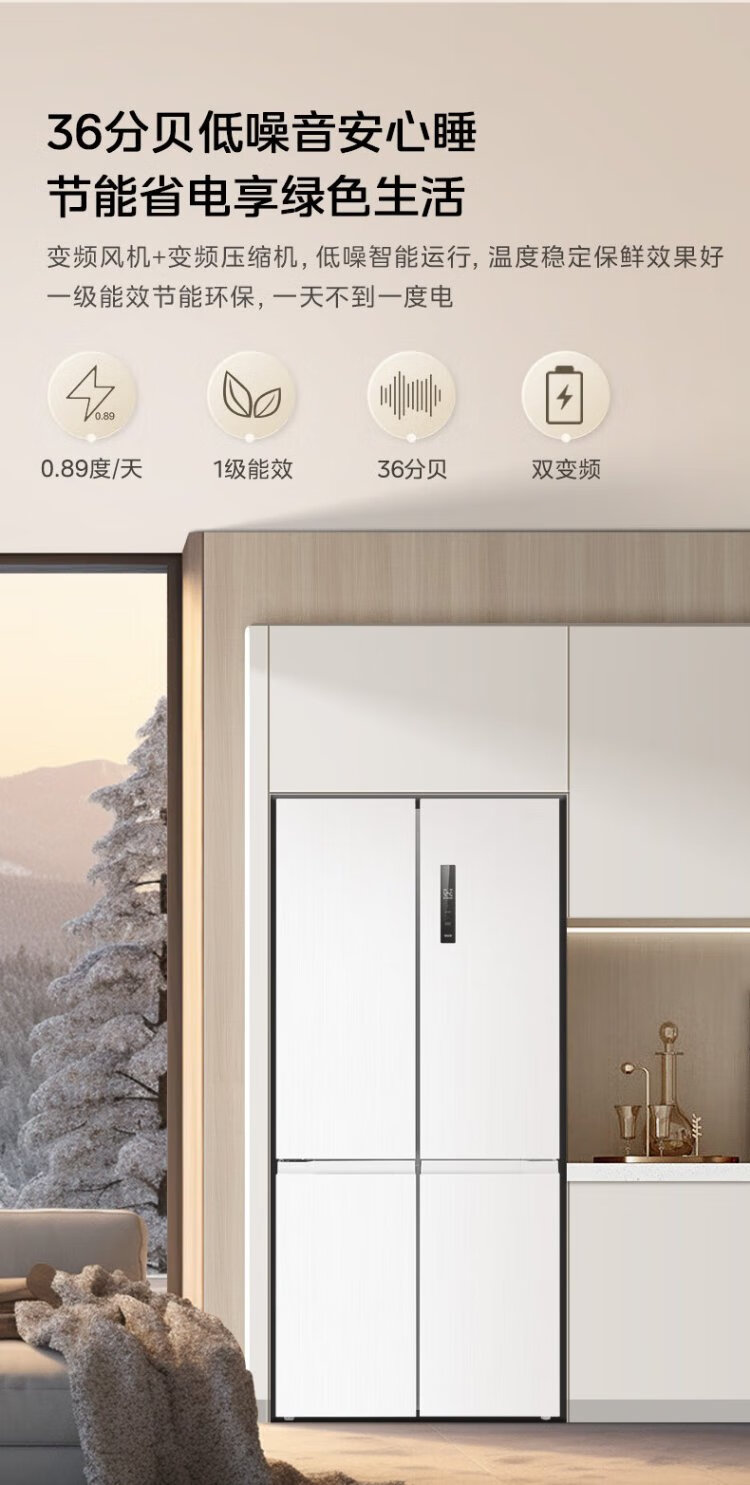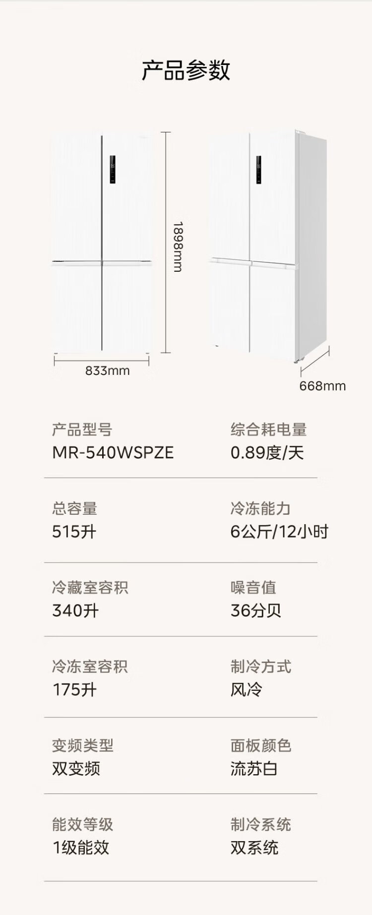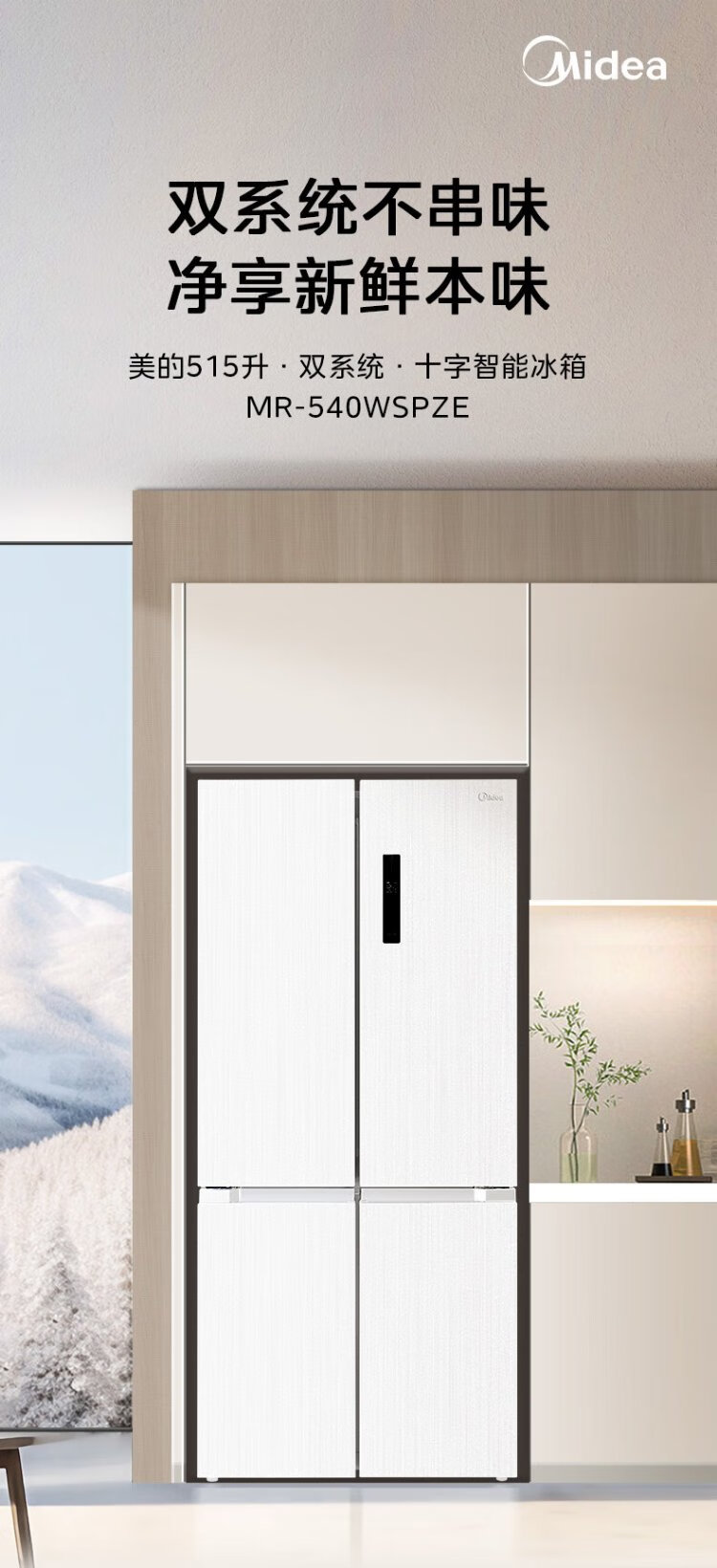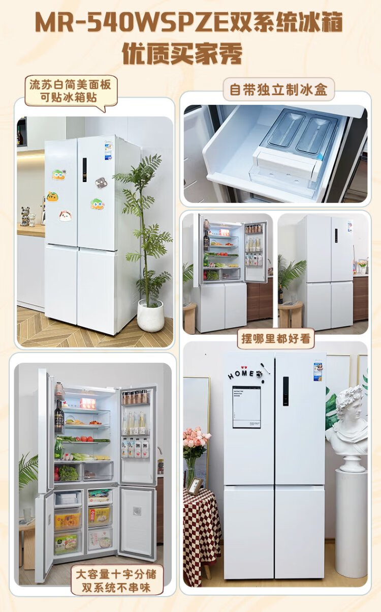 Midea 540 cross four-door door-to-door inverter first-level dual-system dual-cycle large-capacity air-cooled frost-free smart white ice refrigerator government subsidy MR-540WSPZE