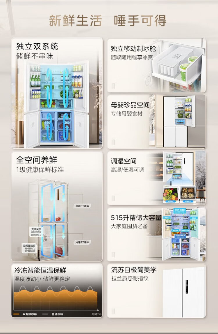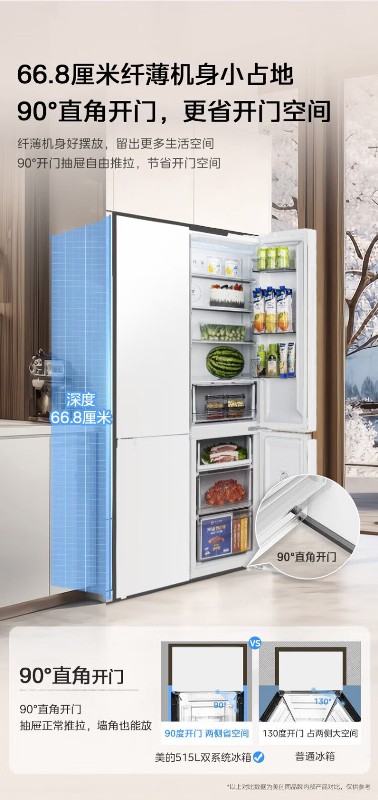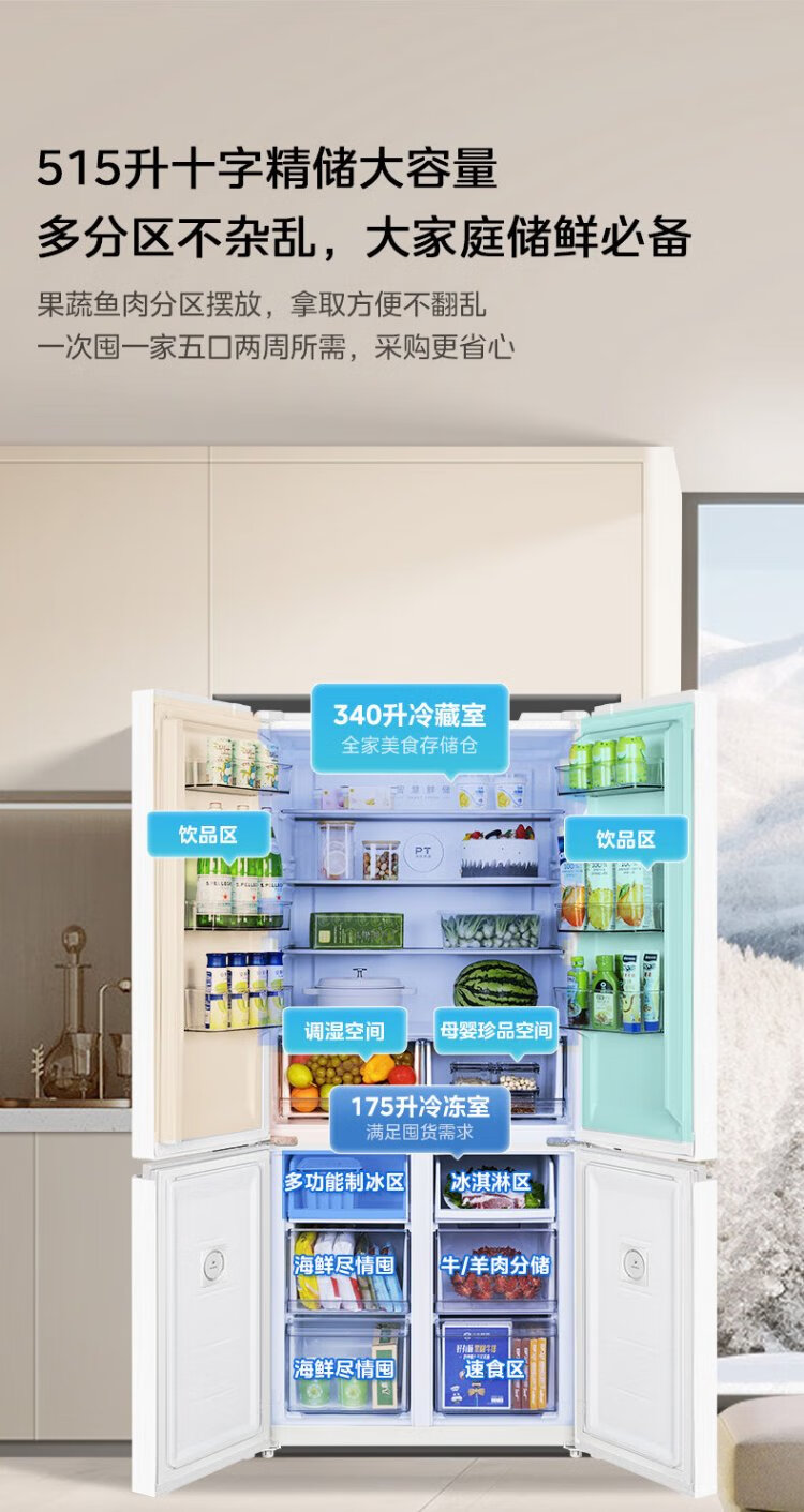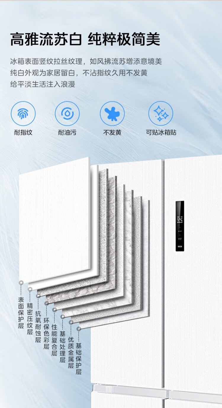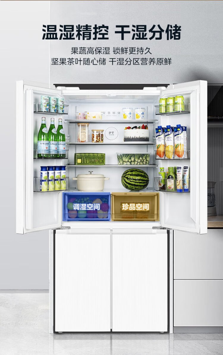 Midea 540 cross four-door door-to-door inverter first-level dual-system dual-cycle large-capacity air-cooled frost-free smart white ice refrigerator government subsidy MR-540WSPZE