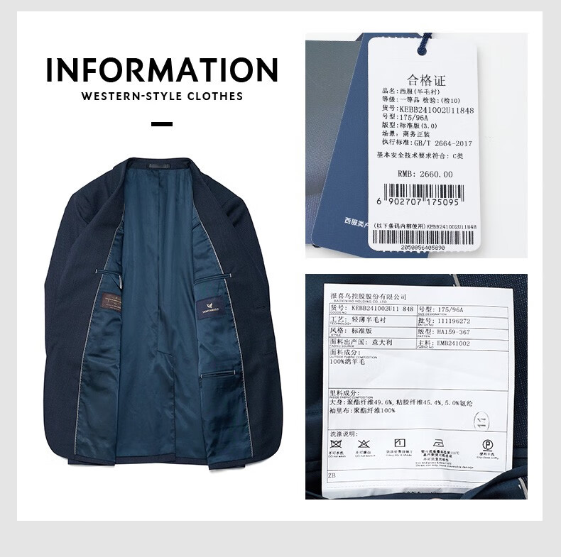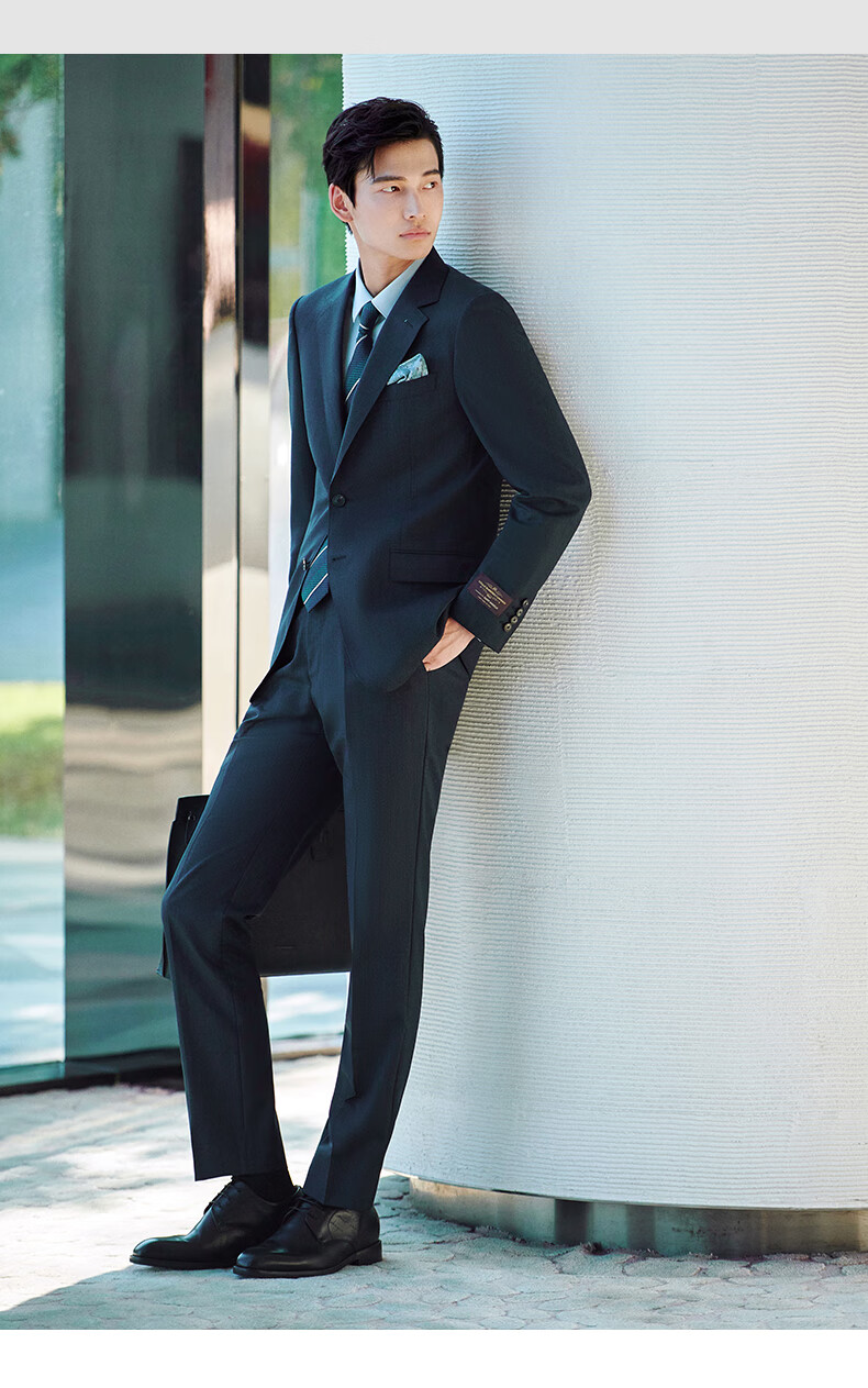 Anniversary Bird Suit Men's VBC Imported Fabric Light Business Formal Suit Suit Business Travel Anti-wrinkle Easy to Care Turquoise Highly Twisted Floral Yarn Solid Color 48 A(175/96) /Please note waist or pants