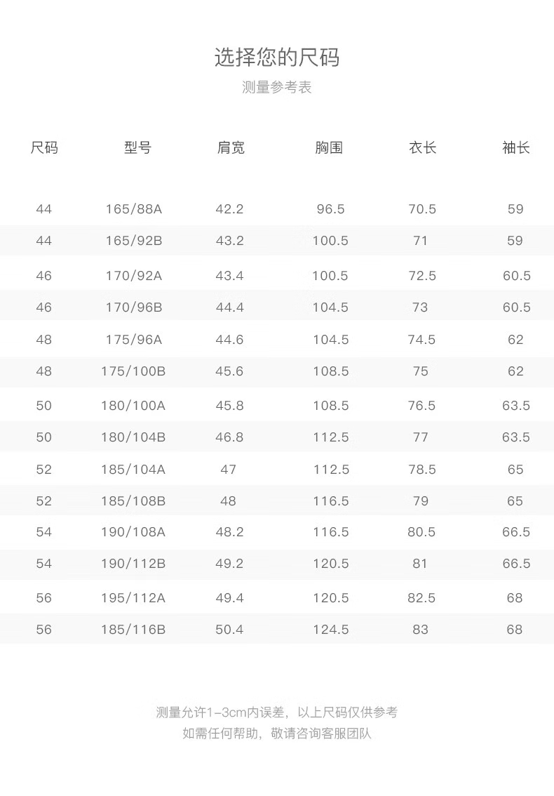 China (cm) 165 / 88-90 170 / 96-98 175 / 108-110 180 / 118-122 185 / 126-130