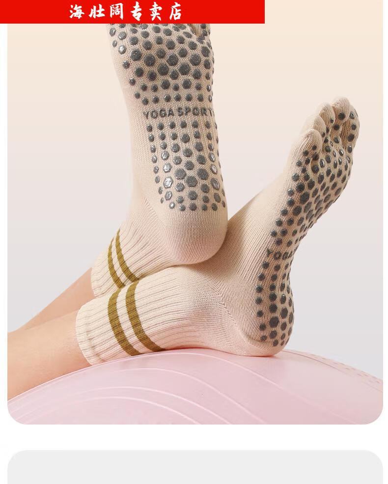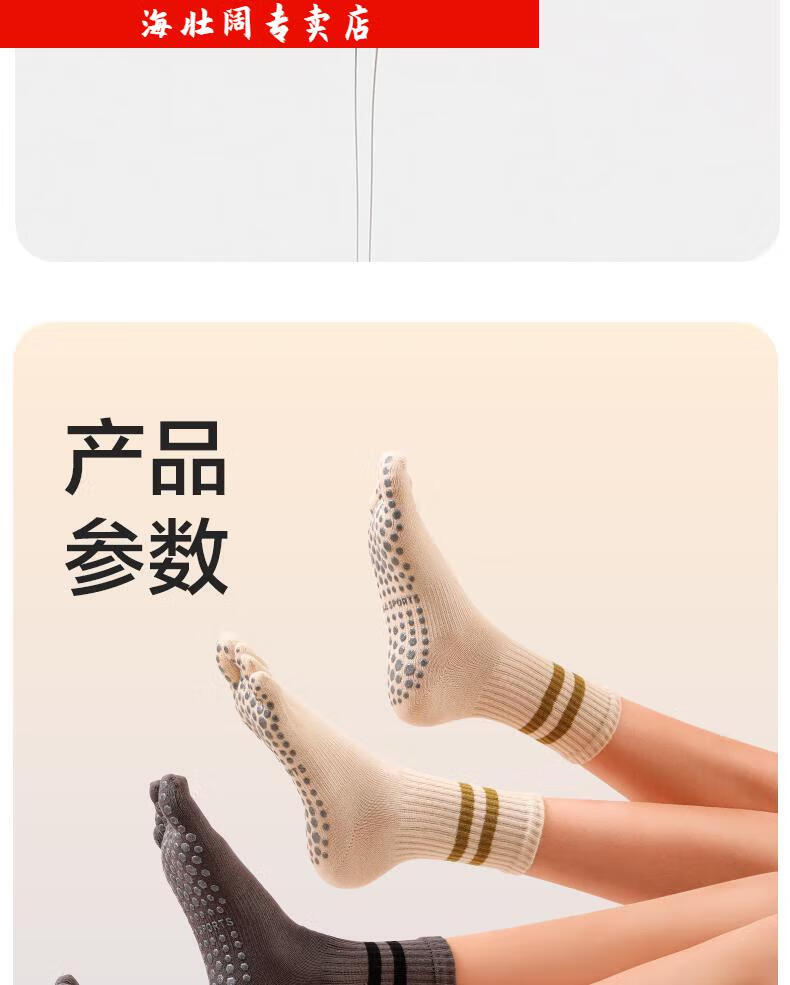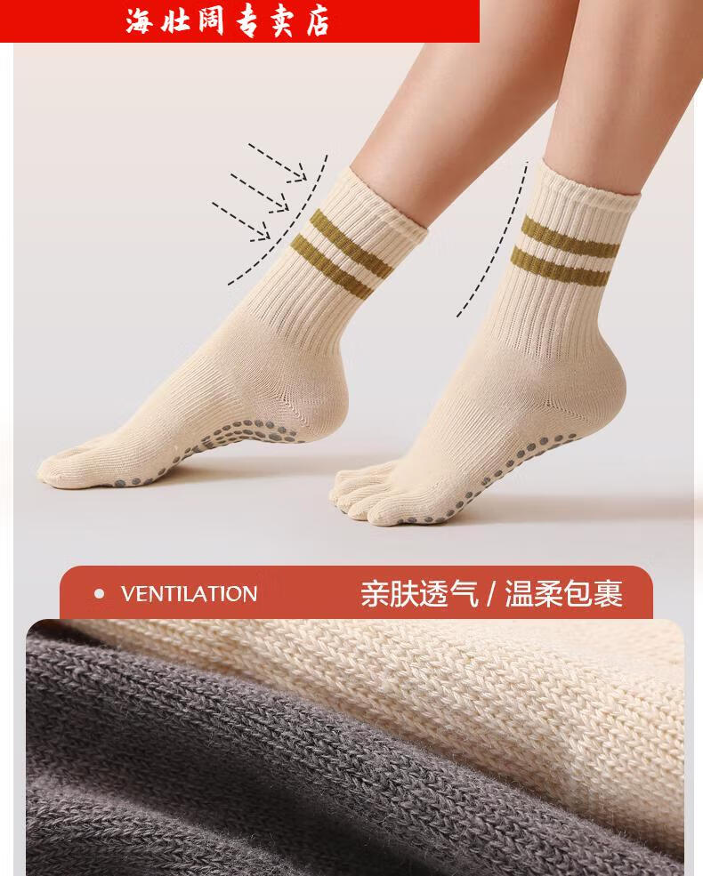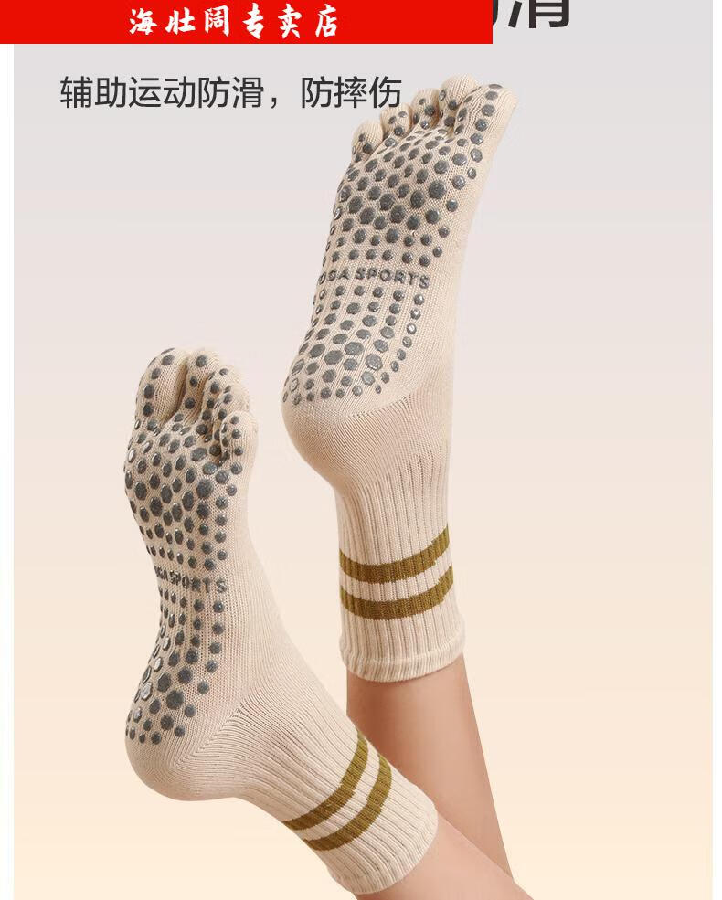 MiiOW yoga socks, non-slip, professional women's Pilates toe socks, sports and fitness split-toe socks, pressure mid-tube indoor skipping rope, dark gray + khaki, easy to change and wash, 2 pairs
