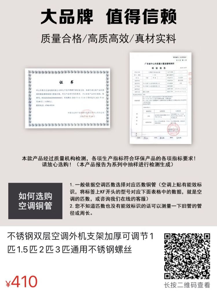 Vinoa air conditioner outdoor machine bracket thickened and adjustable 1 HP 15 HP 2 HP 3 HP universal 304 stainless steel outdoor machine frame 1-2 HP 2.0 thick galvanized double-layer frame