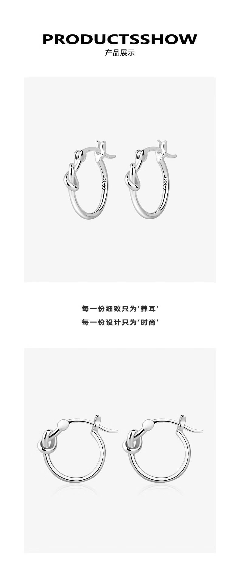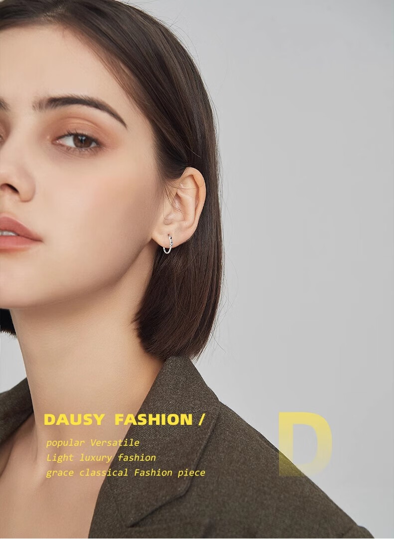 DAISY DREAM999 Pure Silver Earrings Zhang Zifeng Plain Hoop Earrings Women's Unique Design Ins Style Ear Hole Earrings Niche Earrings Silver Earrings 999 Pure Silver