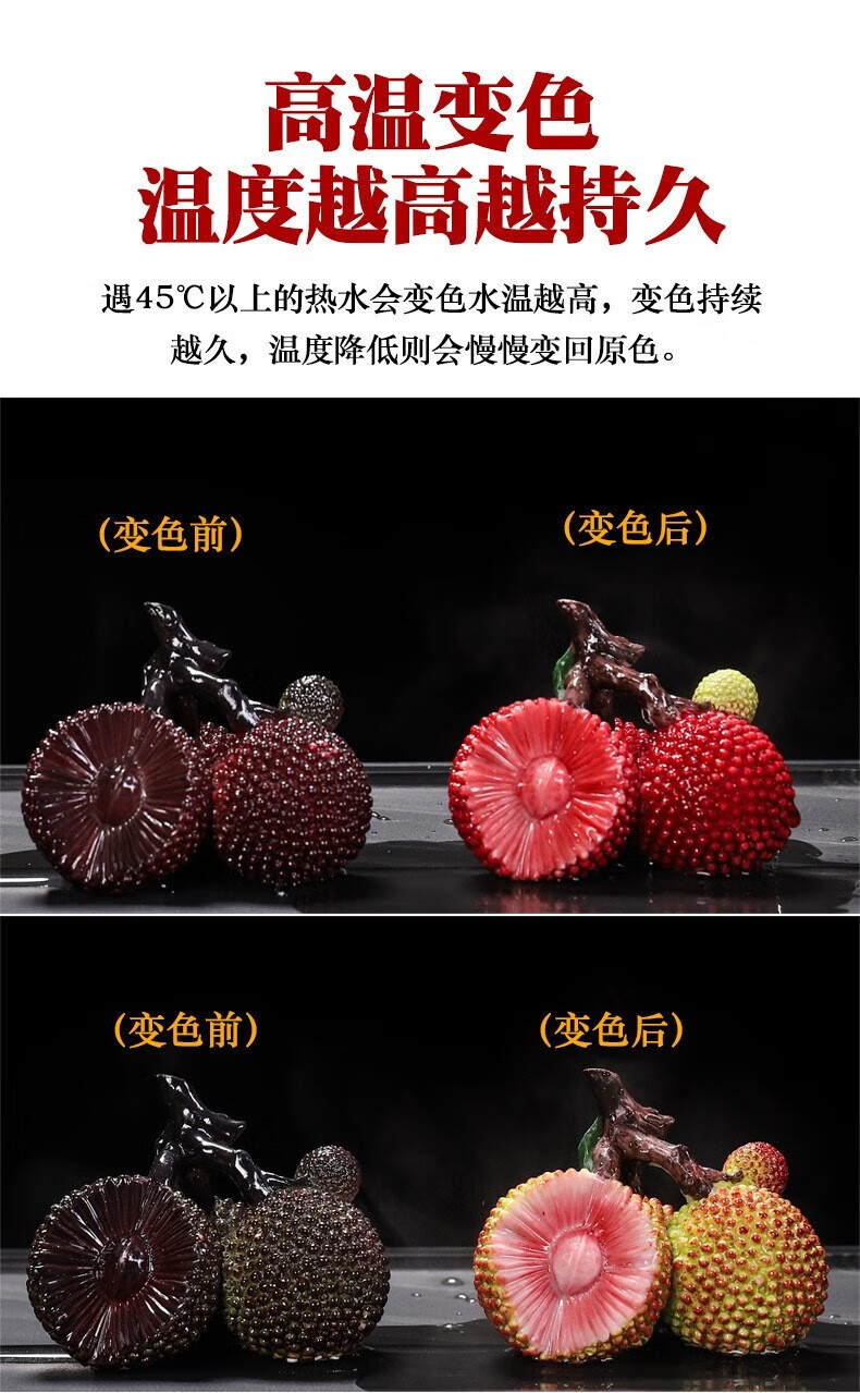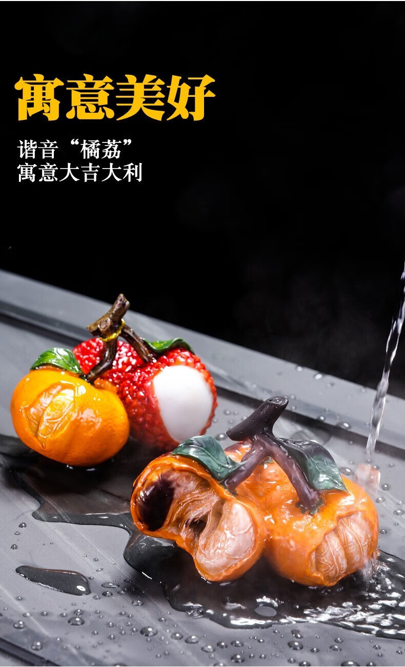 Simi flower color-changing tea pet, lychee and orange tea pet ornaments, Douyin same style creative tea set accessories, color-changing when exposed to water, big orange and big li