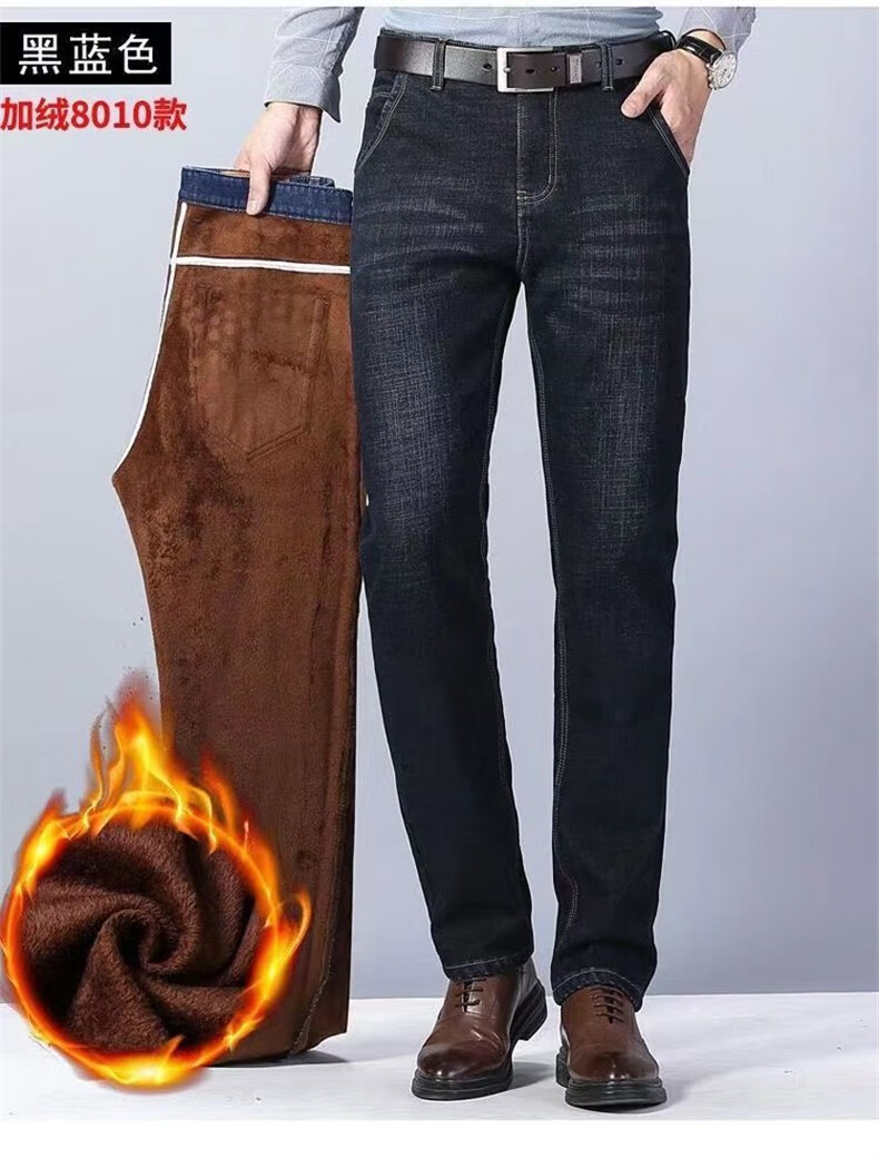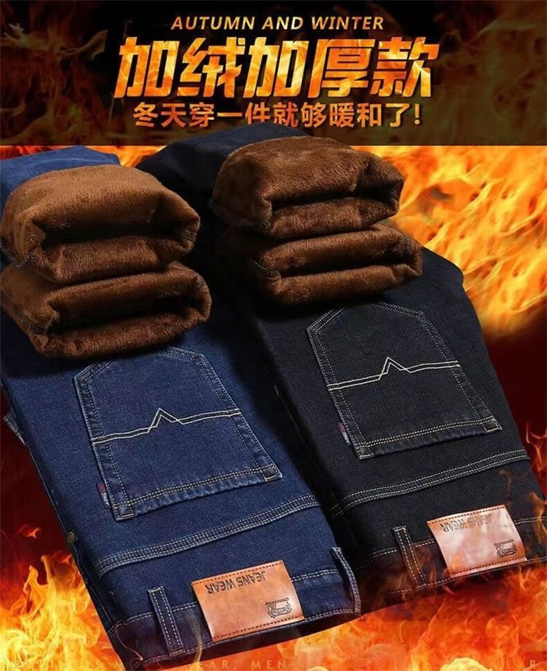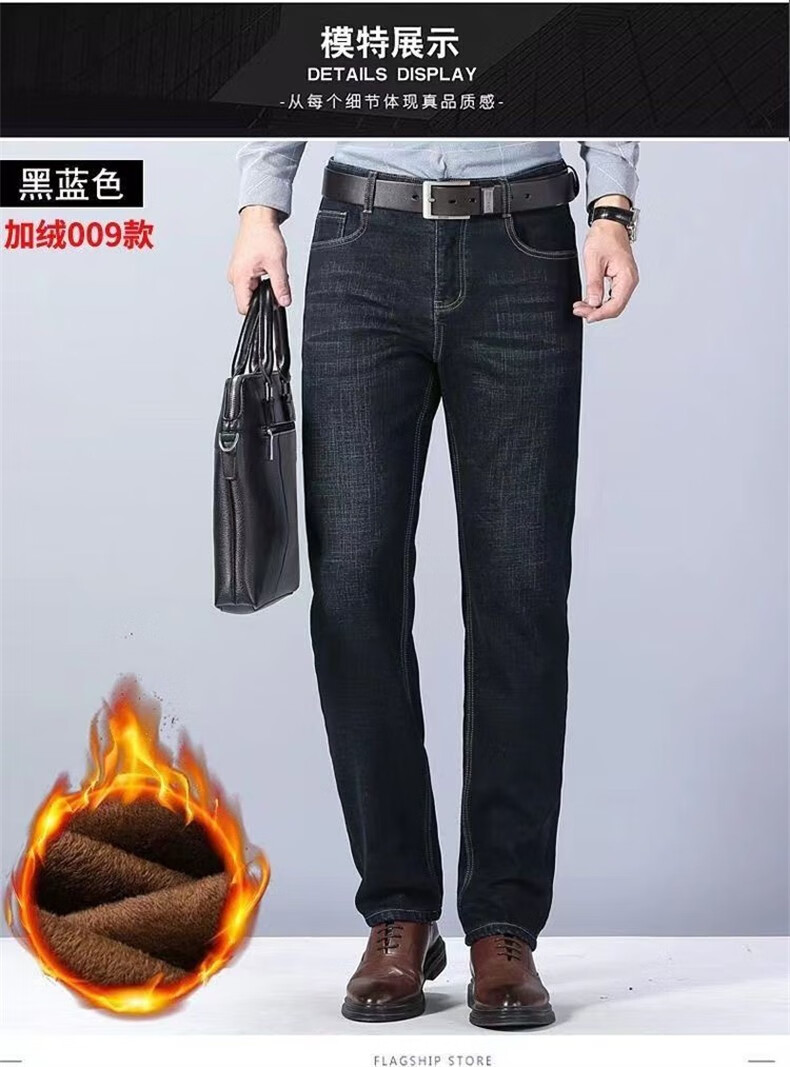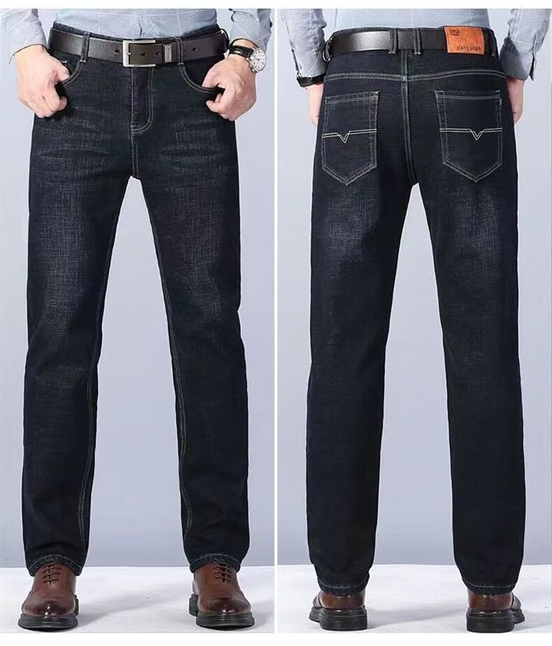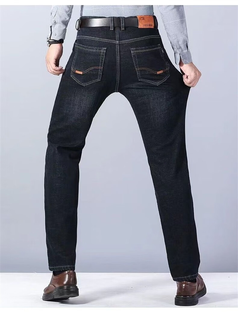 Maoni velvet jeans men's winter thickened loose trendy straight elastic warm trousers workwear casual pants for men velvet thickened 2 pairs/010 black + 009 black 32 Recommended weight 115-145Jin Jin is equal to about 0.5 kg