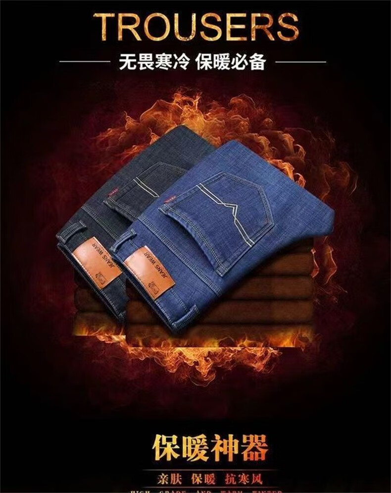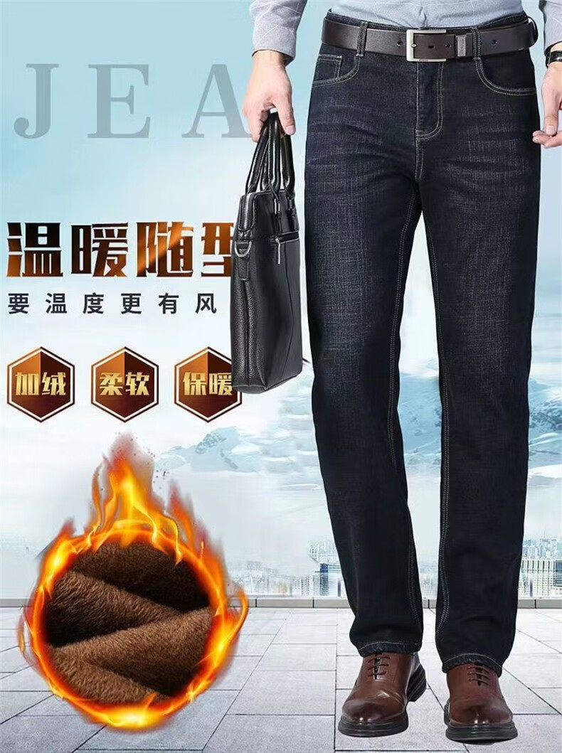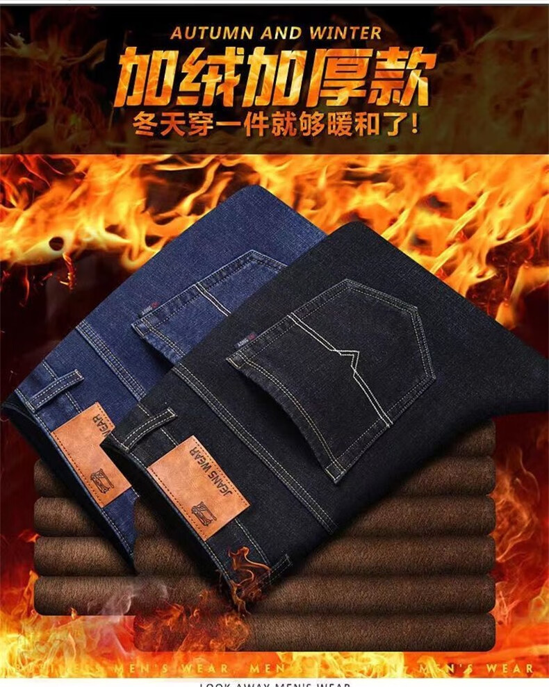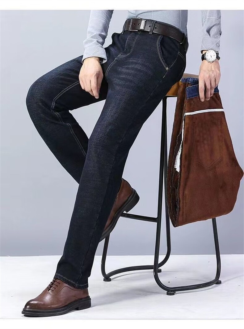 Maoni velvet jeans men's winter thickened loose trendy straight elastic warm trousers workwear casual pants for men velvet thickened 2 pairs/010 black + 009 black 32 Recommended weight 115-145Jin Jin is equal to about 0.5 kg