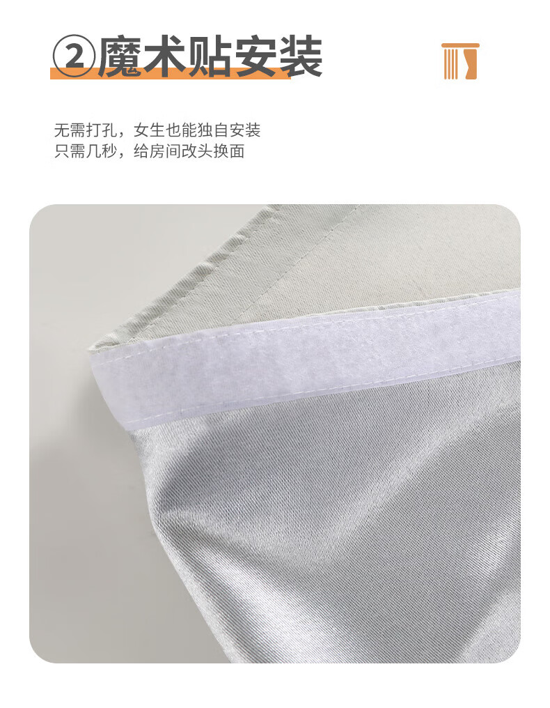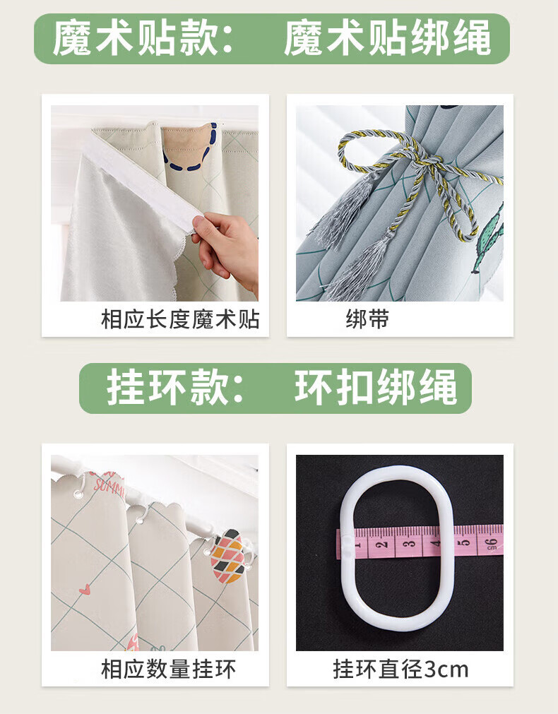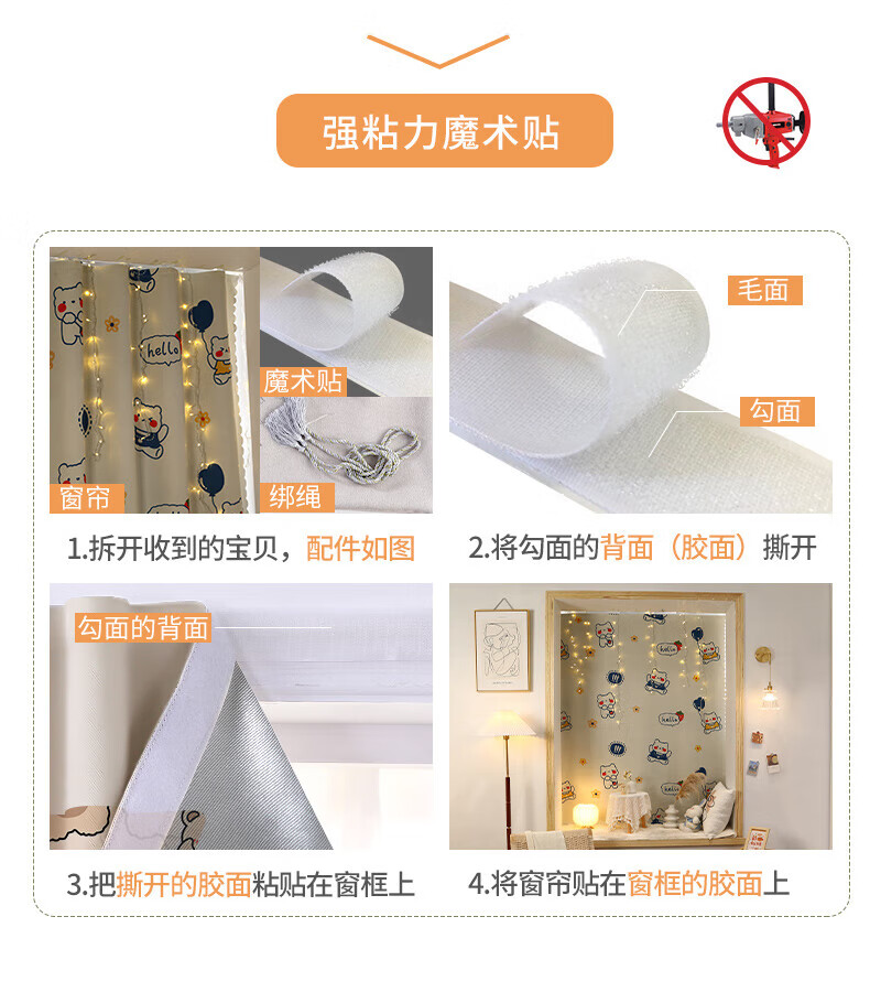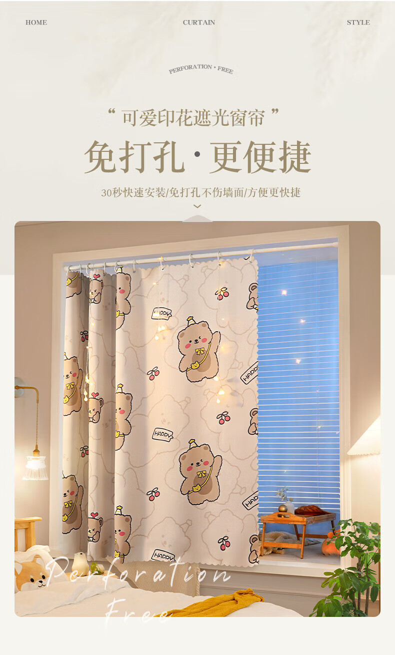 Yinmai no-punch simple small curtain telescopic rod complete set of blackout and sunshade cloth Velcro self-adhesive rental short pineapple-hanging ring style 1.8m*2.0m width and height (bifold)