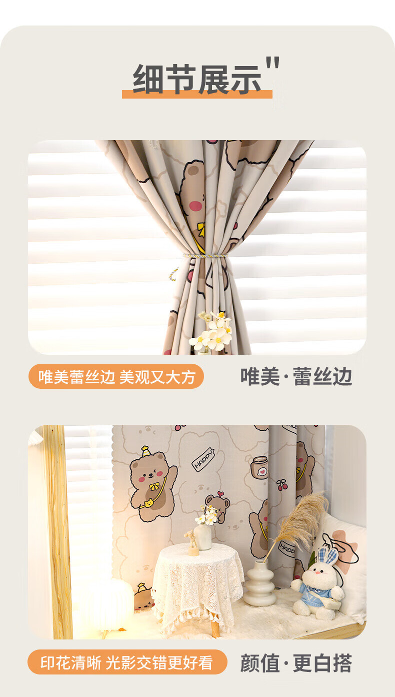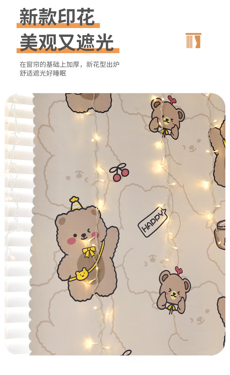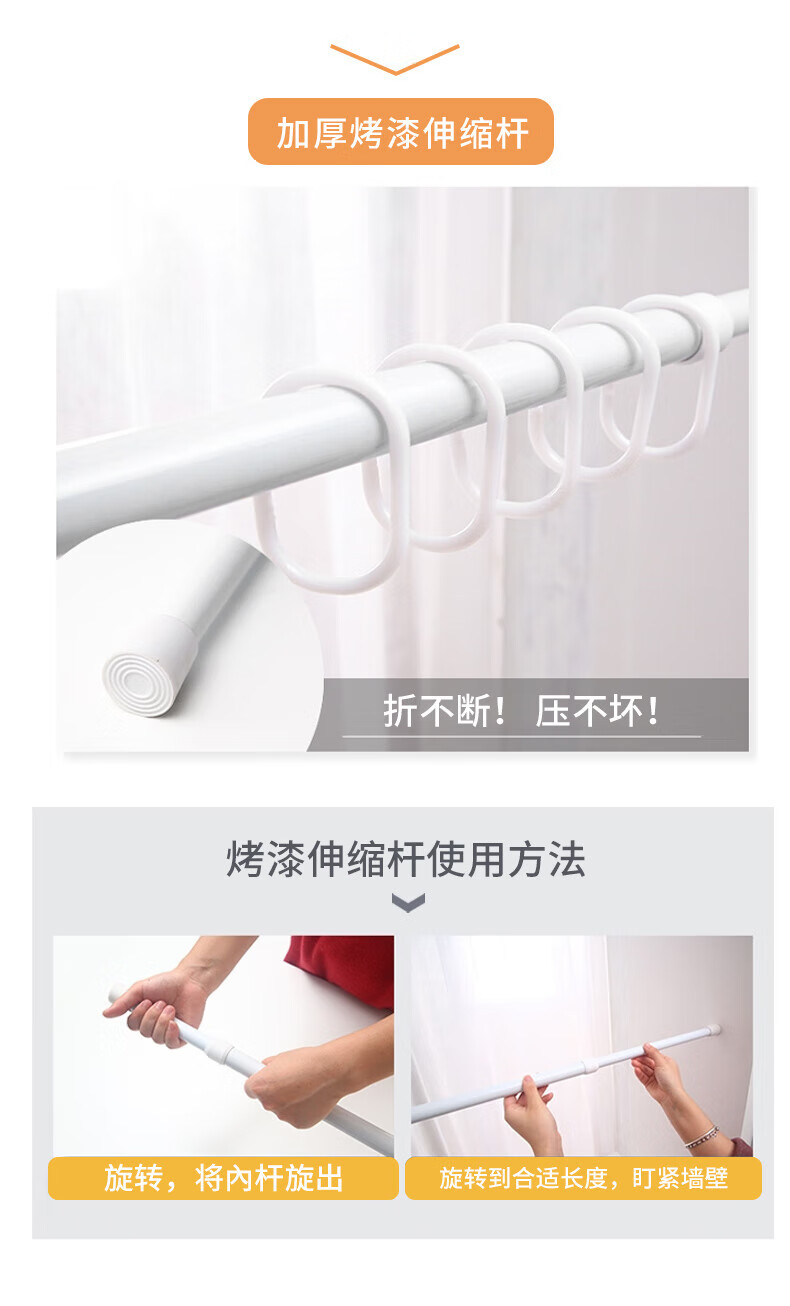 Yinmai no-punch simple small curtain telescopic rod complete set of blackout and sunshade cloth Velcro self-adhesive rental short pineapple-hanging ring style 1.8m*2.0m width and height (bifold)
