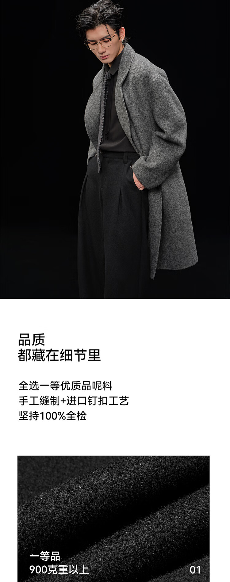 Piaget Zall Camel Wool Blended Double-sided Wool Coat Men's Mid-Length 2025 Autumn and Winter New Commuting Men's Jacket Premium Gray 1st Generation - No Liner L (175)