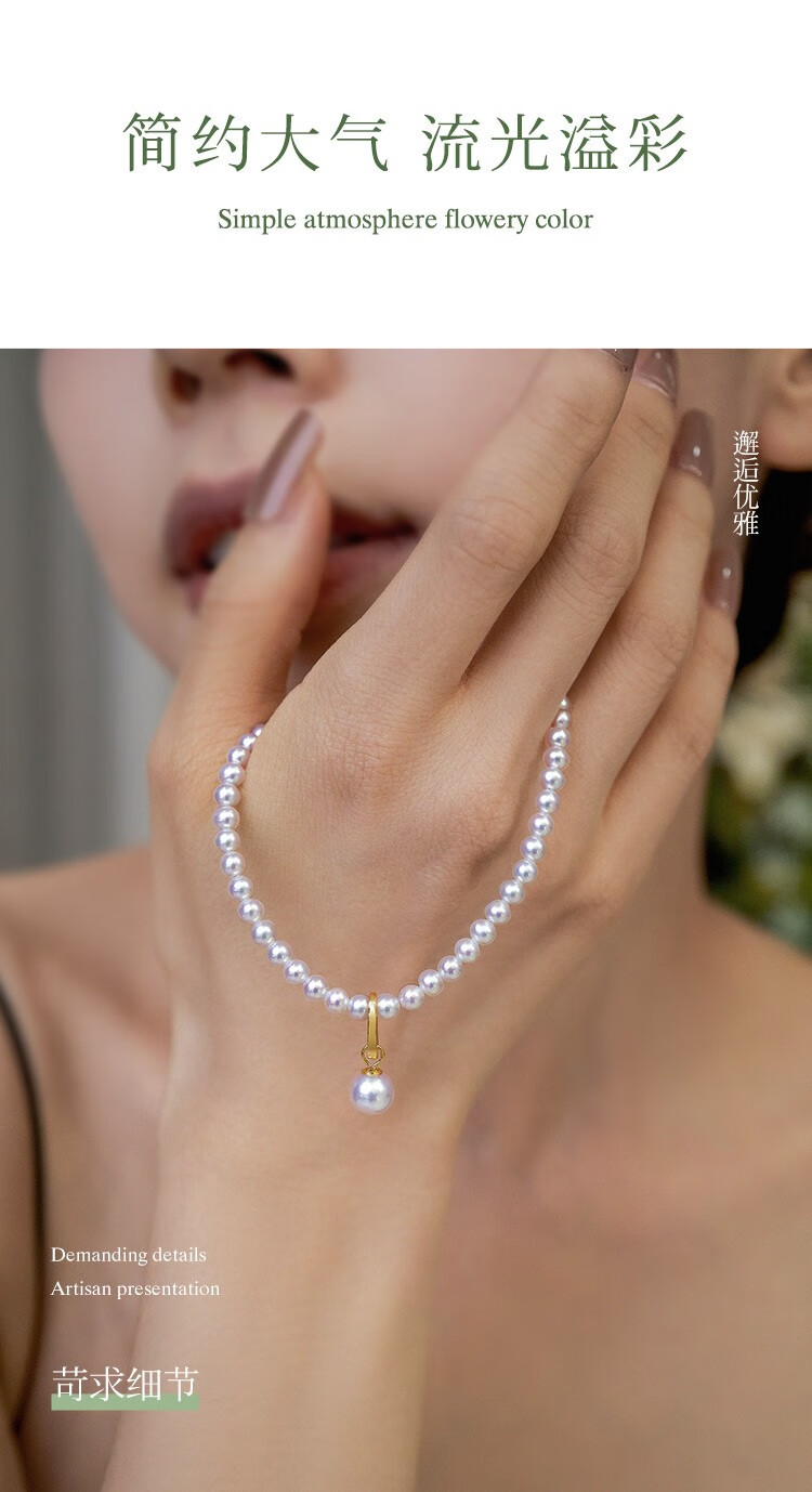 Meluxe 18K gold akoya seawater pearl pendant universal buckle necklace for women birthday gift for wife yellow 18K gold universal buckle about 0.28g
