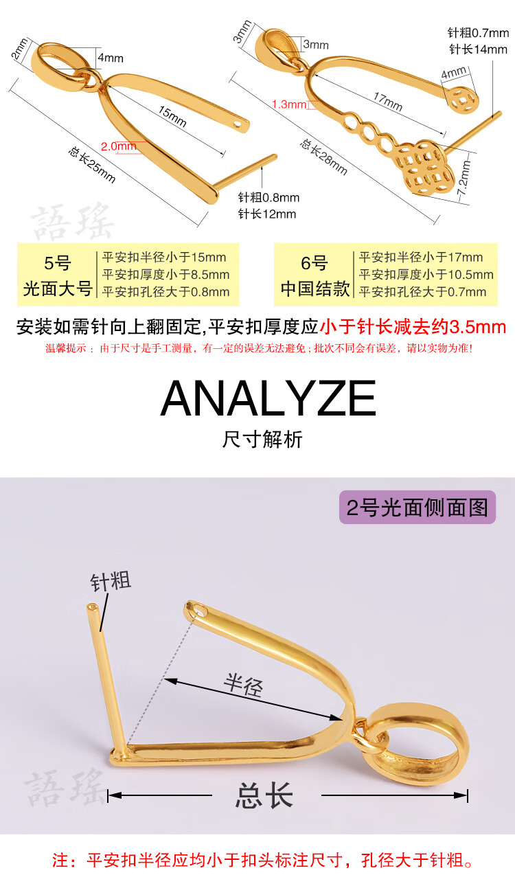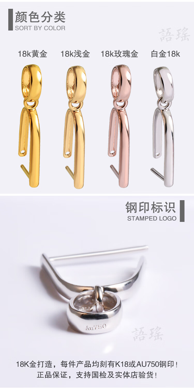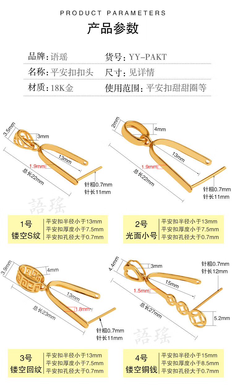 Yuyao safety buckle clip buckle 18k gold buckle accessories donut inlaid empty support thickened version pendant buckle melon seed buckle AU750 No. 6 thickened version - Chinese knot - 18k gold