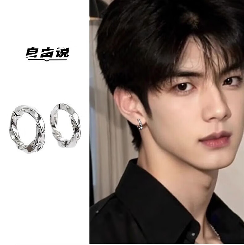 Free Talk No Piercing Ear Clip Men's Earrings No Punching Single Trendy High-end Earrings for Boys No Holes Handsome Earrings for Men Silver Single