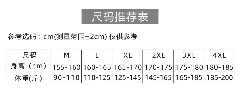 China (cm) 165 / 88-90 170 / 96-98 175 / 108-110 180 / 118-122 185 / 126-130