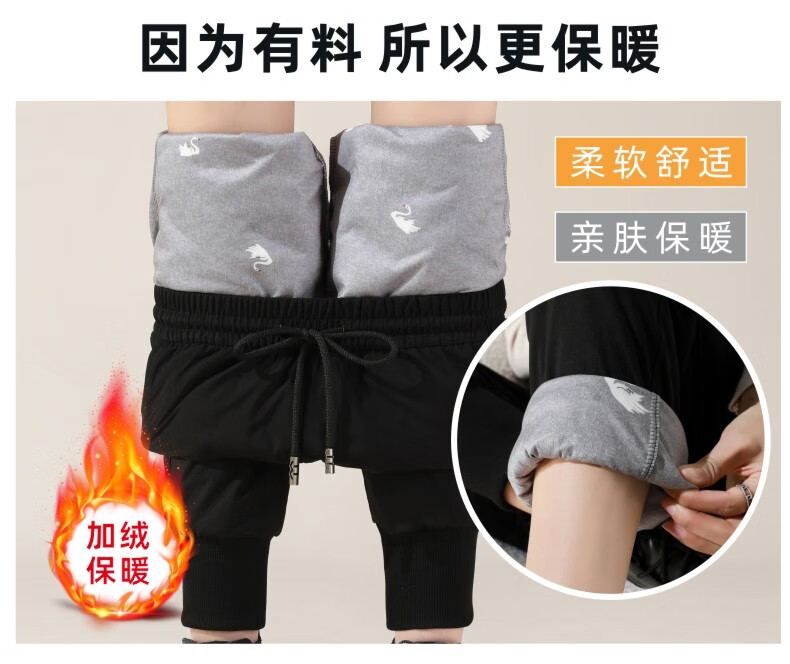 Duck Down Pants Women's 2023 Winter New Plus Down Thickened Warm Straight Pants Long Pants Women's Down Pants Black 2XL