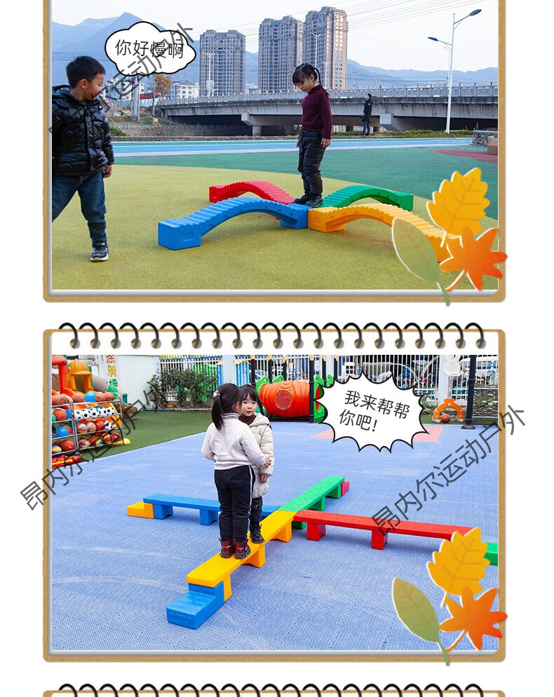 Kindergarten outdoor toys sports body intelligent sensory training equipment single-plank bridge children's S-type plastic balance beam A-type standard blue single