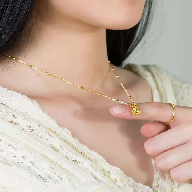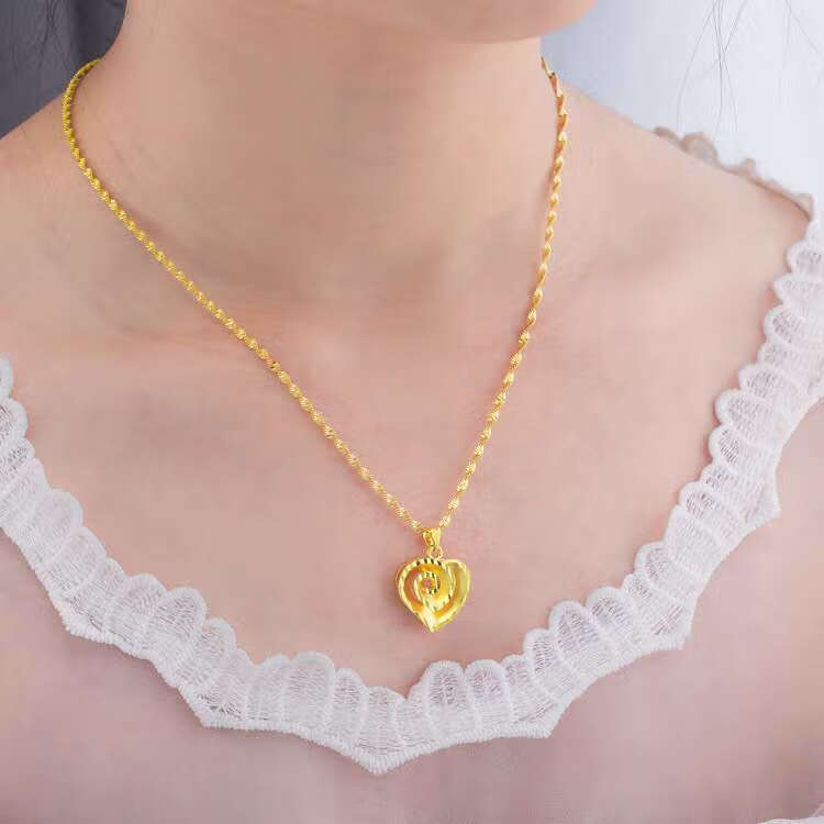 Yin Qianhui unbranded Vietnamese sand gold necklace women's clavicle gold necklace love pendant Korean version for girls to give to their girlfriends mother gold leaf pendant + zygote chain