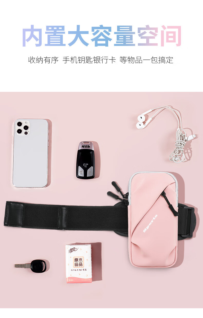 Running mobile phone arm bag outdoor mobile phone bag men's and women's universal arm strap sports mobile phone arm sleeve wrist bag waterproof black