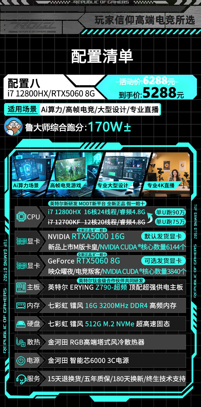 Colorful Intel overclocked Core i7 12700KF/i5 14400F+RTX5060Ti/RTX5060/5050 independent display desktop computer e-sports game live broadcast design host configuration five i7 12700KF+RTX3060 computer host丨five-year warranty e-sports/design/live broadcast/AI computing power