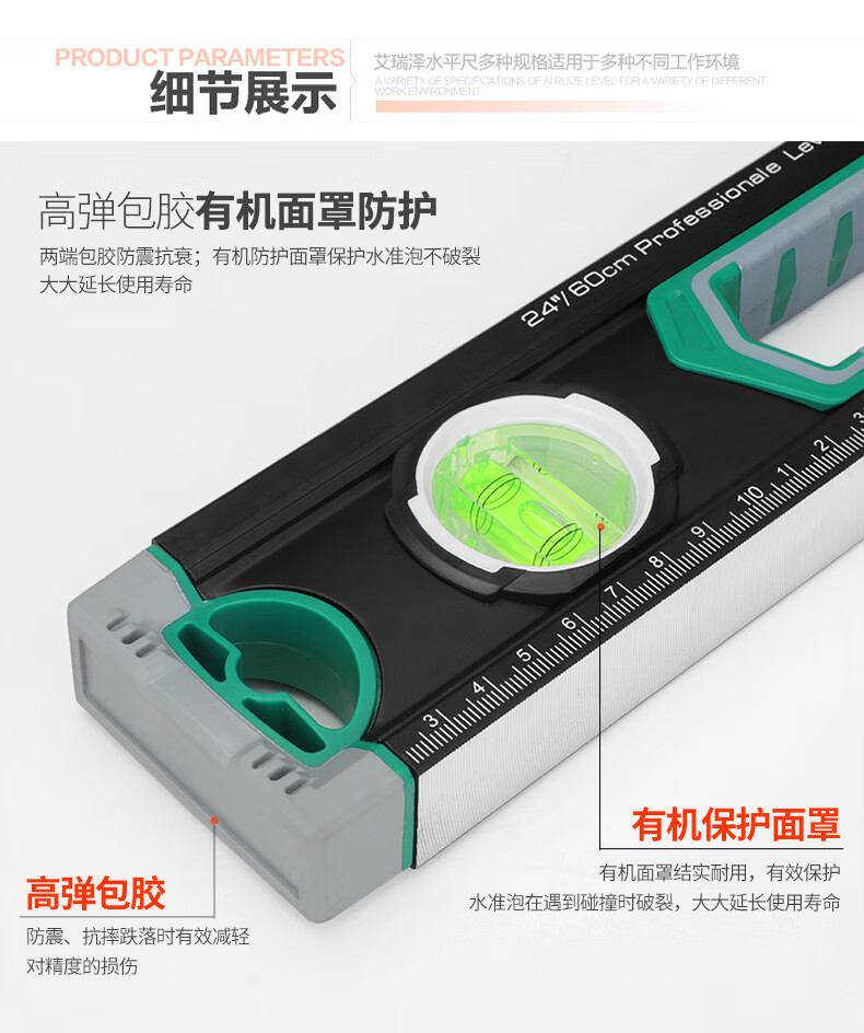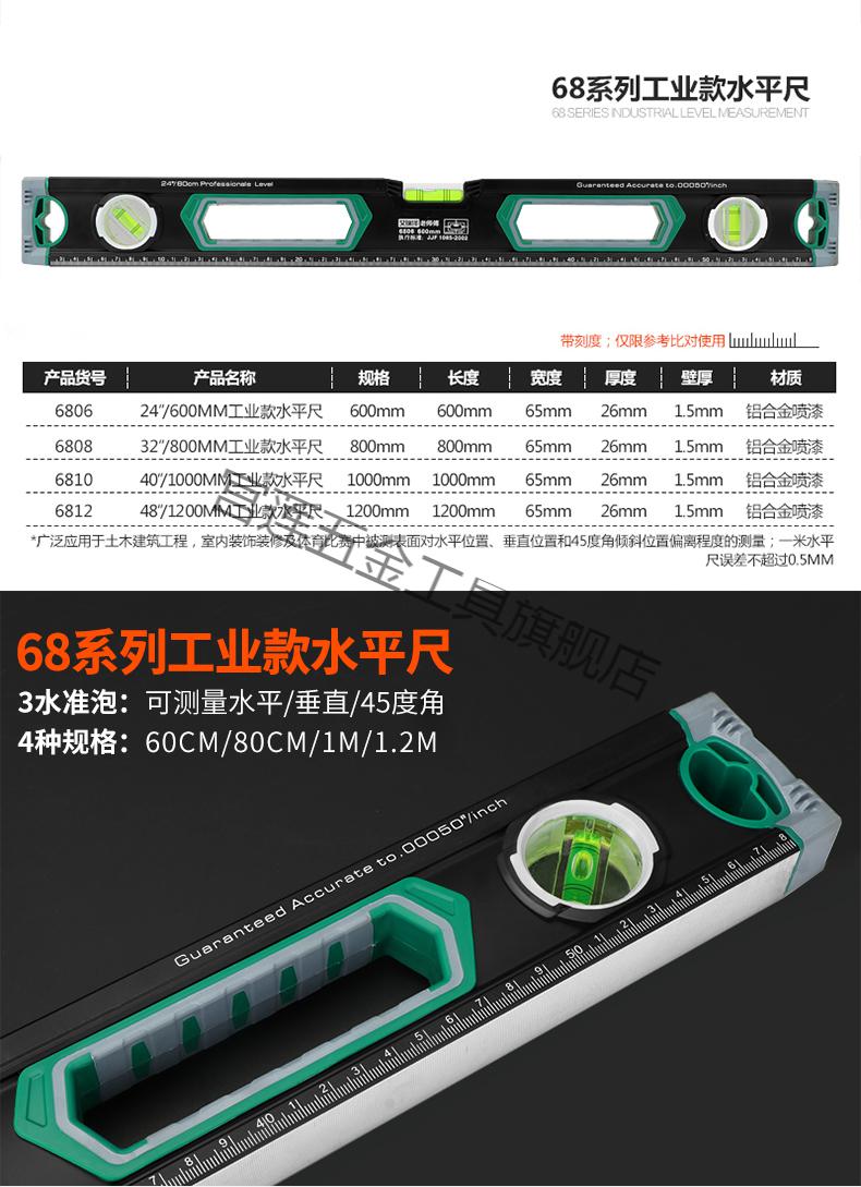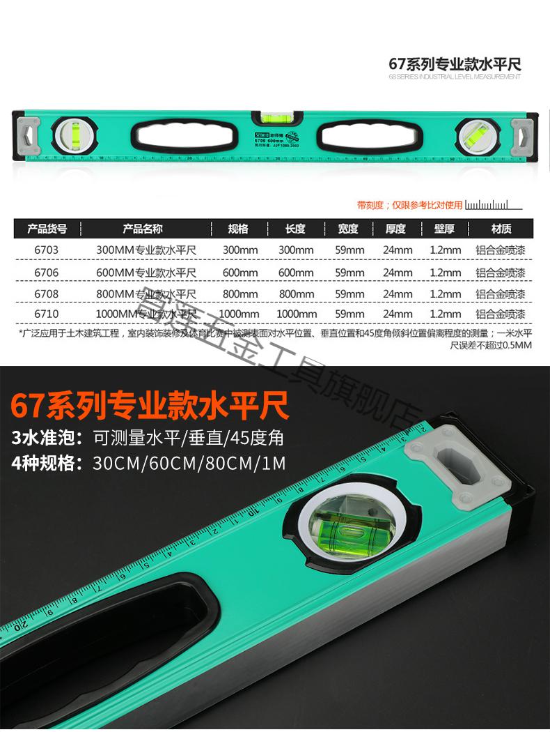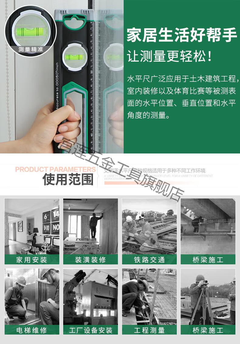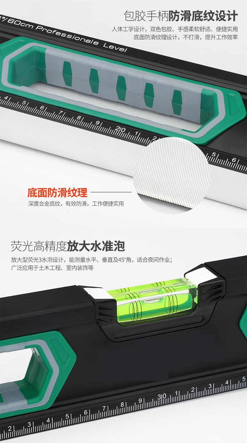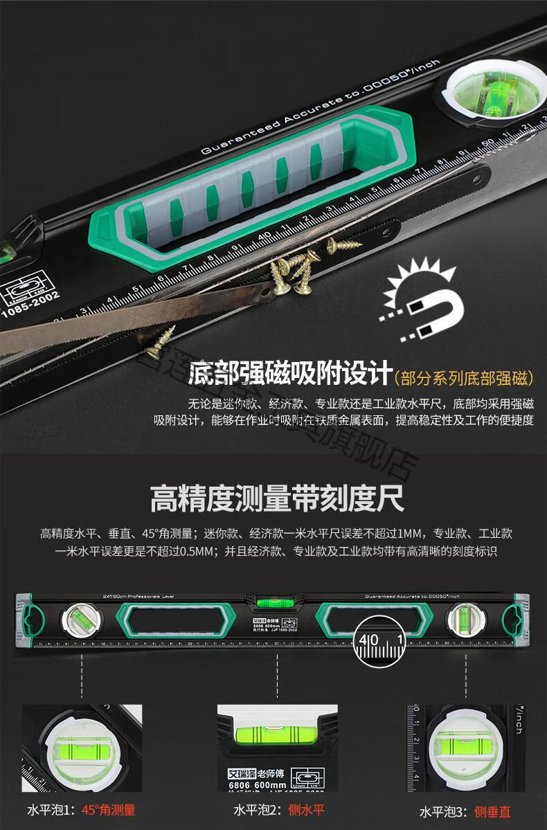 Taslon spirit level high-precision flat water ruler magnetic aluminum alloy ruler solid multi-functional measuring level solid cast aluminum level 800MM (strong magnetic model