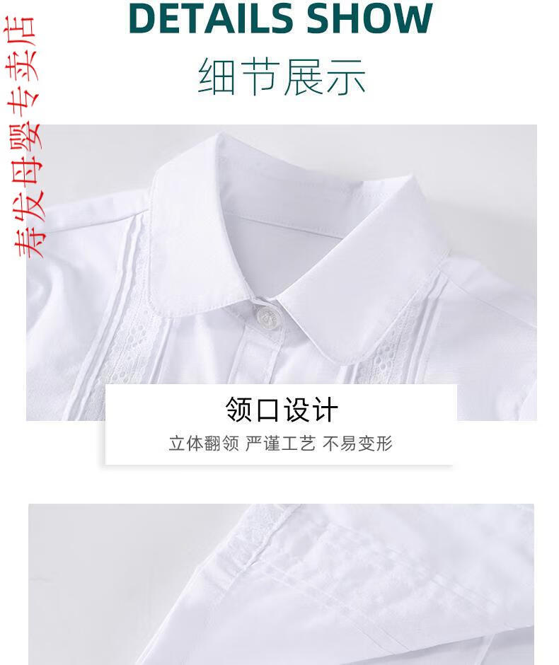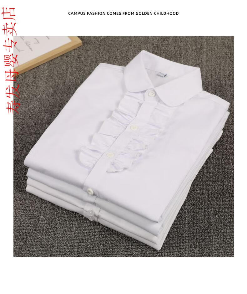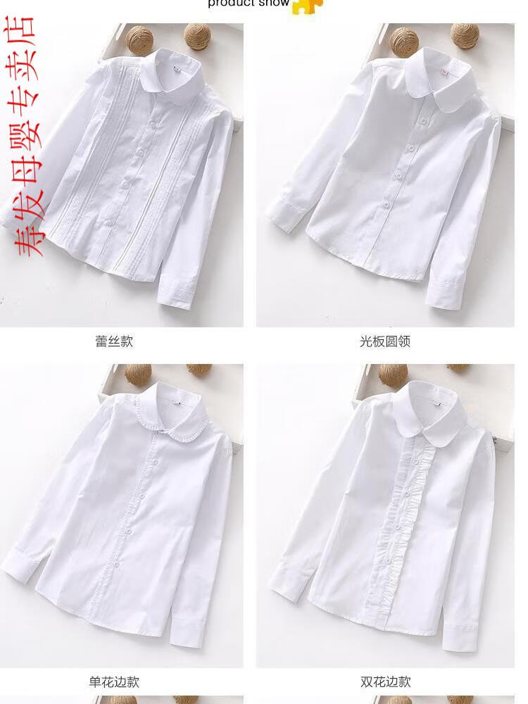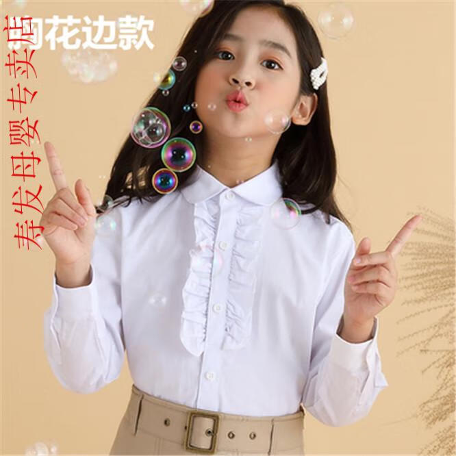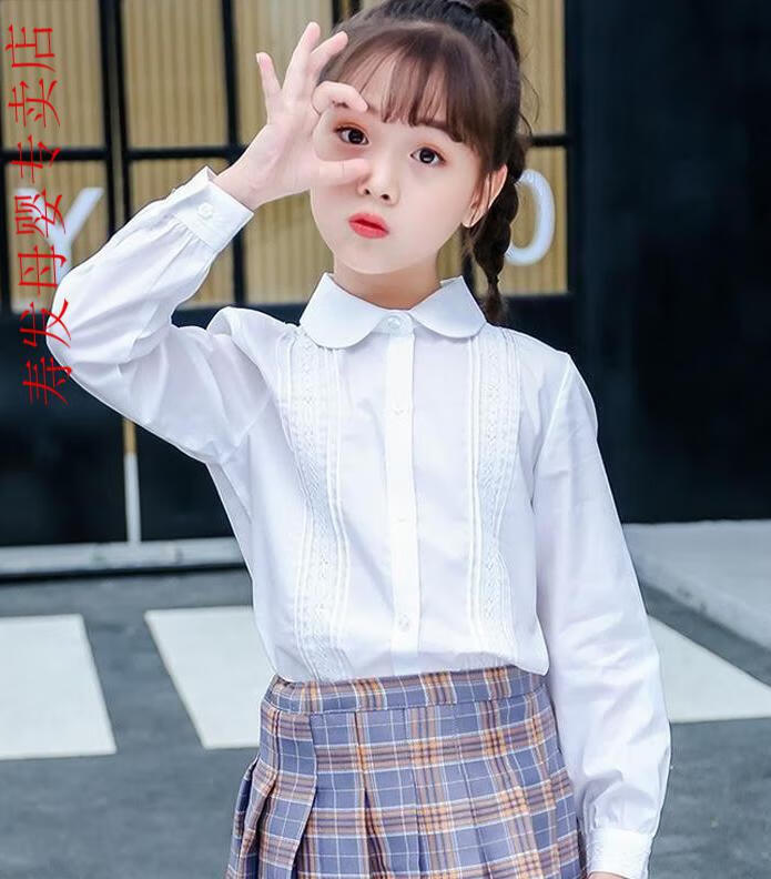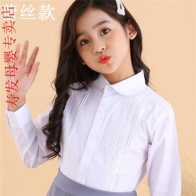 G.duck girls long-sleeved white shirt spring and autumn middle and large children's campus pure cotton white shirt children's girls primary school uniform style lace long sleeves plus velvet 160 cm suitable for 150-160cm age 10-12 years old