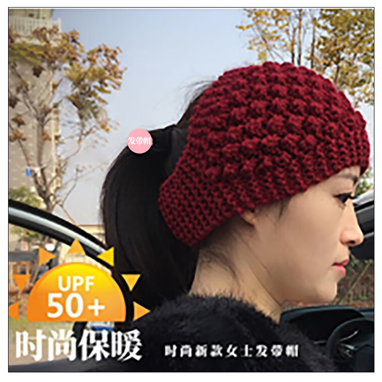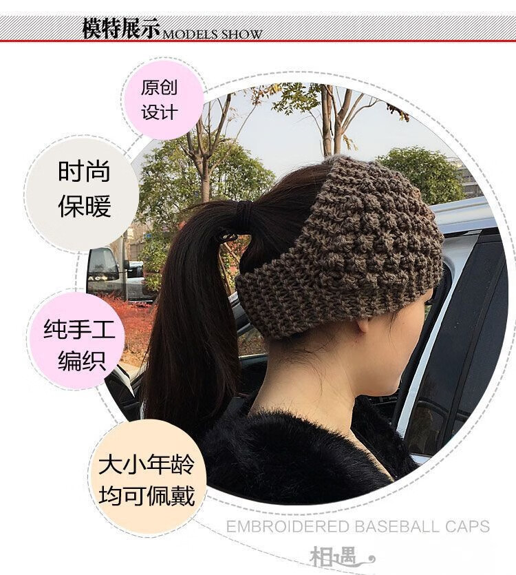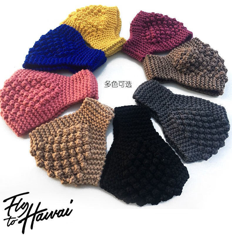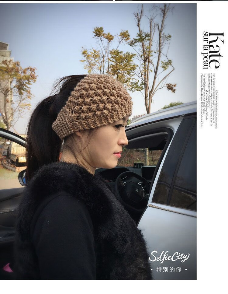 Shen Yun pineapple flower wide-brimmed hairband Korean style white hair cover with hat knitted warm headgear wide-brimmed hairband hair protection belt khaki color one size