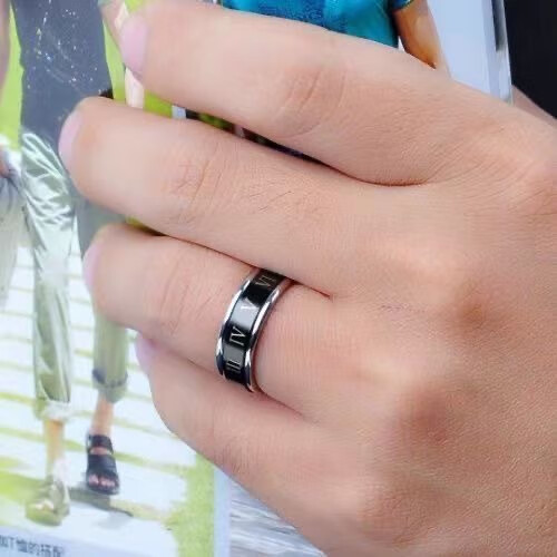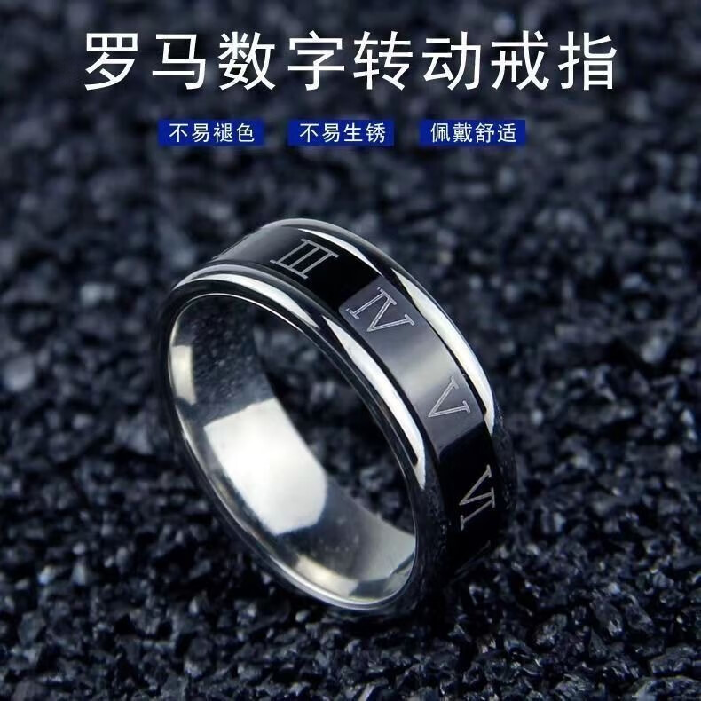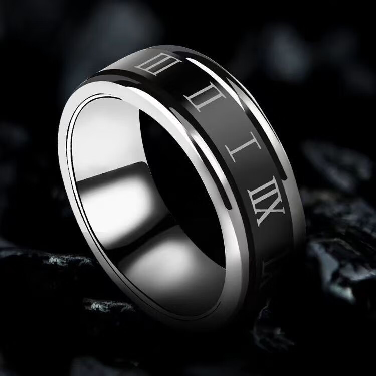 Shui Yunmiao Roman numeral rotating ring for men, trendy and trendy titanium steel ring, men's fashionable ring for boyfriend, Roman numeral rotating ring, size 8