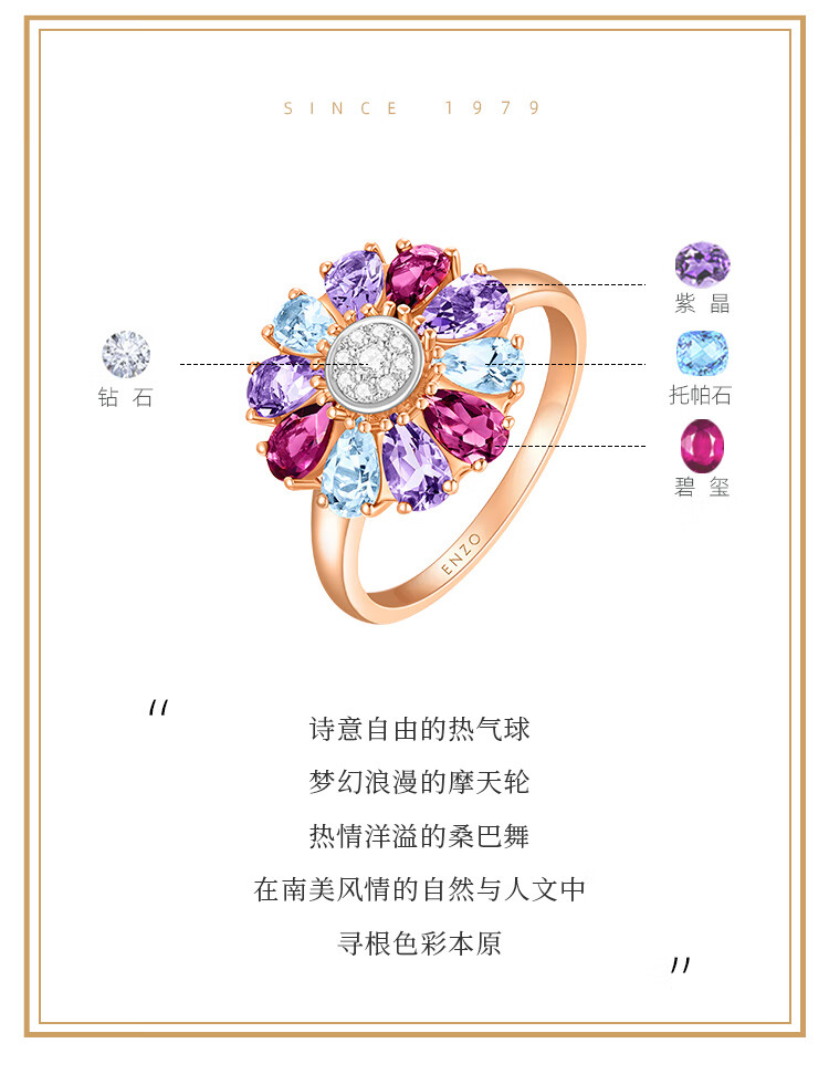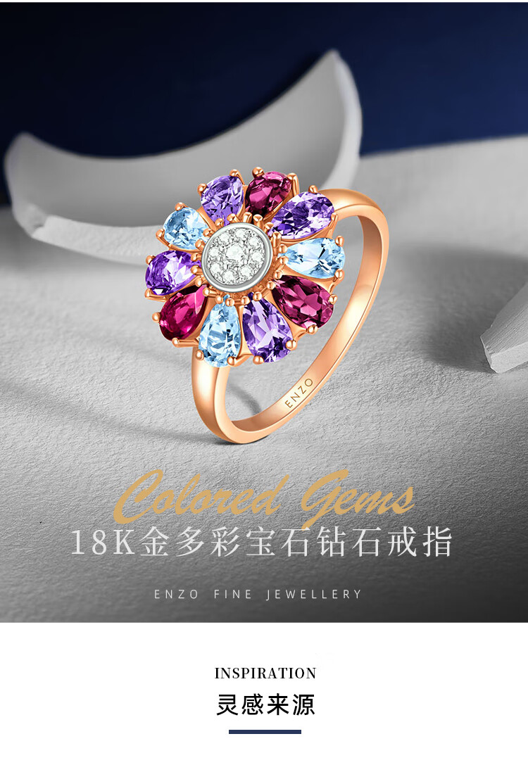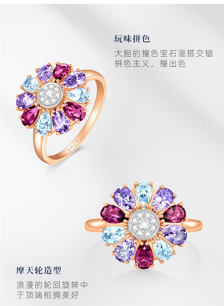 Chow Tai Fook ENZO Dance Skirt Series 18K Gold Colorful Gemstone Diamond Ring Women EZV4257 Birthday Gift No. 11