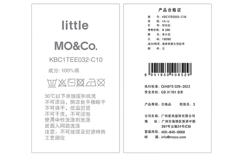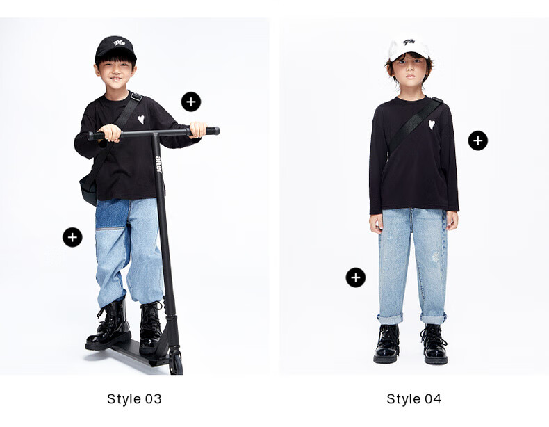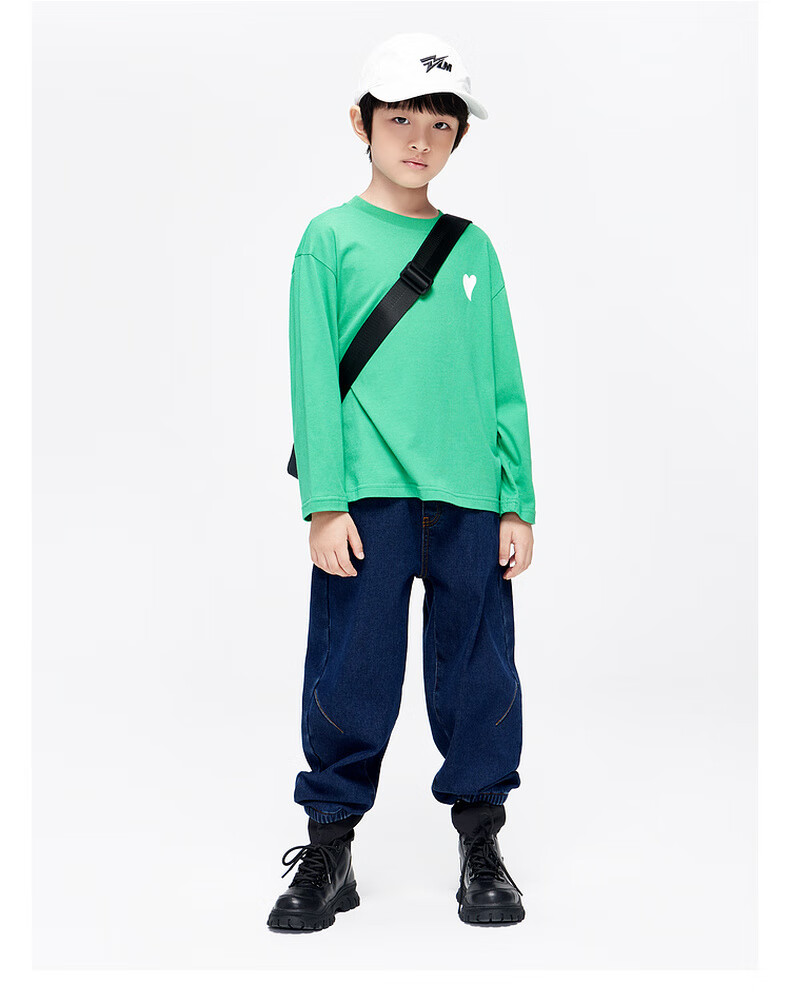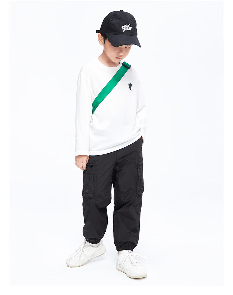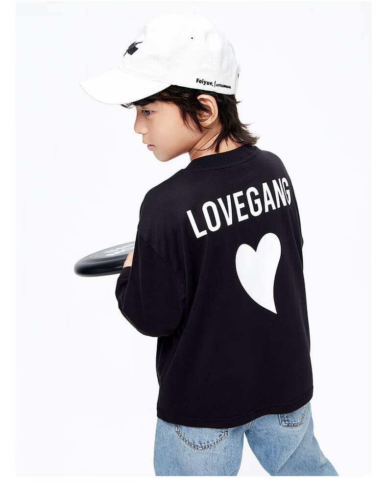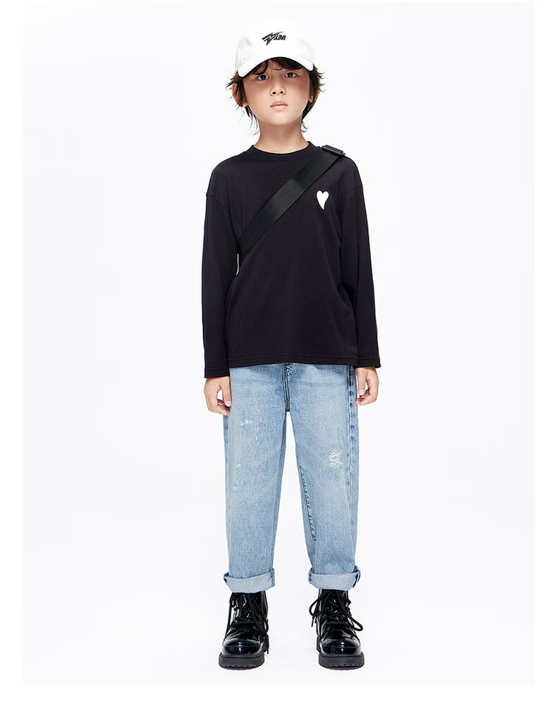 Little MO&Co. Pure cotton children's clothing spring and autumn clothing boys and girls long-sleeved T-shirts children's tops medium and large children's bottoming shirt black 100 110/52