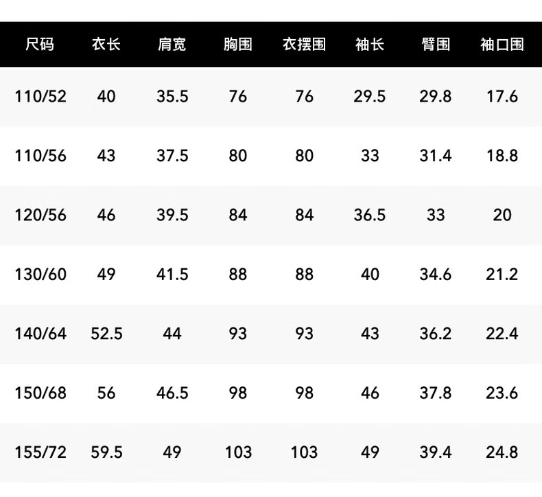 China(cm) 72-76 76-81 81-87 87-93 93-98