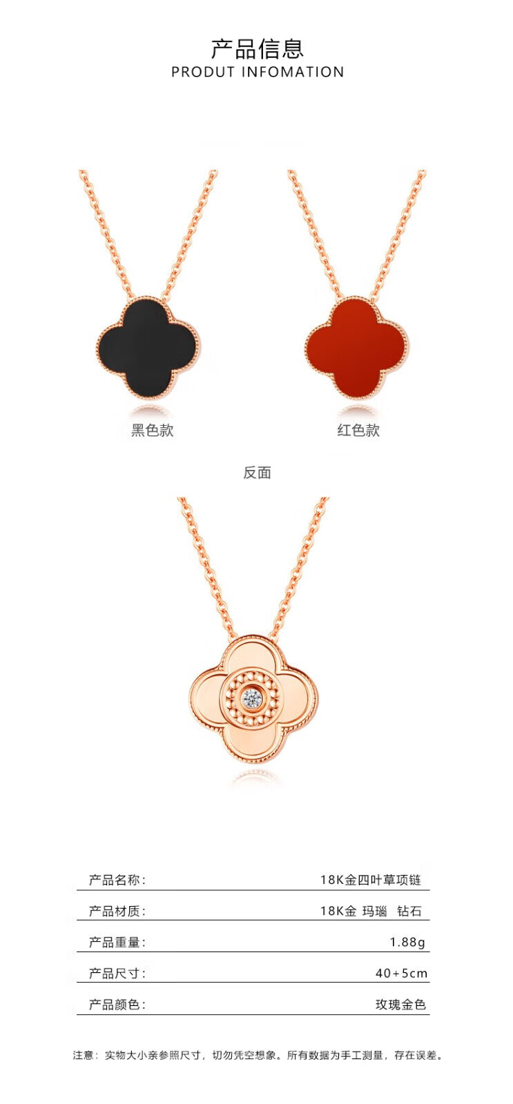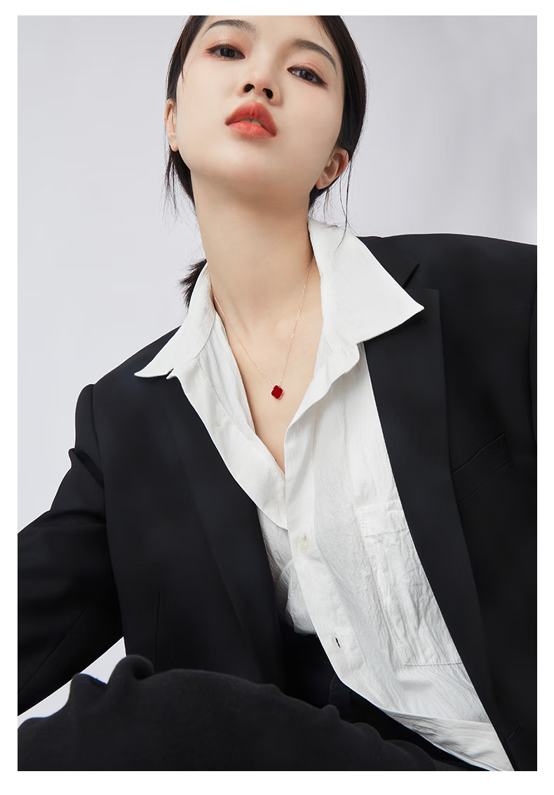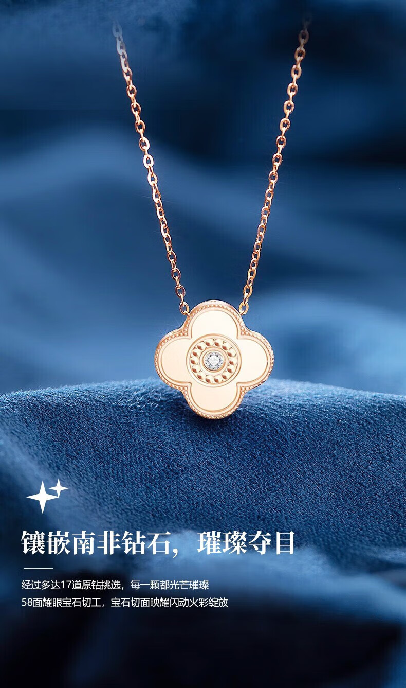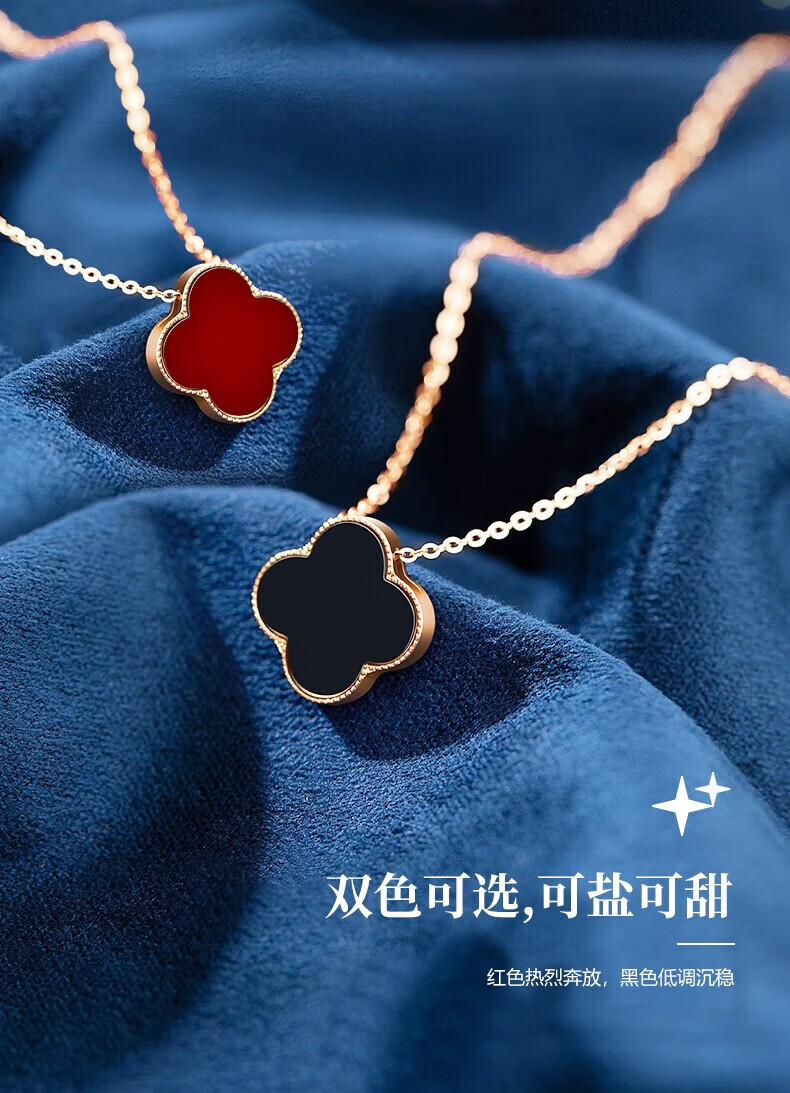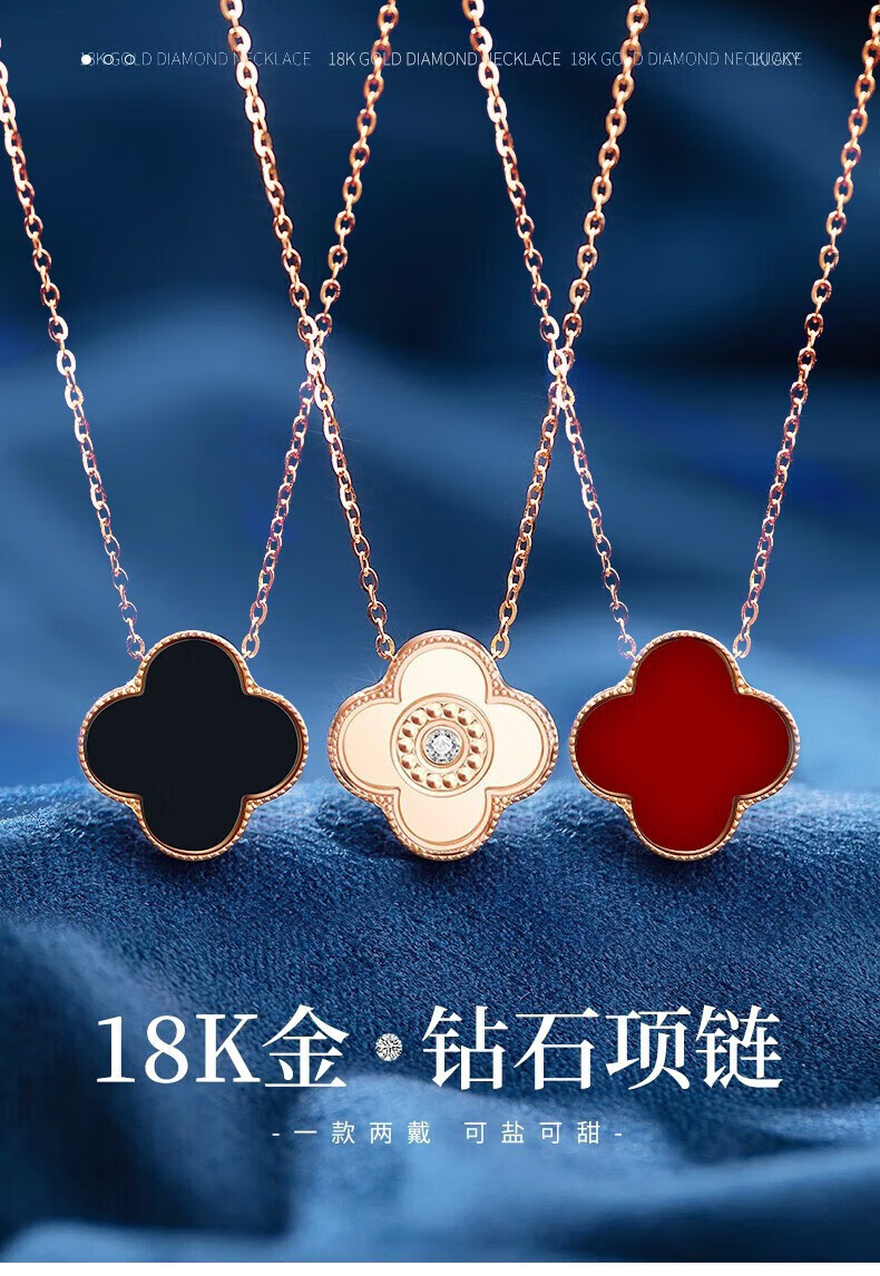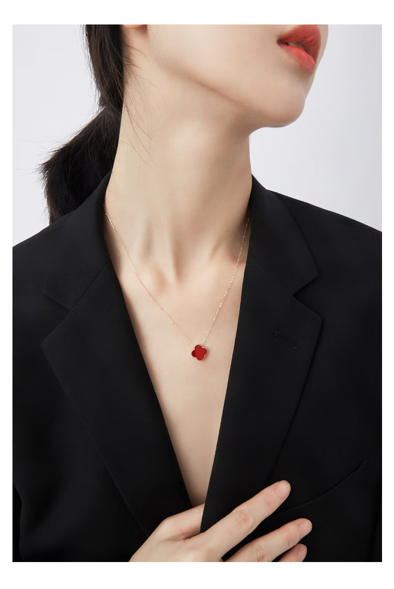 Givenchy light luxury 18K color gold diamond four-leaf clover necklace women's rose gold jewelry birthday gift for girlfriend 18K gold red agate diamond four-leaf clover