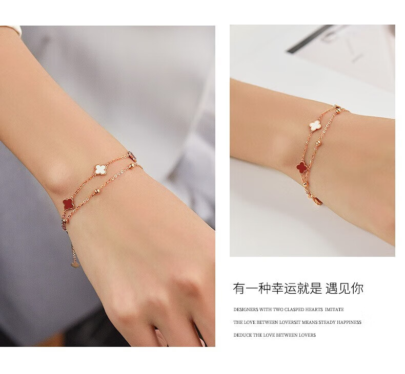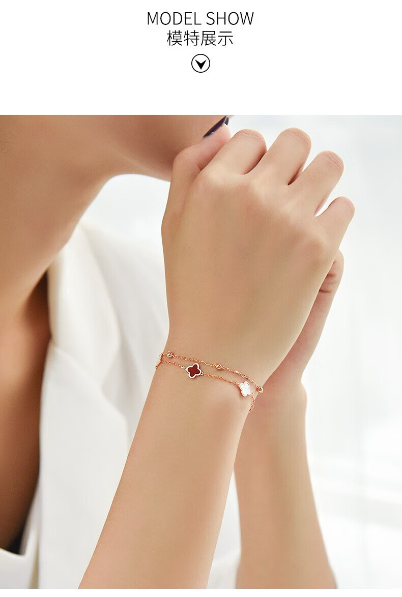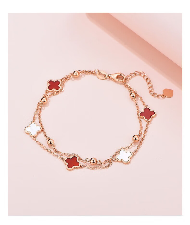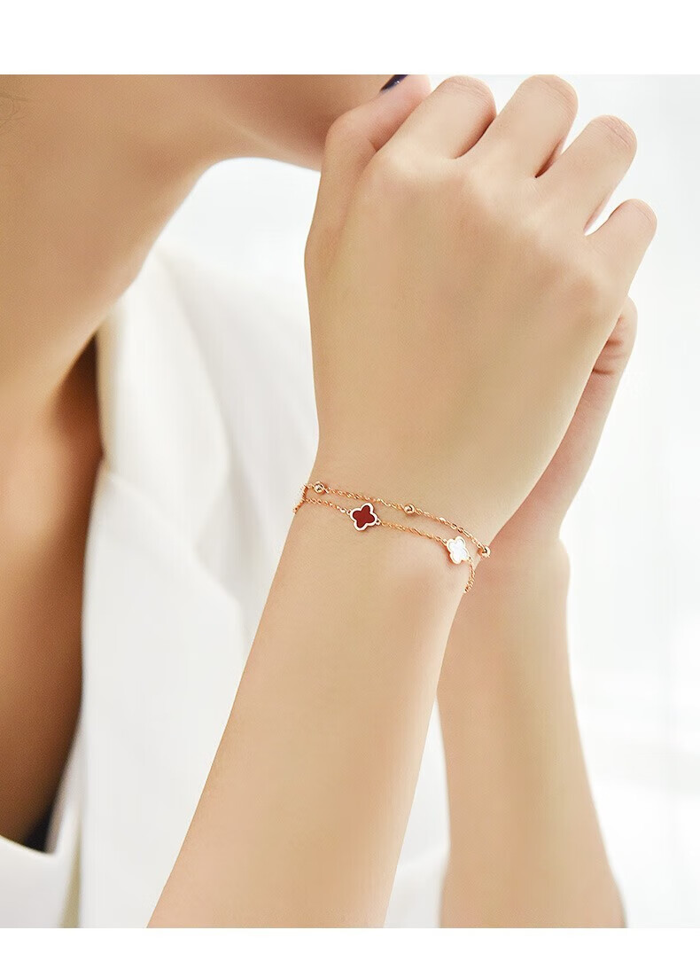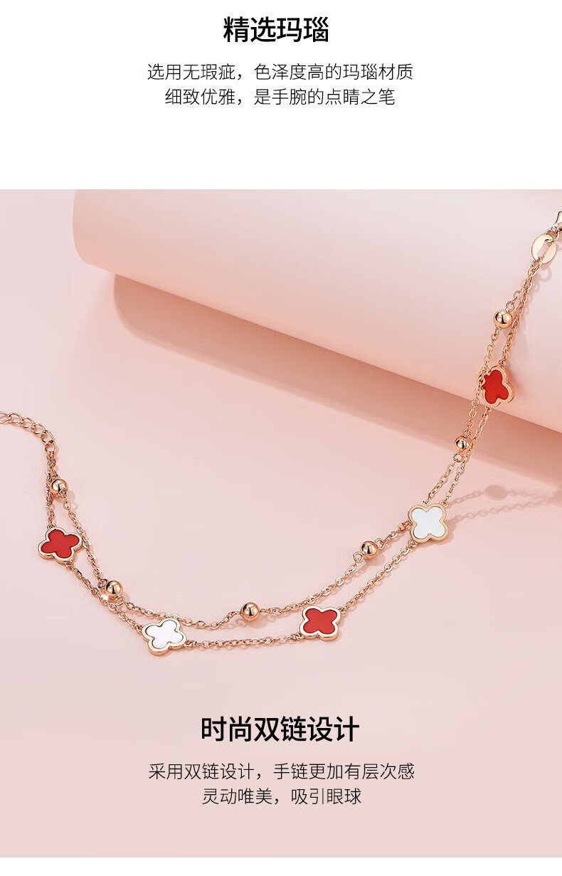 Givenchy light luxury 18k rose gold four-leaf clover necklace women's bracelet jewelry birthday gift for girlfriend and wife 18k diamond four-leaf clover necklace (red agate)