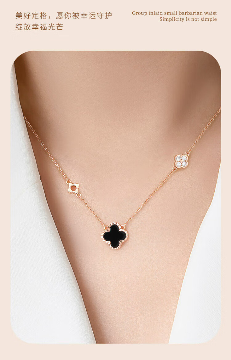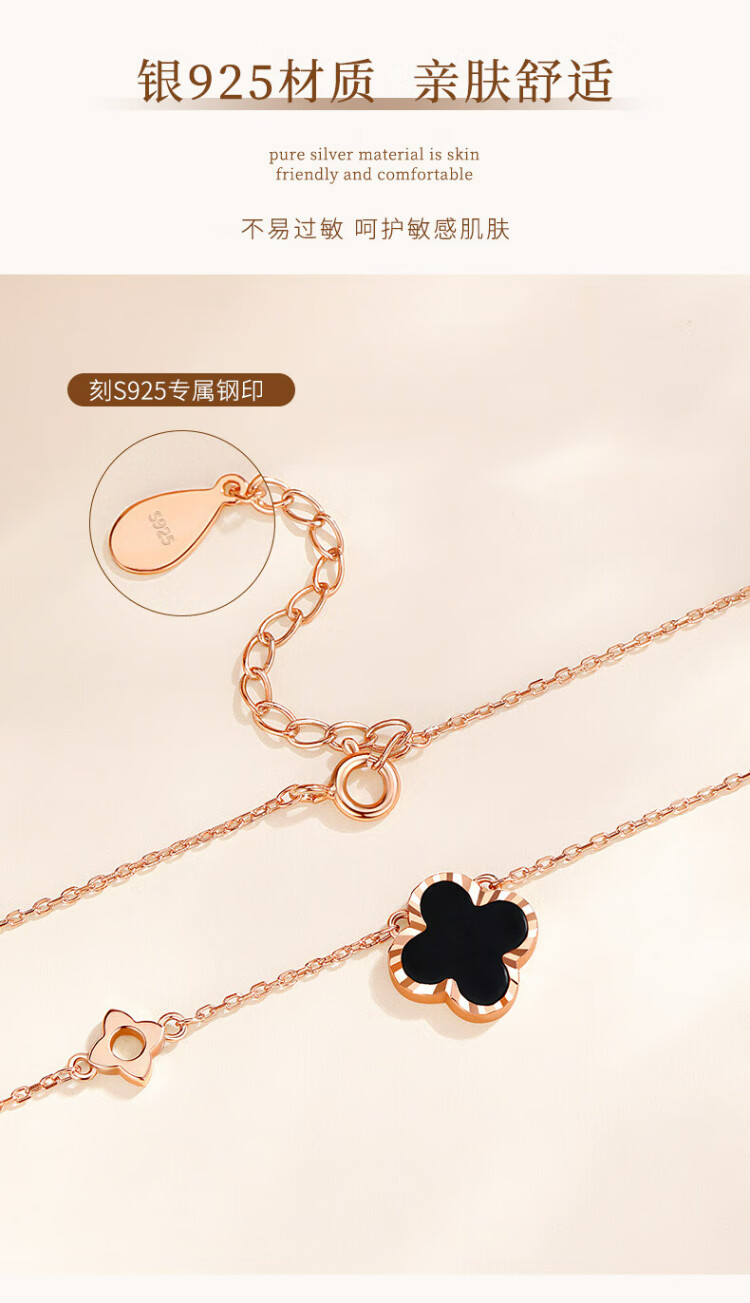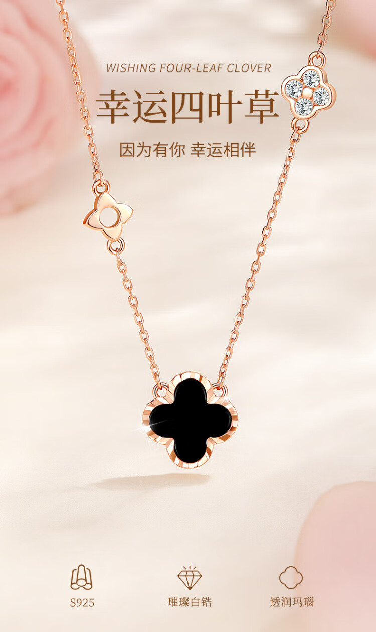 Zhen Shang Silver Four-leaf Clover Necklace for Women 2025 New Birthday Gift for Women and Girls Jewelry Light Luxury High-end Niche Girlfriend S925 Four-leaf Clover Necklace Black Onyx