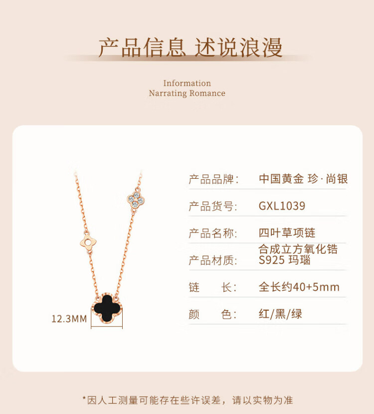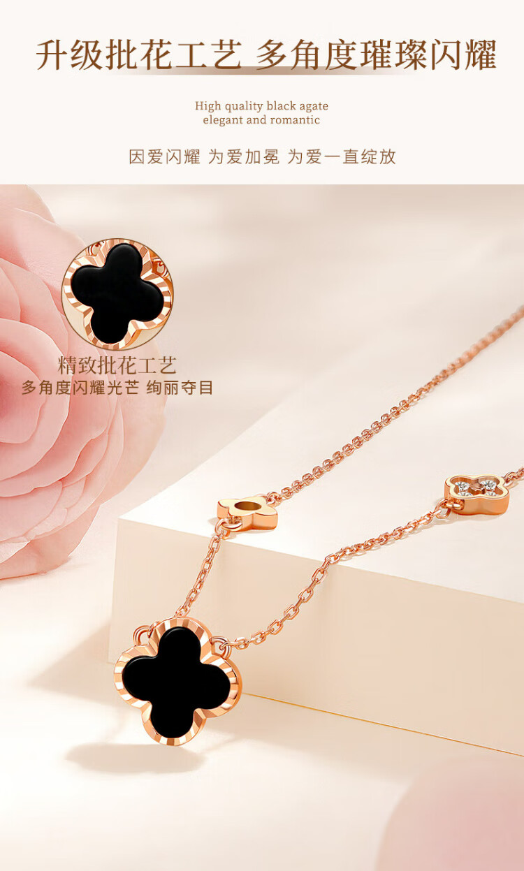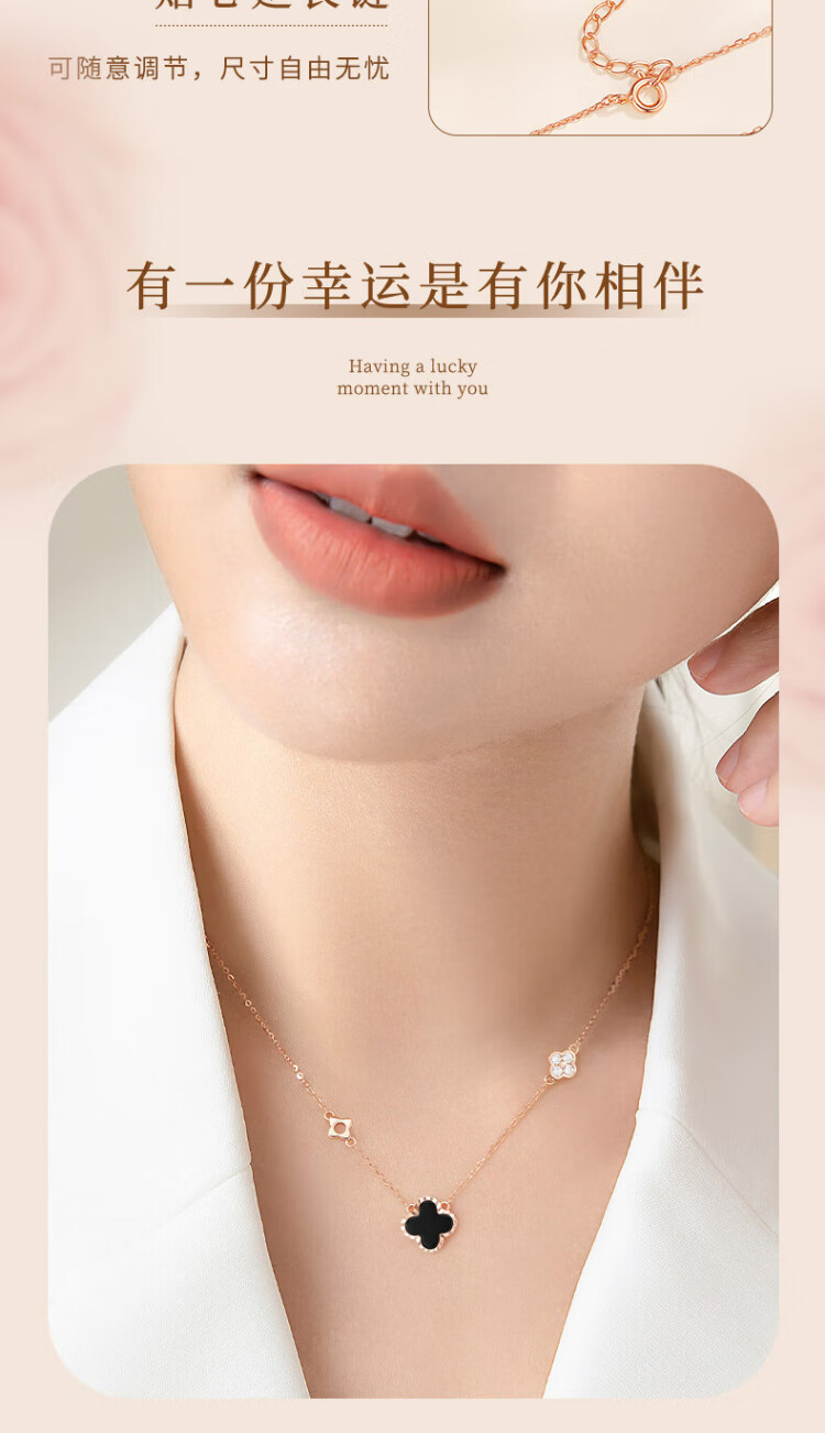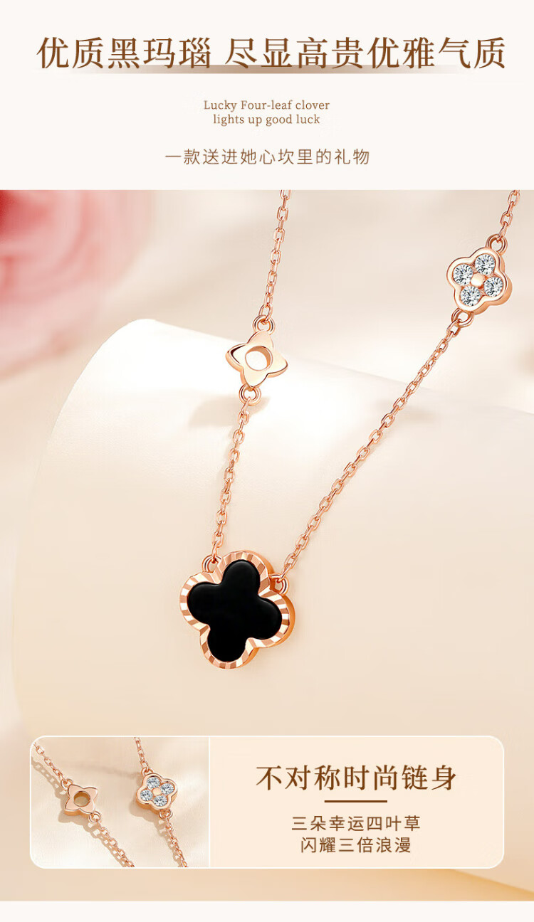 Zhen Shang Silver Four-leaf Clover Necklace for Women 2025 New Birthday Gift for Women and Girls Jewelry Light Luxury High-end Niche Girlfriend S925 Four-leaf Clover Necklace Black Onyx