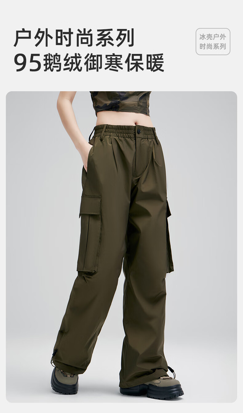 Yaya (YAYA) ice shell joint style down pants for women 2023 winter new drawstring goose down foot warm high waist pants FL navy blue M 165
