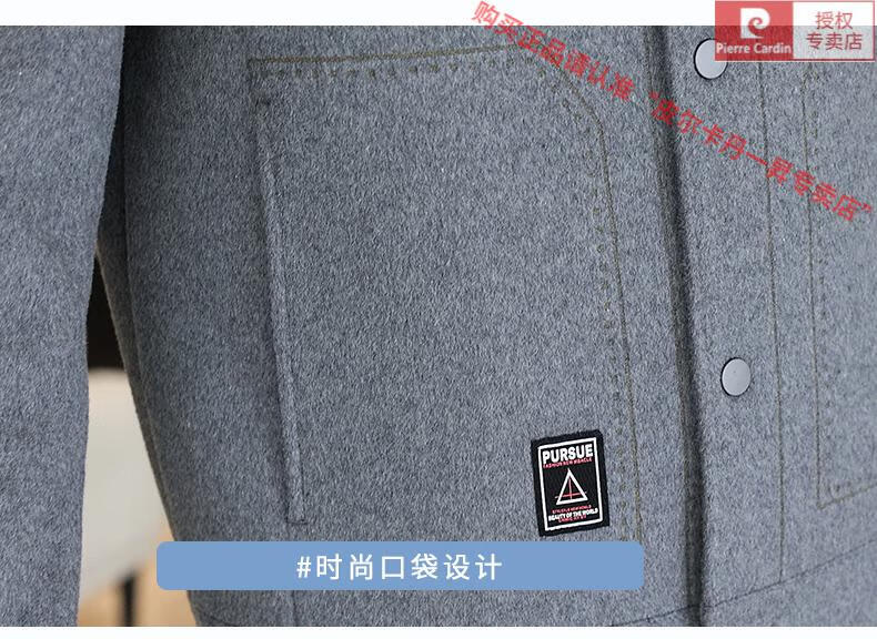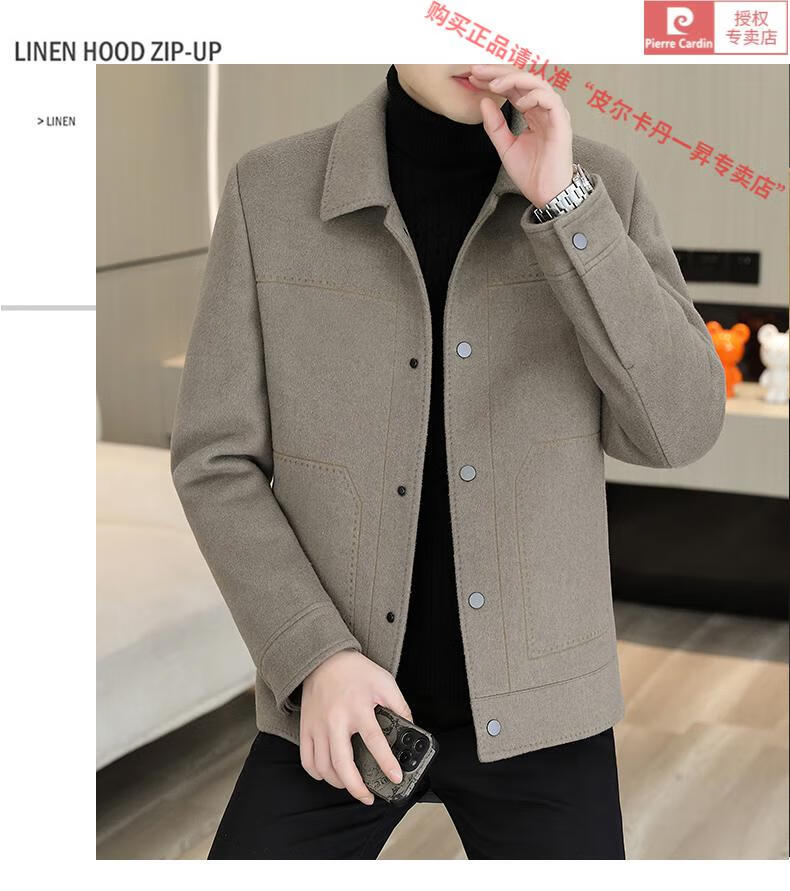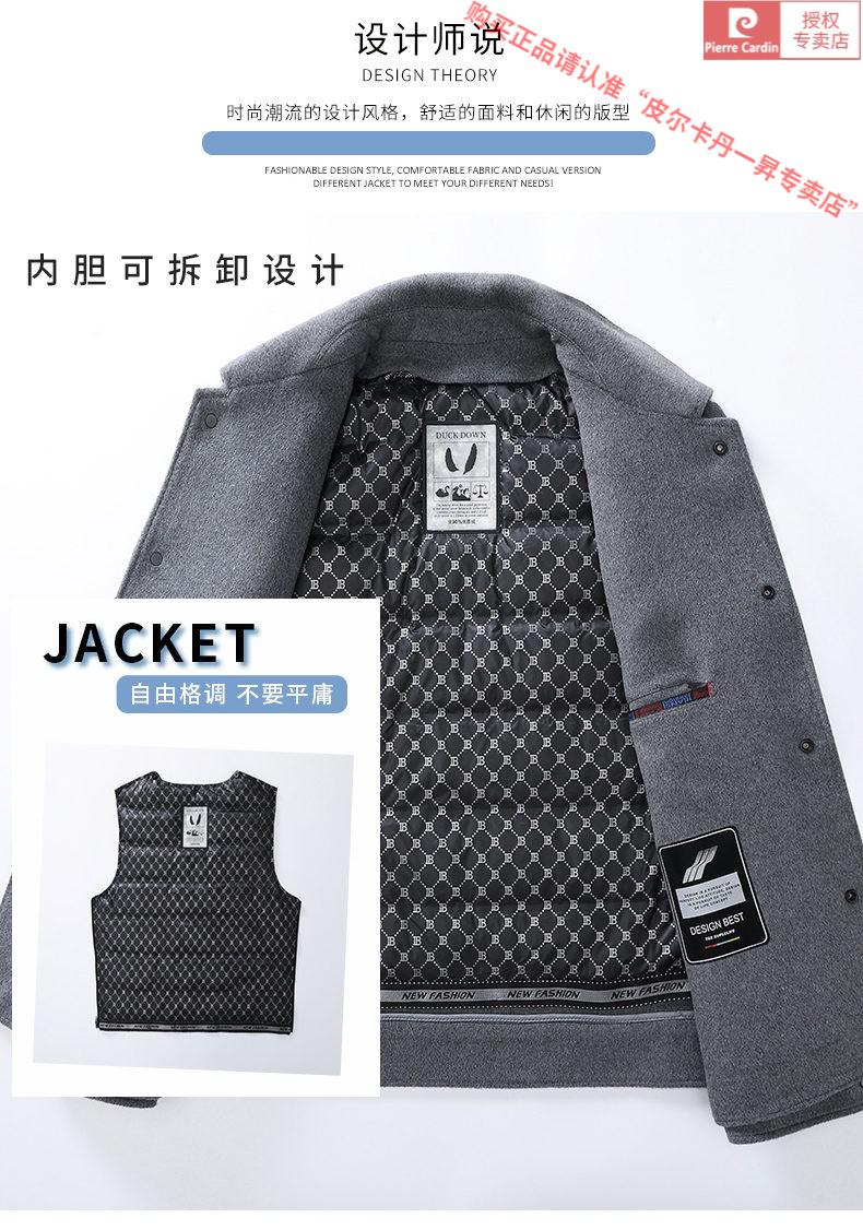 Pierre Cardin light luxury high-end spring and autumn double-sided woolen coat woolen coat men's short down-lined woolen woolen jacket black + down XL 180
