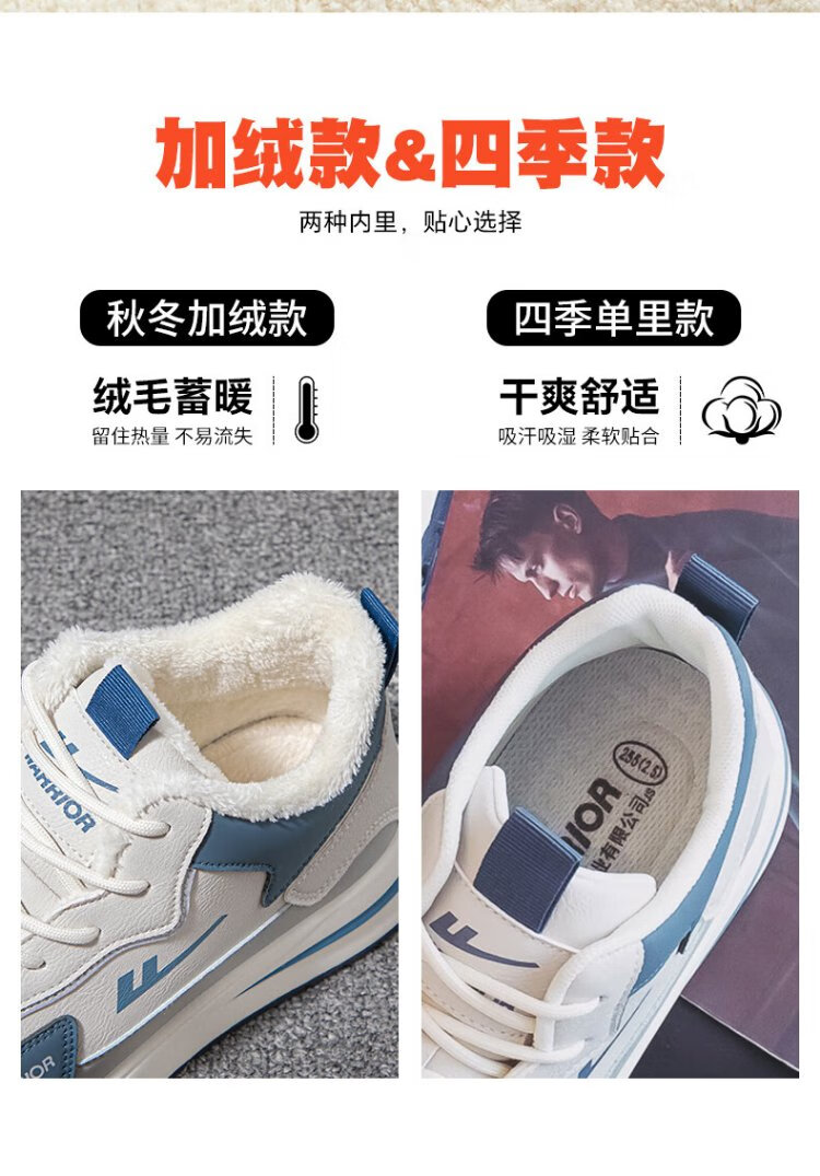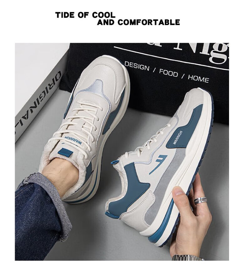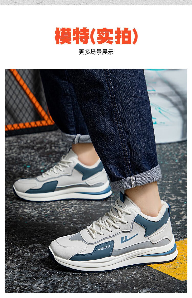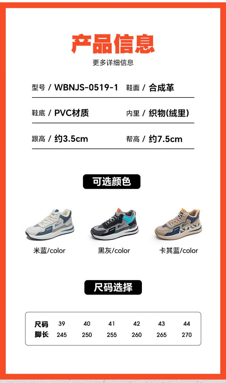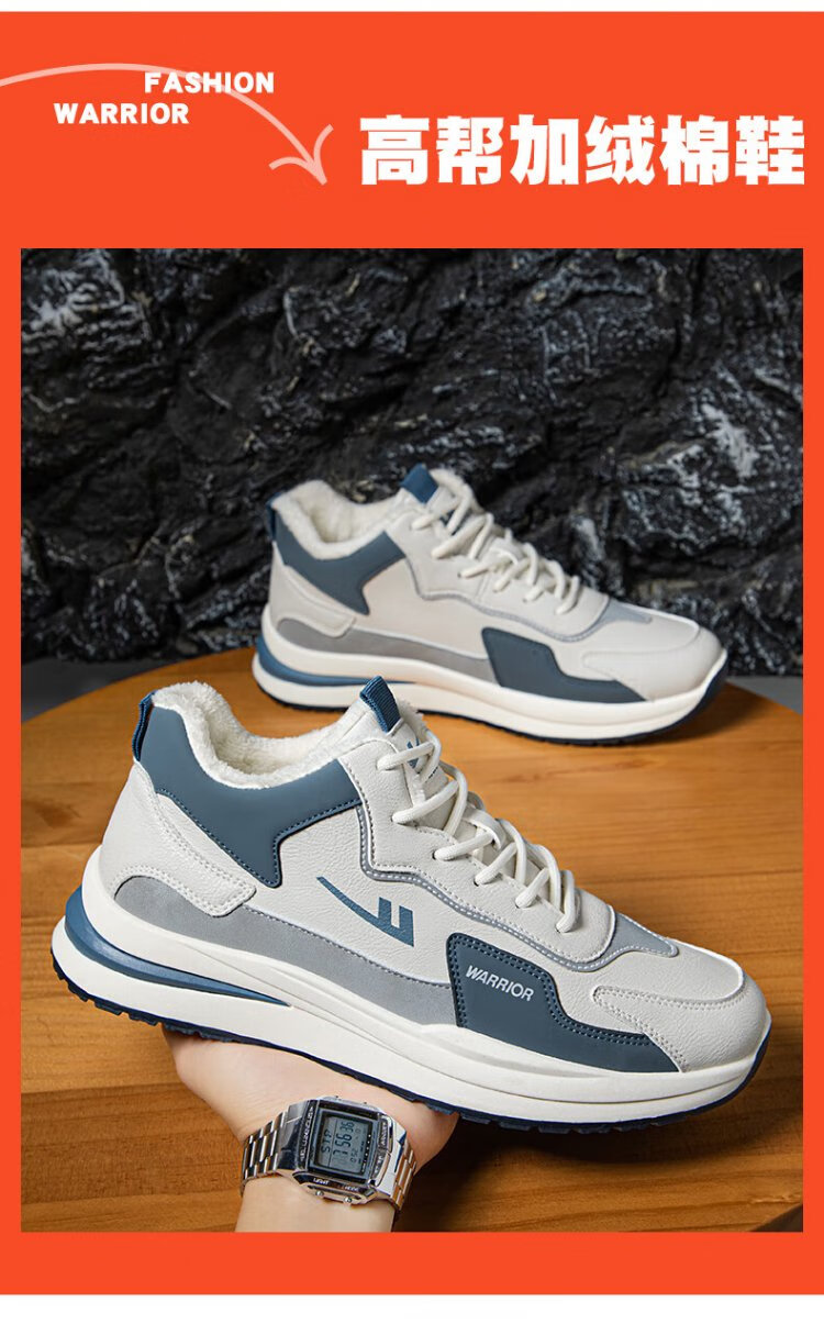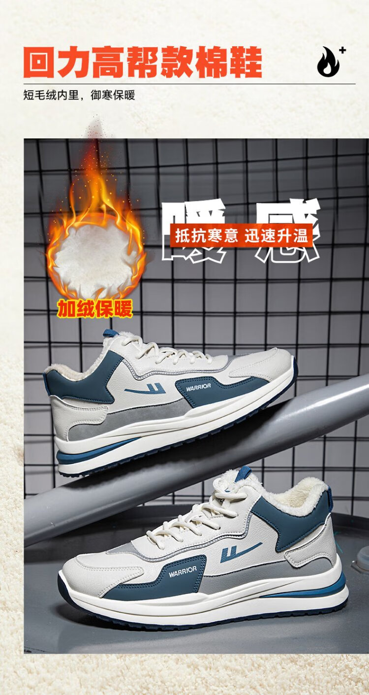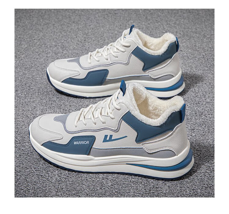 Pull back men's shoes winter cotton shoes men's velvet thickened high-top warm sports shoes 2025 new thick-soled versatile dad shoes rice blue | velvet 42 (260mm)