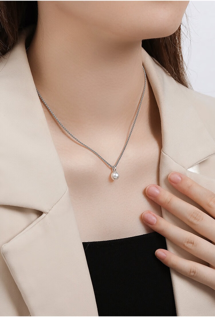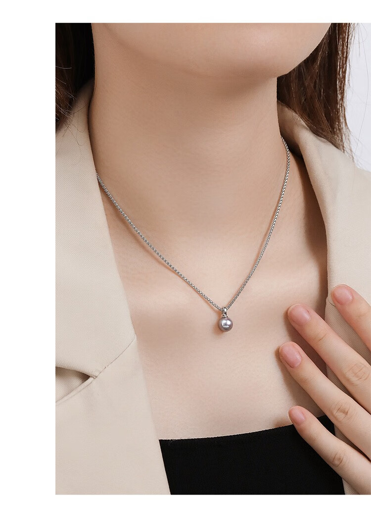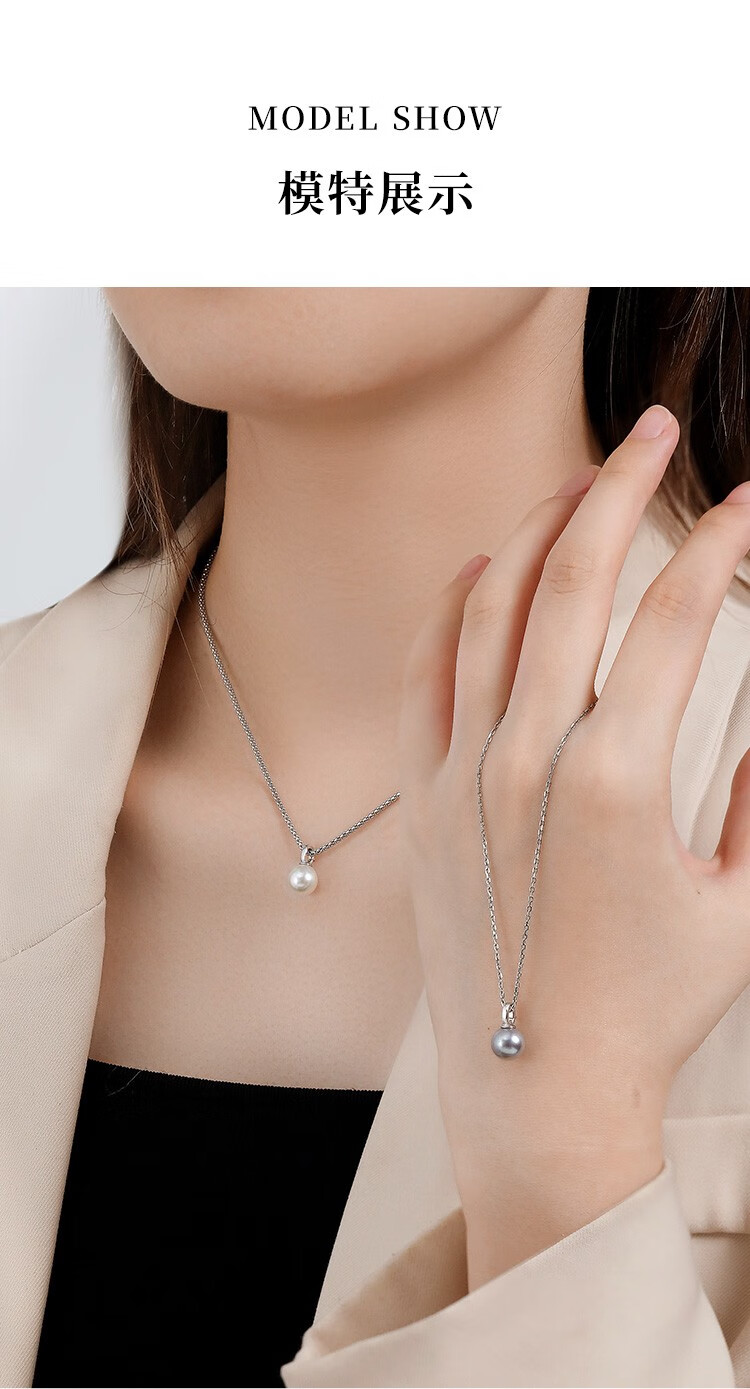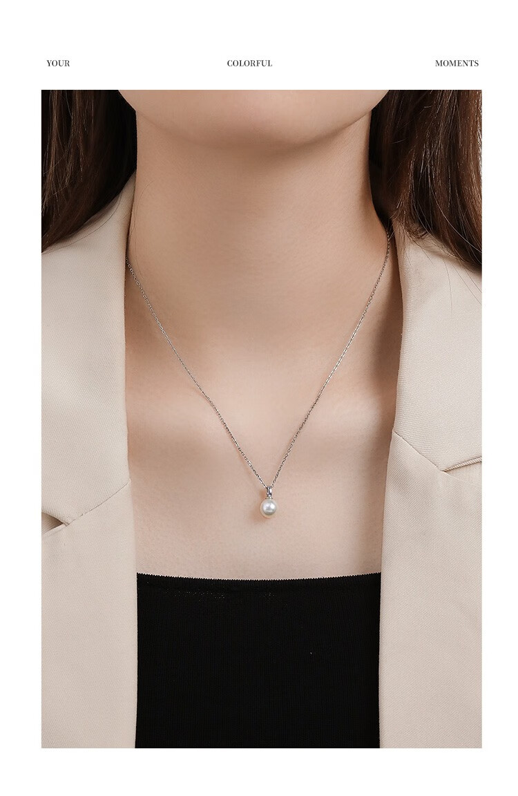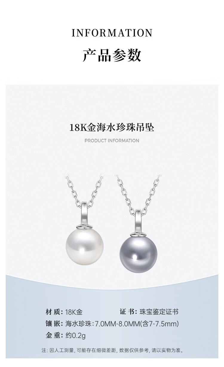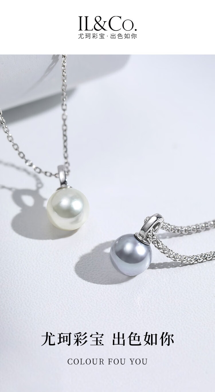 IL&CO Youke birthday gift white 18K gold seawater pearl pendant set with diamond clavicle chain female birthday gift akoya pearl pendant 7-8MM