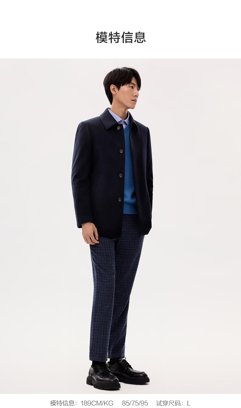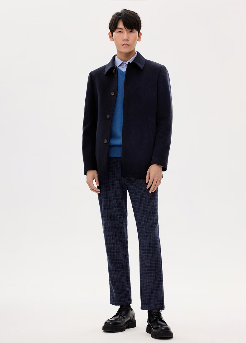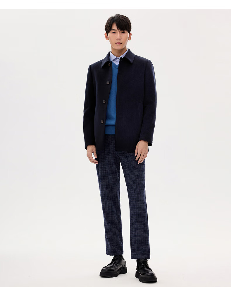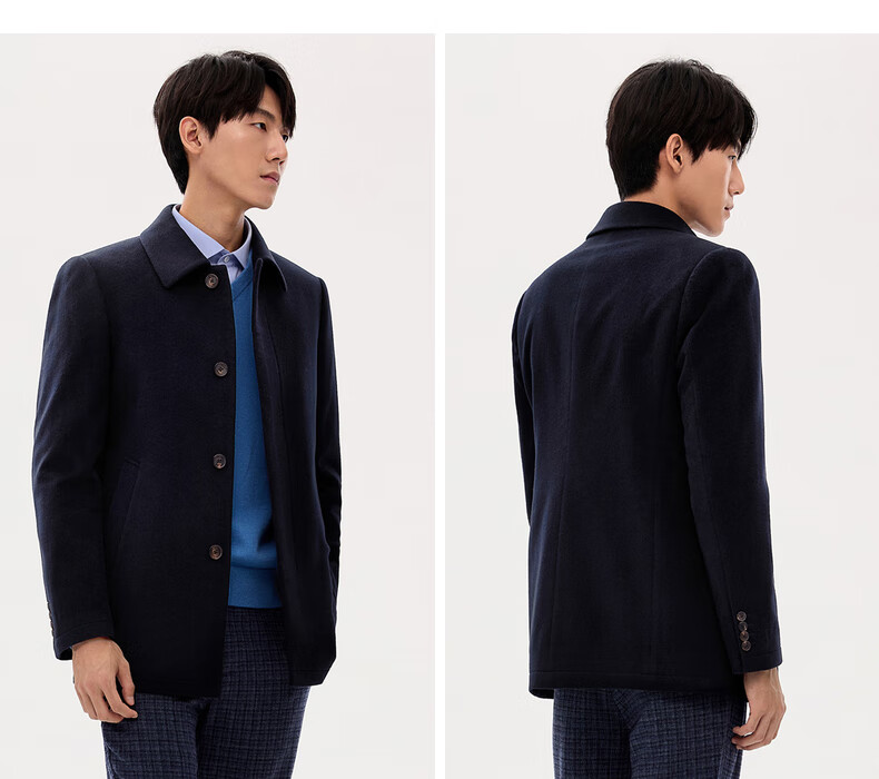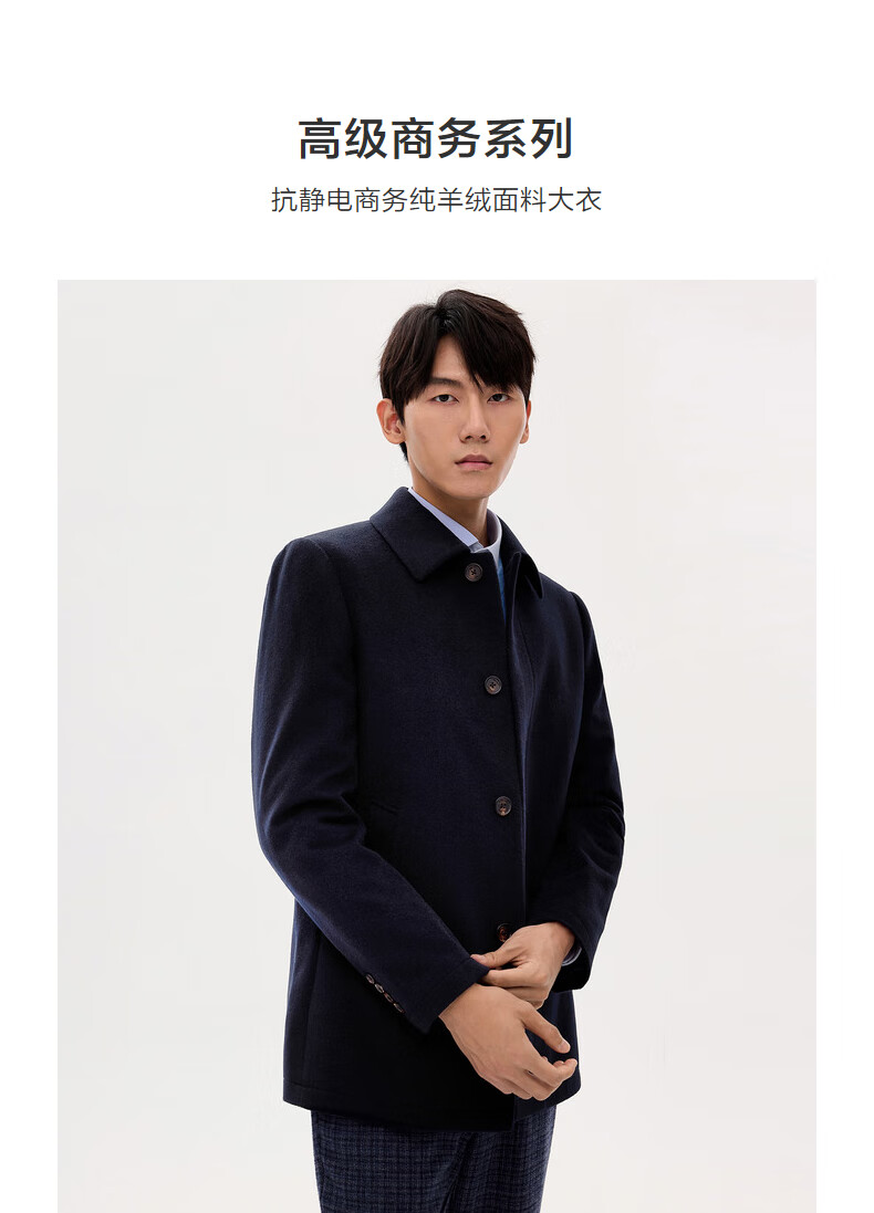 Ordos 1980 Antistatic Water Repellent Textured Business Cashmere Coat for Men Warm 35841 1980 Blue 2XL 185/104A