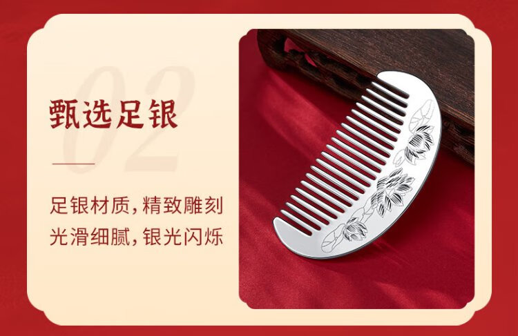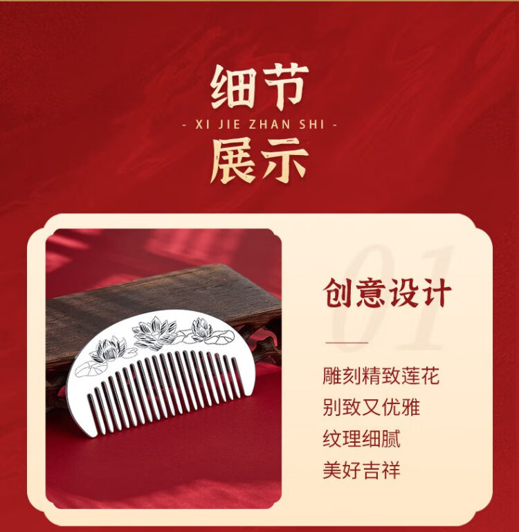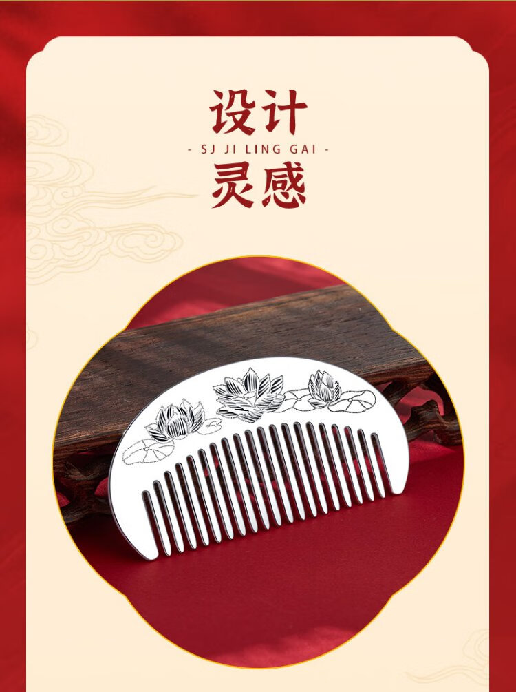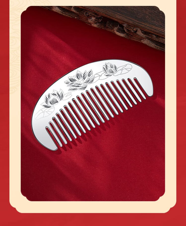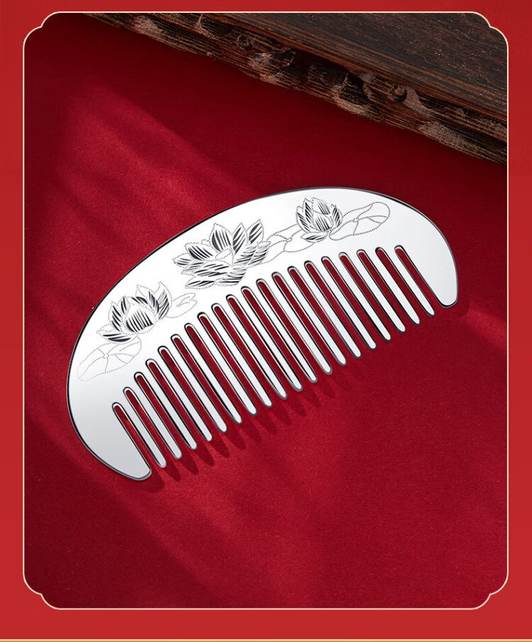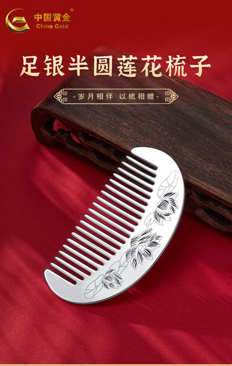CHINA GOLD silver comb female lotus silver comb supports engraving, a birthday gift for mom and wife, about 30g + brand gift box + supports engraving