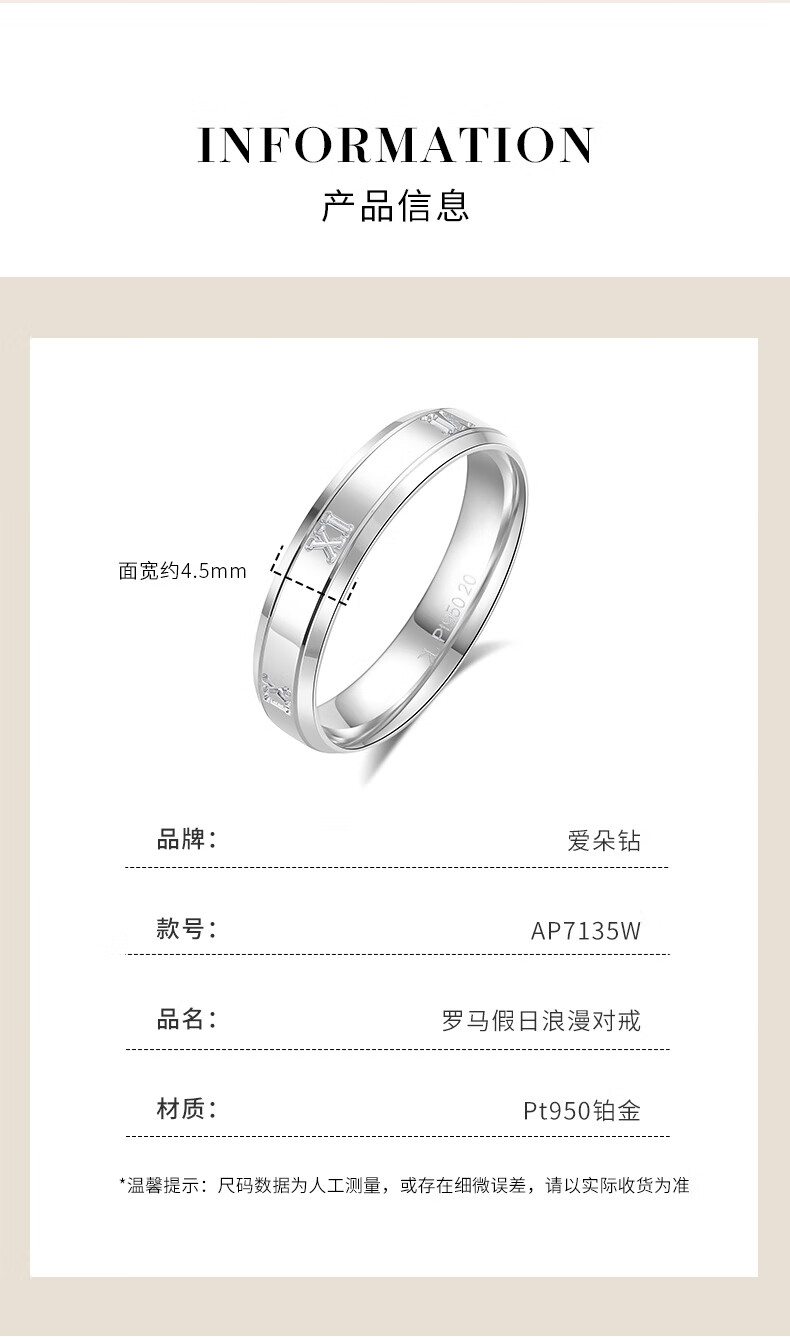 Aido diamond pt950 platinum ring for men and women, romantic Roman numeral platinum pair ring, glossy simple plain ring ring 9#, about 4.20 grams, according to the real hair, the more will be removed and the less will be replenished.