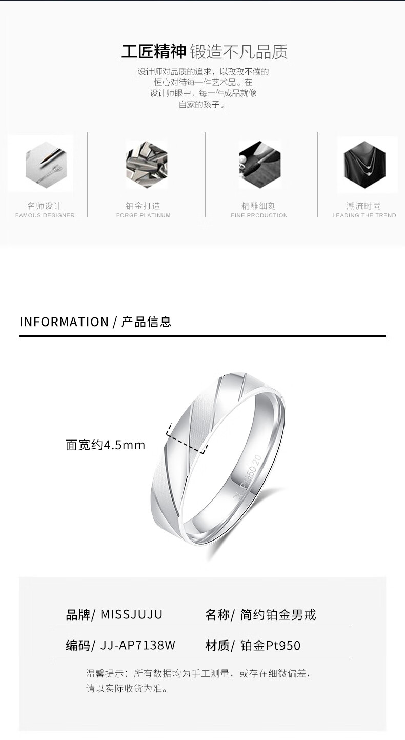 Miss JuJuPT950 platinum geometric plain ring men's fashionable platinum ring simple ring 16# about 5.2 grams, according to the real hair, please pay more or less.