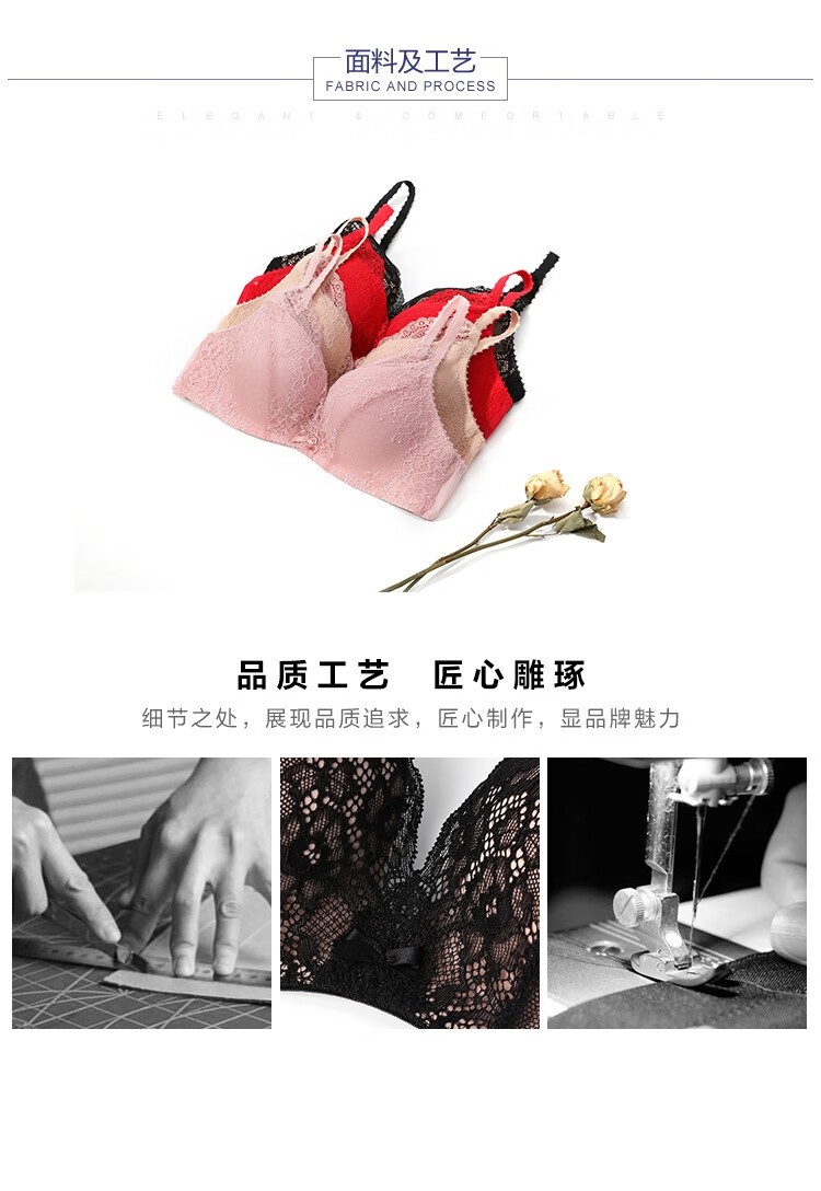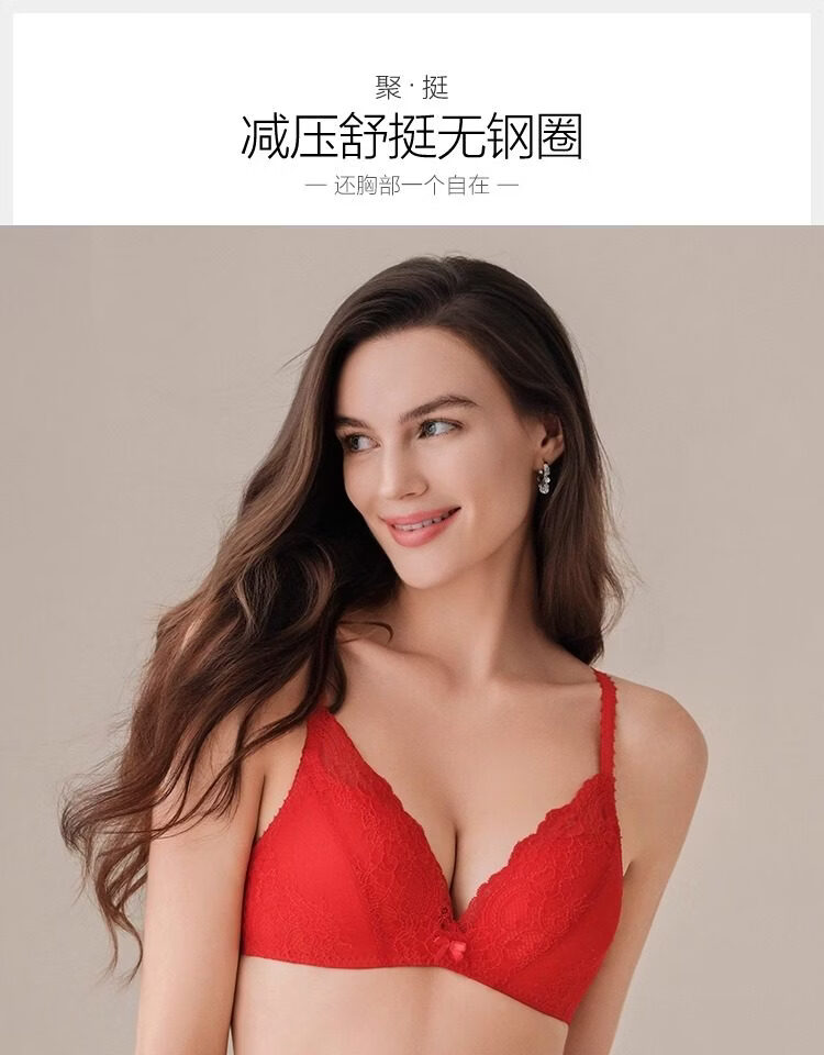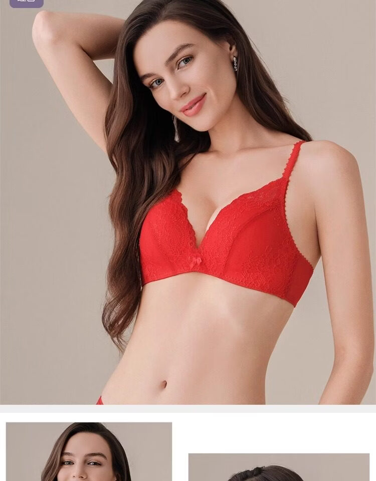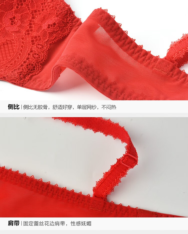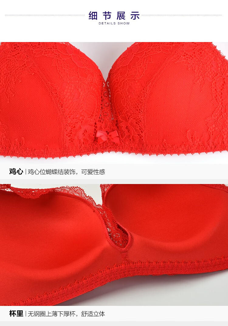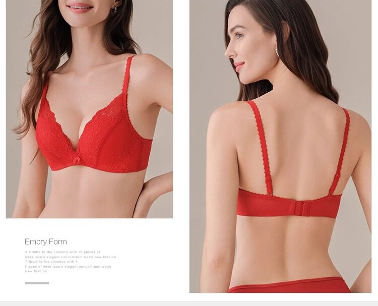 Embry Red Brand Underwear Set, Comfort Cup, Wireless Bra, Secondary Breast Reduction, Small Breast Gathering Gift Box, New Year's Gift, EBW0037 Red RED 80C-L